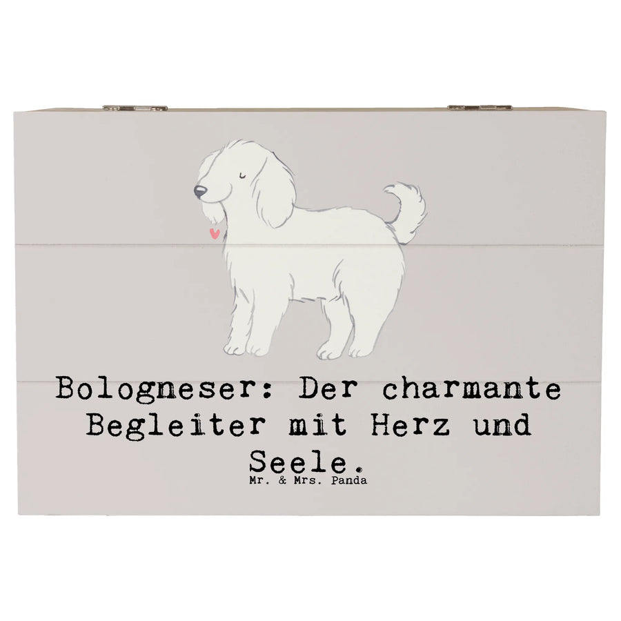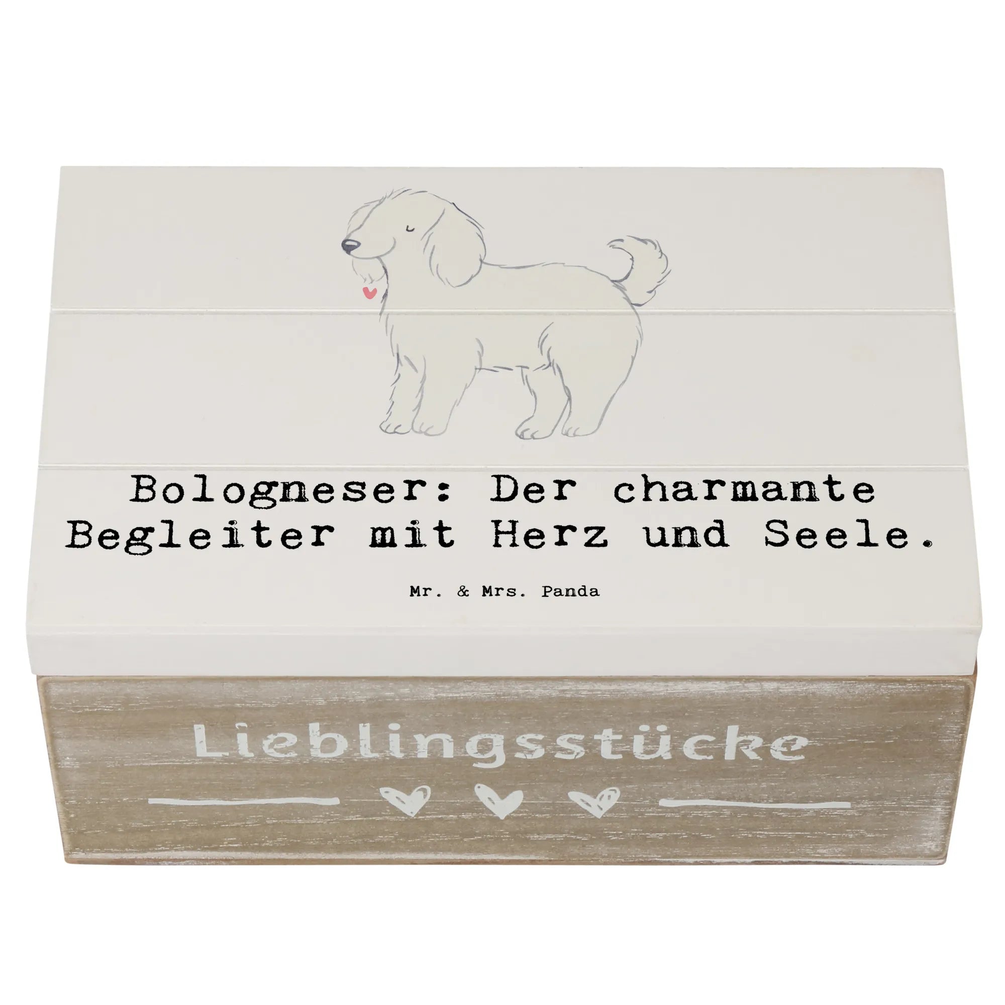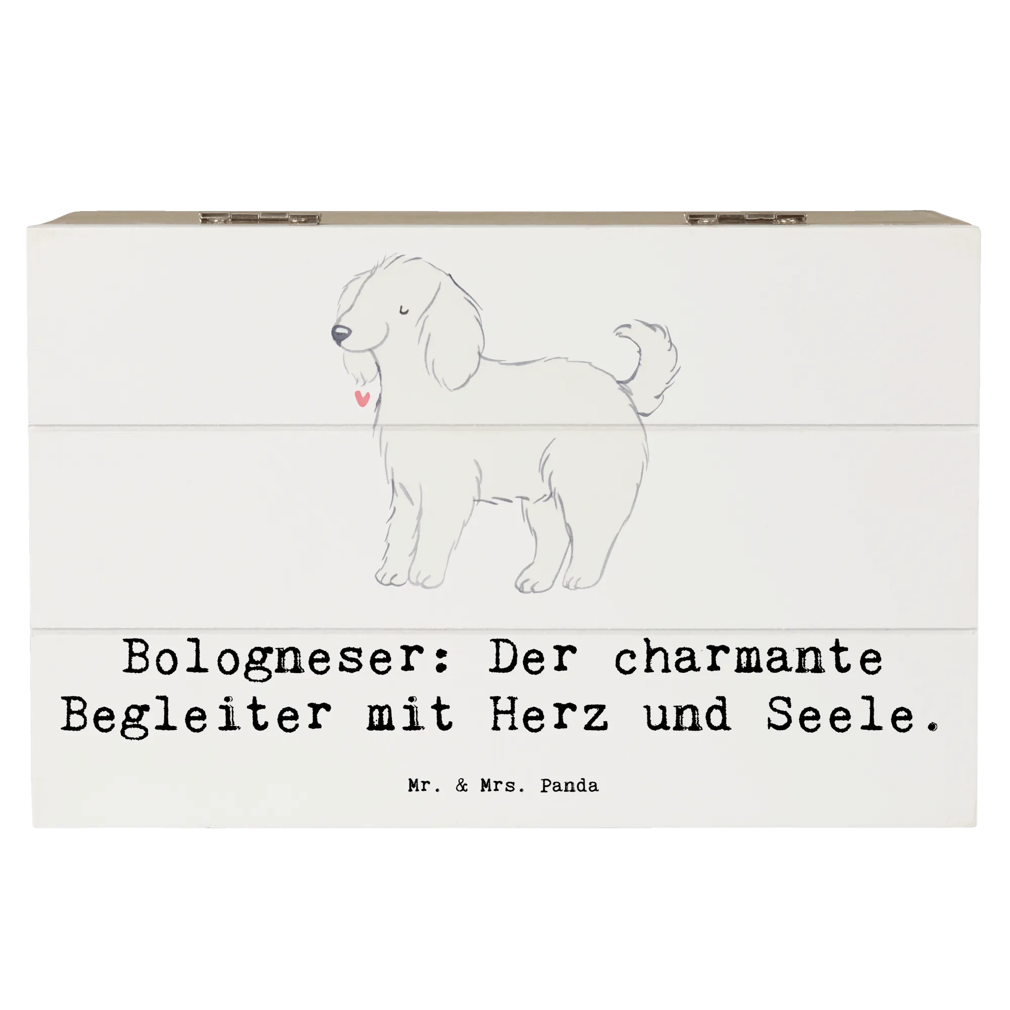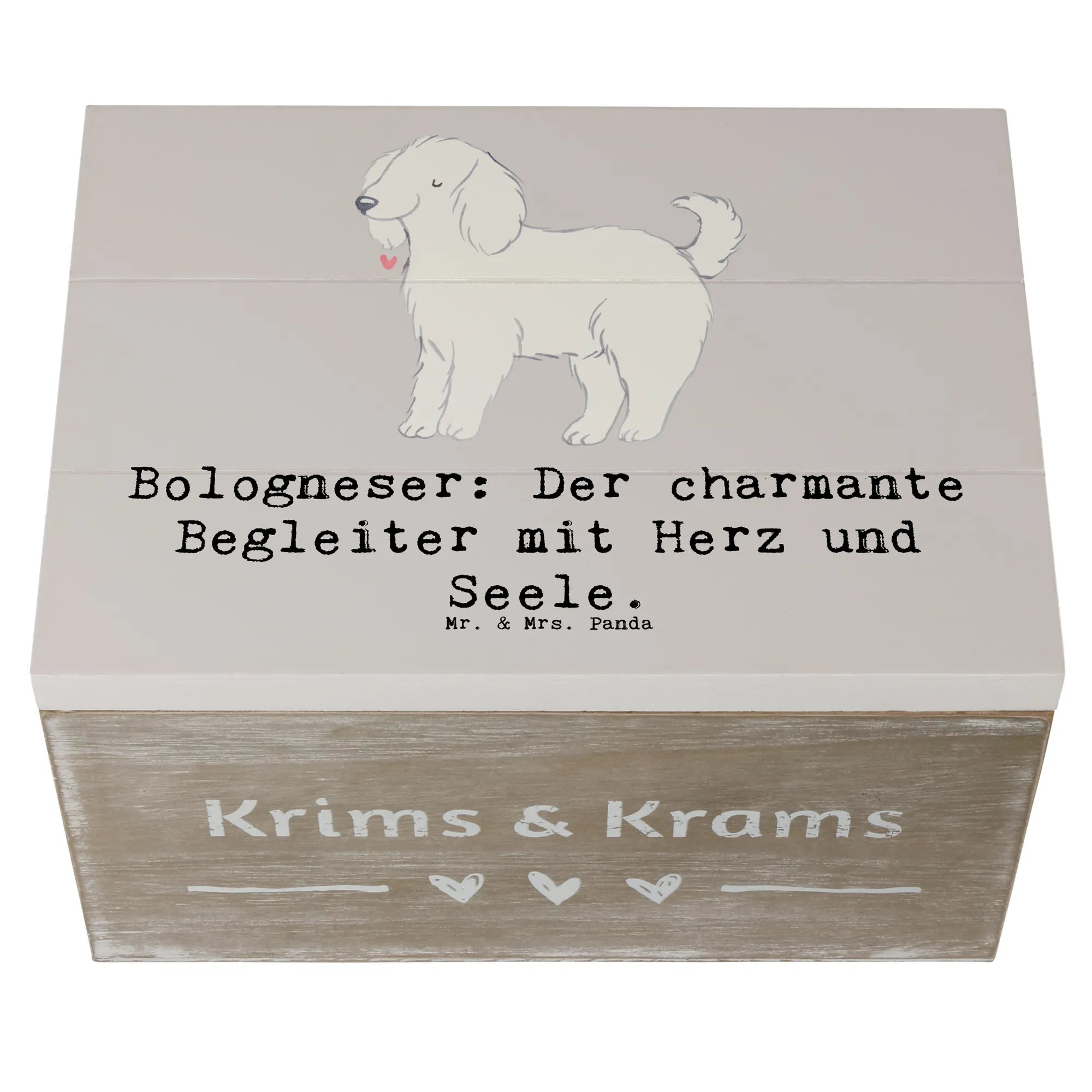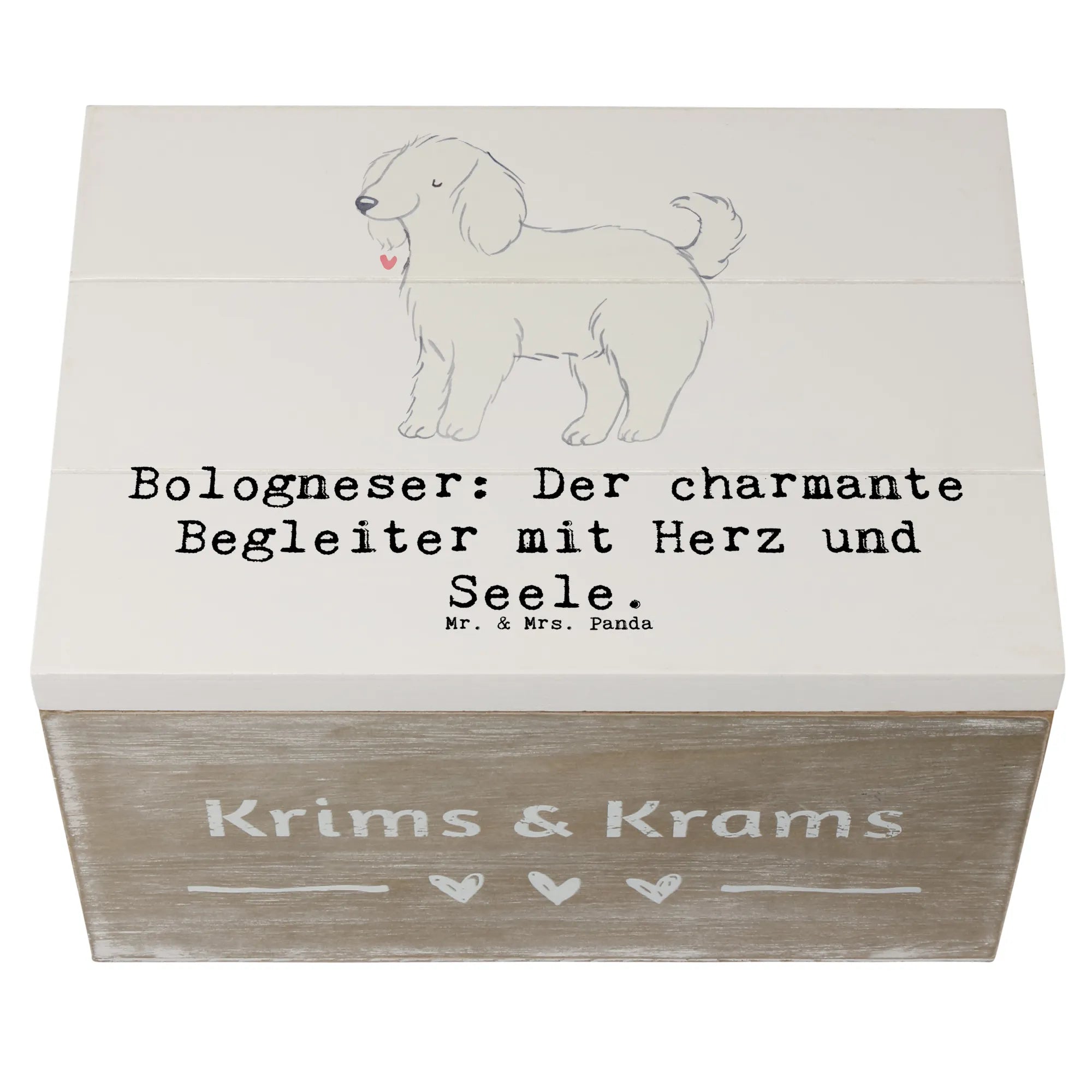 Das charmante Motiv des Bolognesers, der mit dem Slogan 'Bologneser: Der charmante Begleiter mit Herz und Seele.' verziert ist, bringt nicht nur einen Schuss Spaß und Frohsinn in dein Zuhause, sondern macht die Kiste auch zu einem perfekten Geschenk.