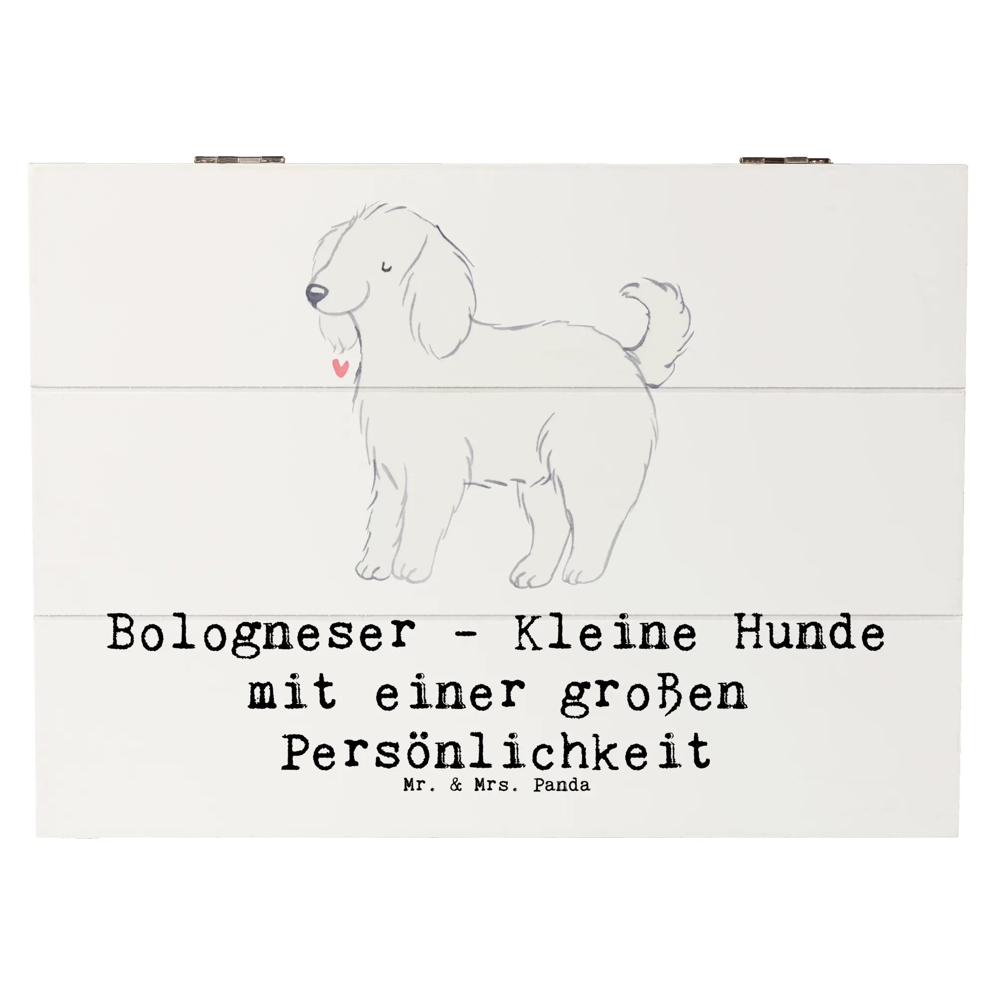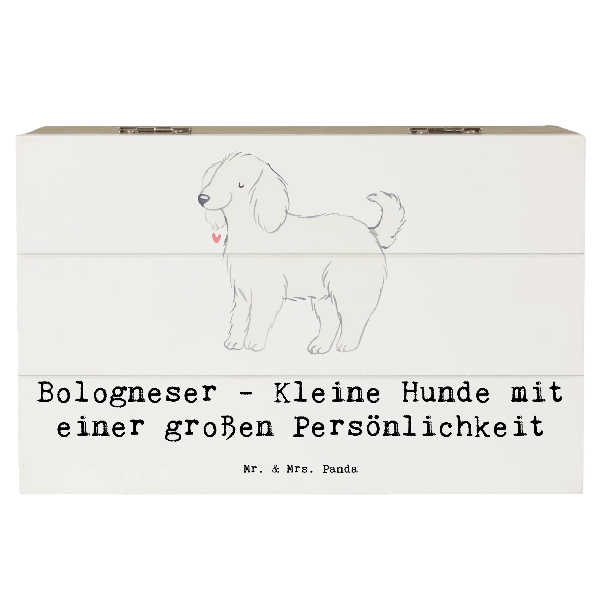 Die wunderschöne Holzkiste von Mr. & Mrs. Panda ist das perfekte Geschenk für alle Hundefans, insbesondere für die Liebhaber der Hunderasse Bologneser. Mit dem eingängigen Slogan "Bologneser - Kleine Hunde mit einer großen Persönlichkeit" bereichert diese Erinnerungsbox jeden Raum in deinem Zuhause.