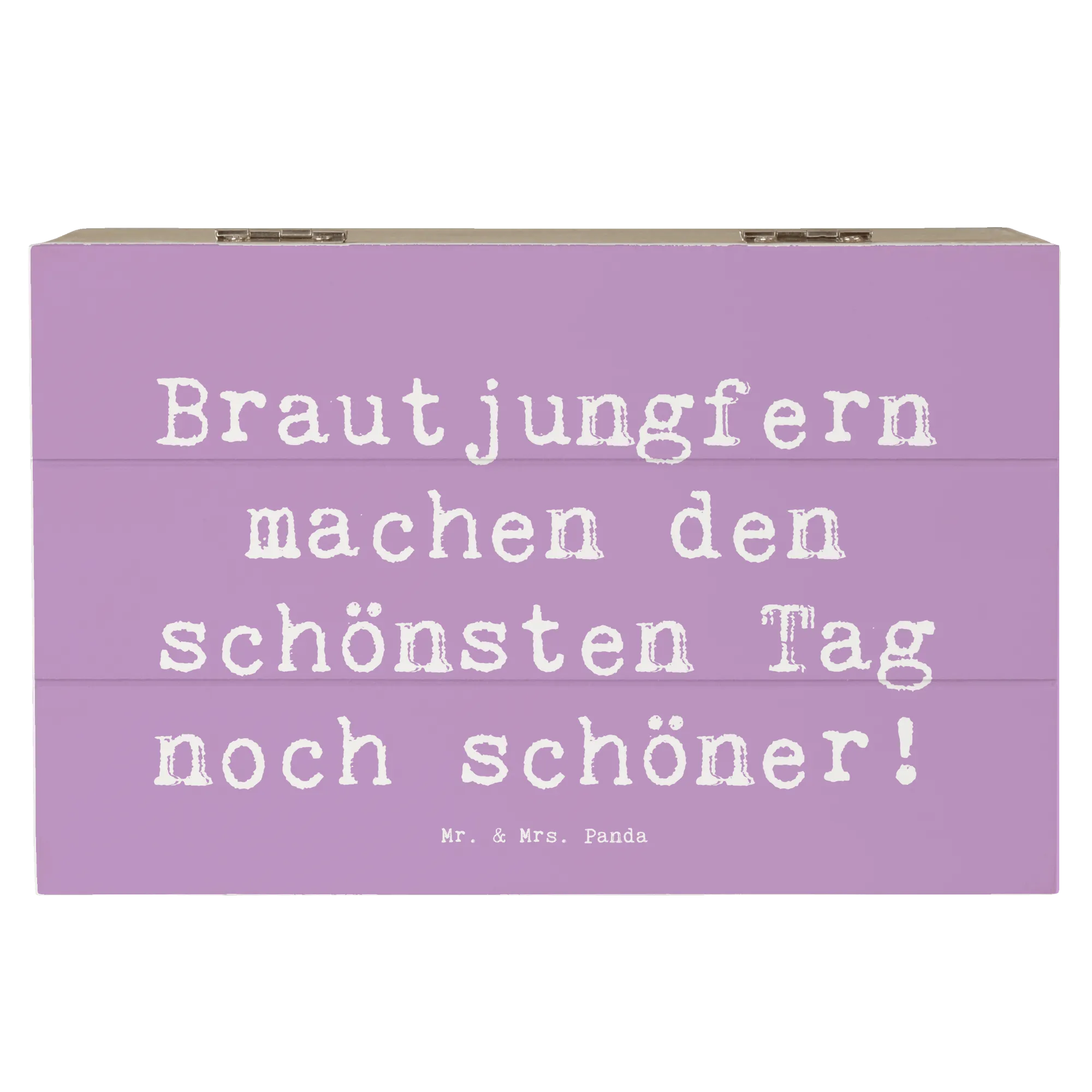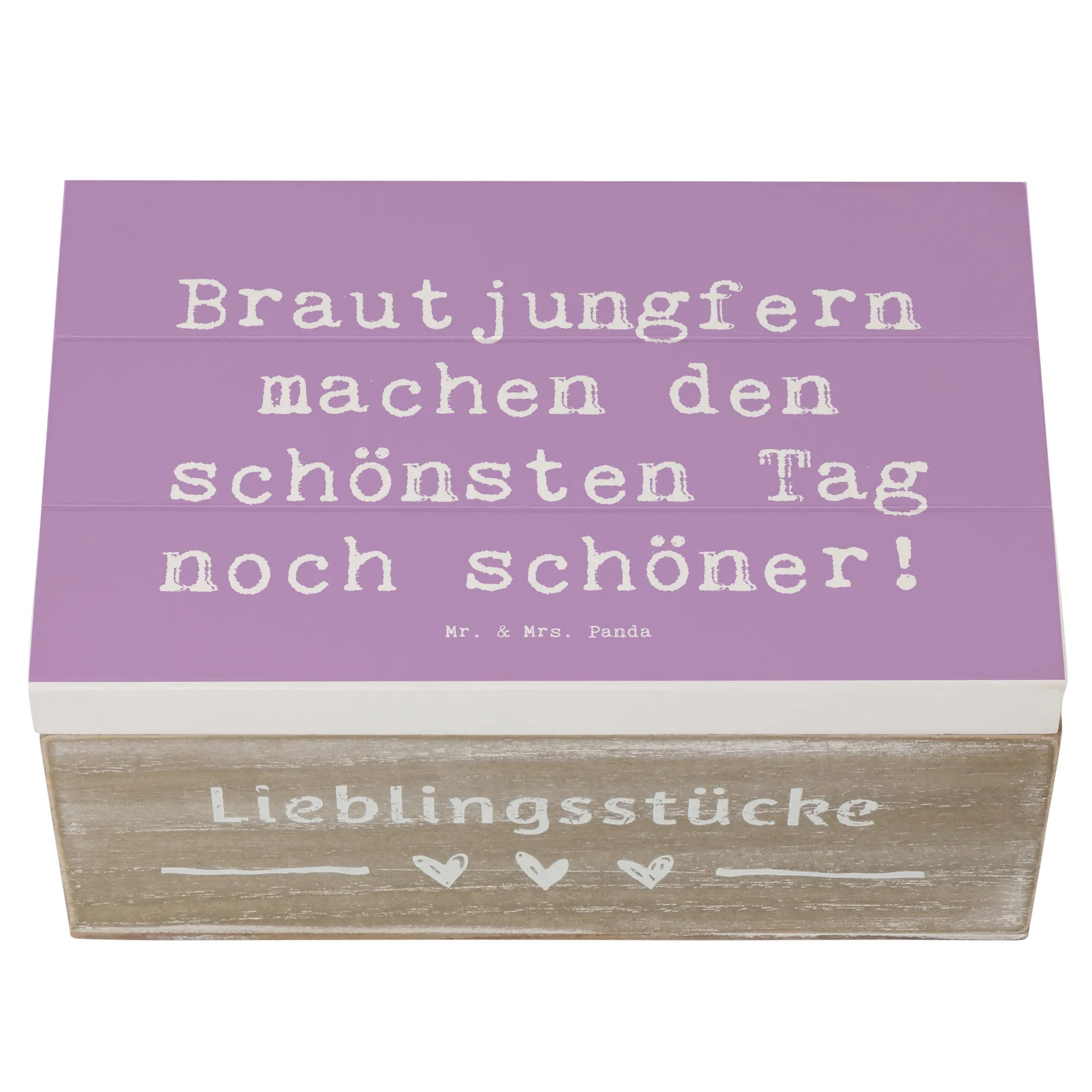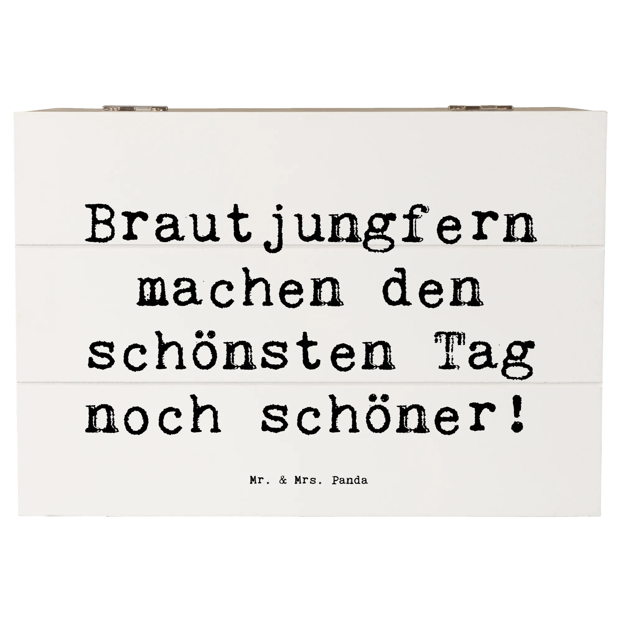 Die wunderschöne Holzkiste von Mr. & Mrs. Panda ist der perfekte Begleiter für all jene besonderen Momente im Leben. Ob als Aufbewahrungsbox für die Erinnerungen an den schönsten Tag deines Lebens oder als originelle Geschenkbox für deine Brautjungfern – diese Erinnerungskiste aus robuster Holzfaser ist nicht nur stabil, sondern auch ein echter Hingucker! Mit dem liebevollen Spruch 'Brautjungfern machen den schönsten Tag noch schöner!' wird diese Kiste zum idealen Geschenk für alle, die an Hochzeiten beteiligt sind.