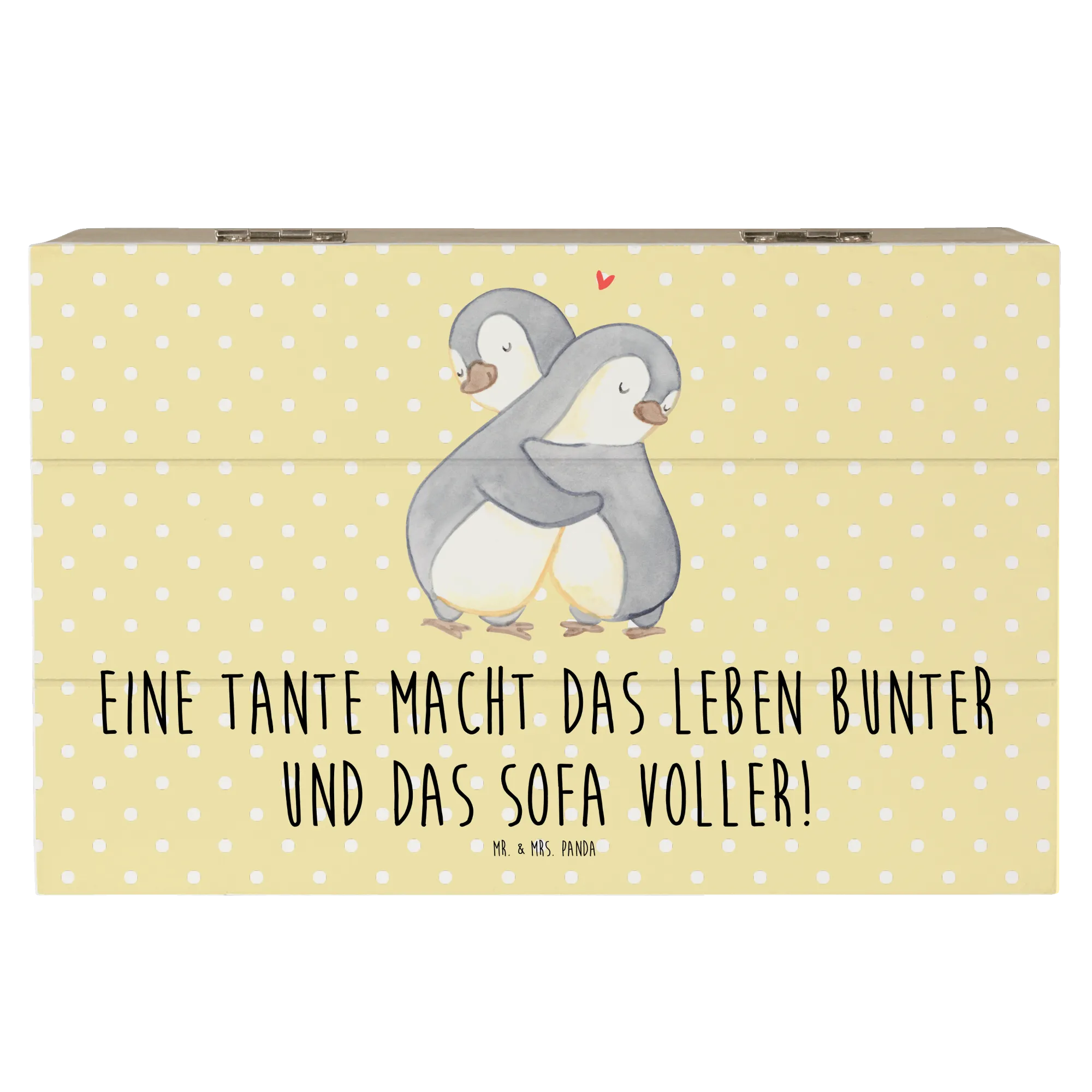 Die wunderschöne Holzkiste mit dem Motiv "Tante" von Mr. & Mrs. Panda ist das ideale Geschenk für alle, die eine besondere Beziehung zu ihrer Tante haben. Tanten sind oft die Vertrauten, die uns in Kindheitstagen begleiten, die uns Geheimnisse anvertrauen und die uns auf unserem Weg unterstützen.