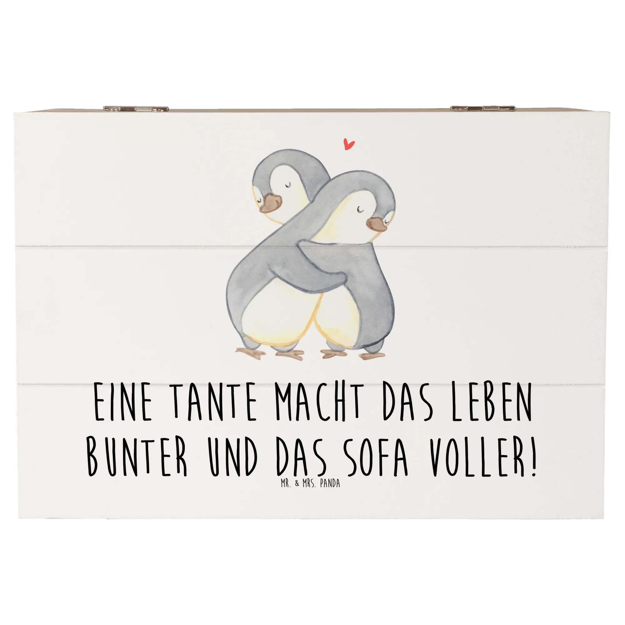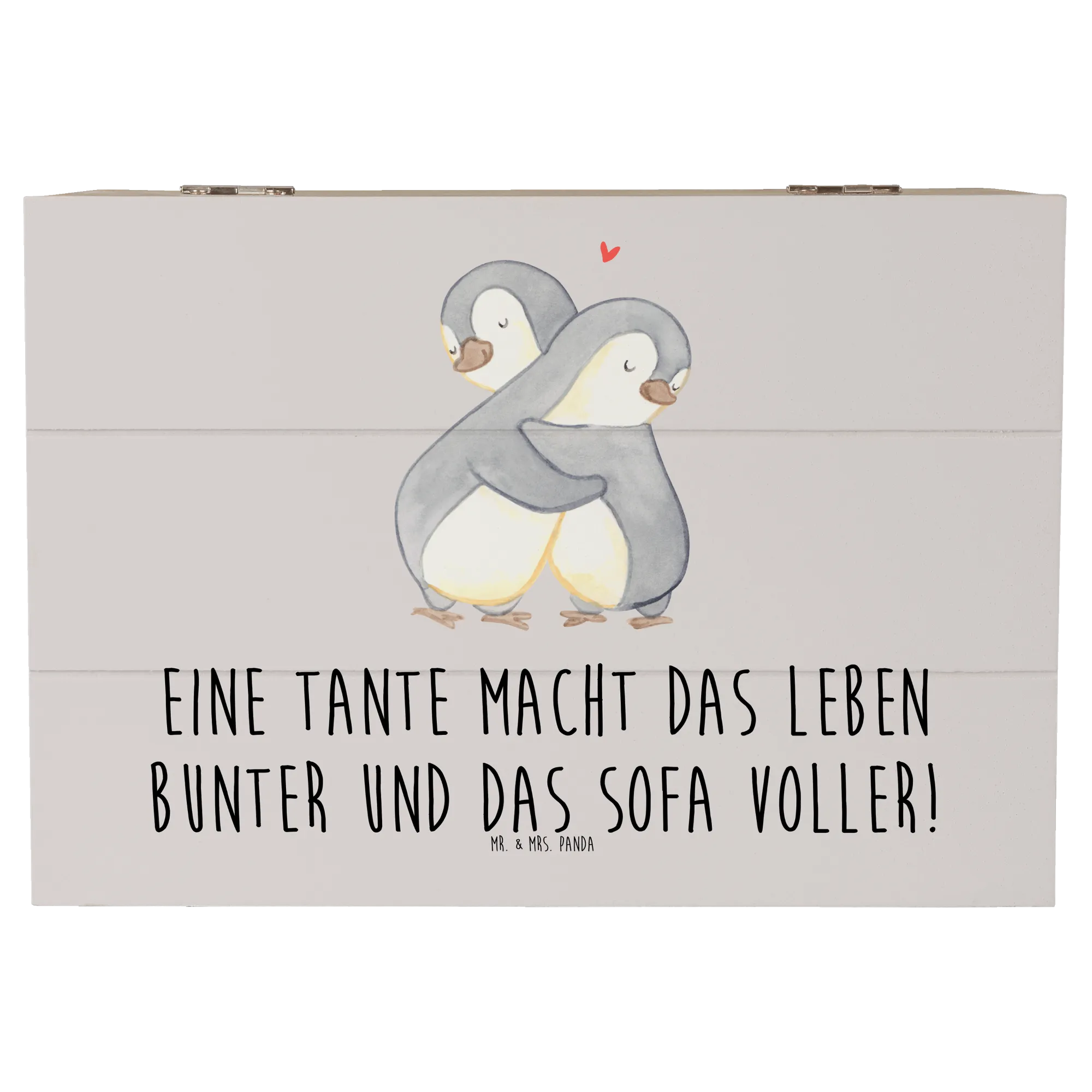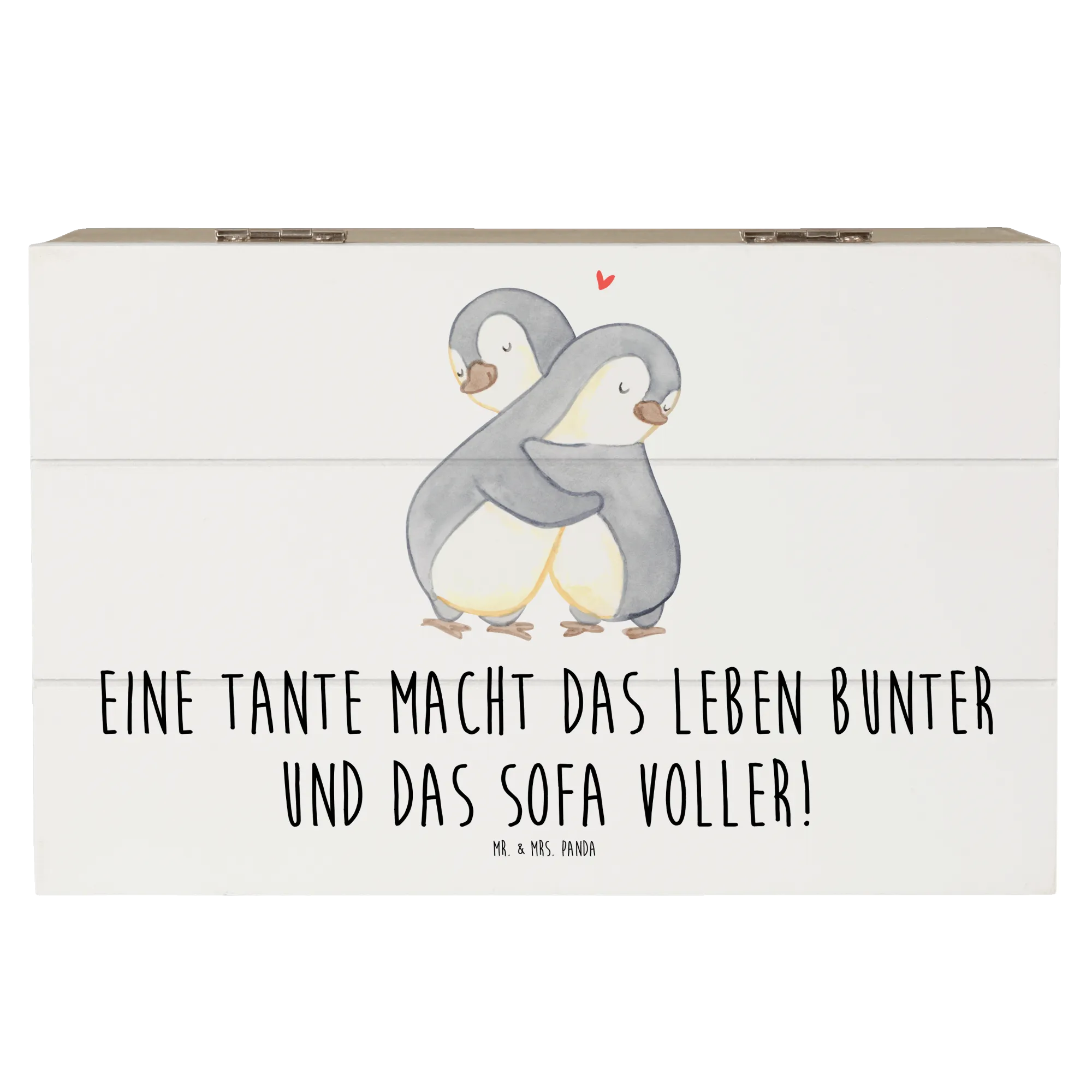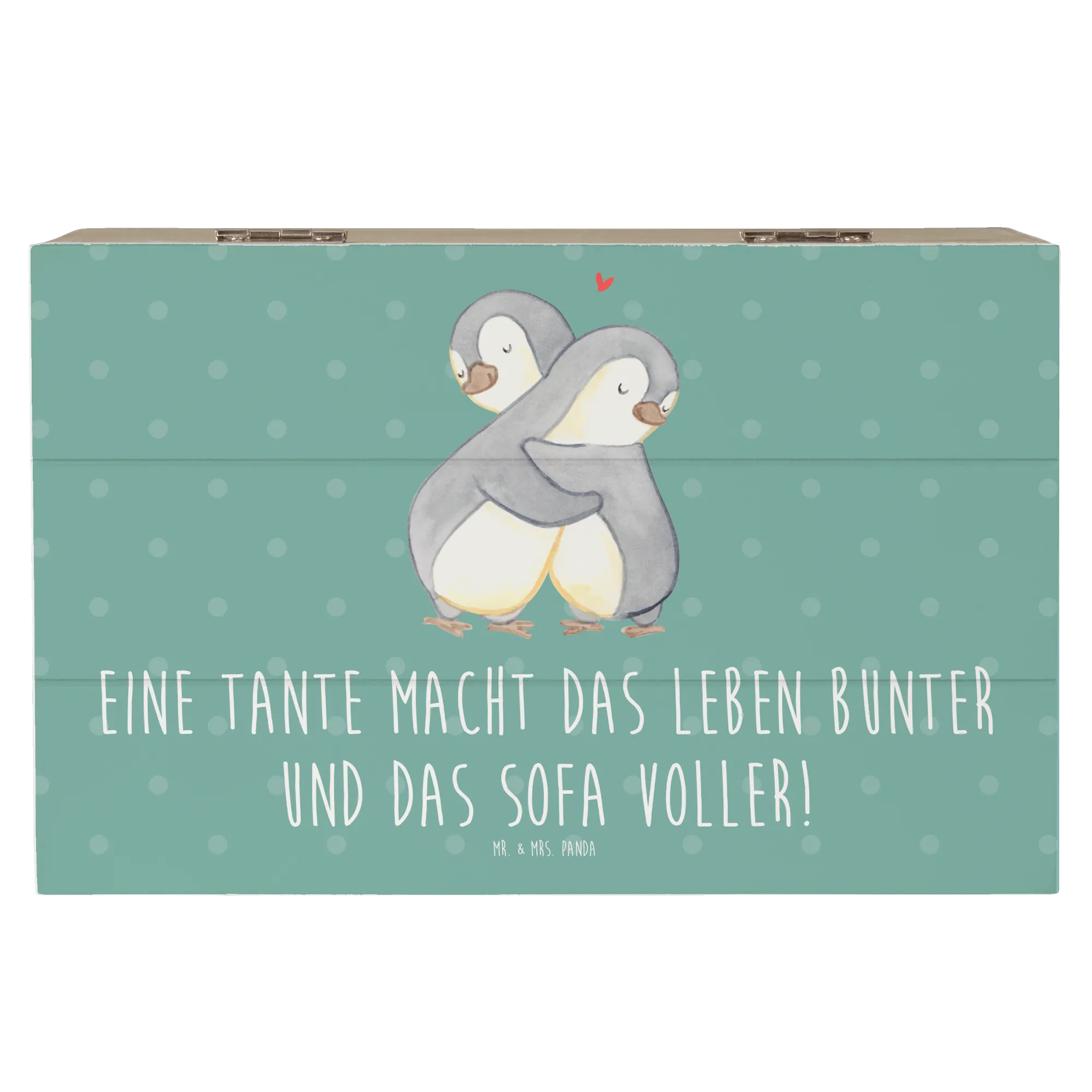 Die wunderschöne Holzkiste von Mr. & Mrs. Panda mit dem Motto 'Eine Tante macht das Leben bunter und das Sofa voller!' ist das perfekte Geschenk für all die tollen Tanten da draußen. Diese bezaubernde Kiste ist nicht nur ein praktischer Aufbewahrungsort für Erinnerungen, sondern trägt auch die einzigartige Botschaft, die die wichtige Rolle von Tanten in unserem Leben zelebriert.
