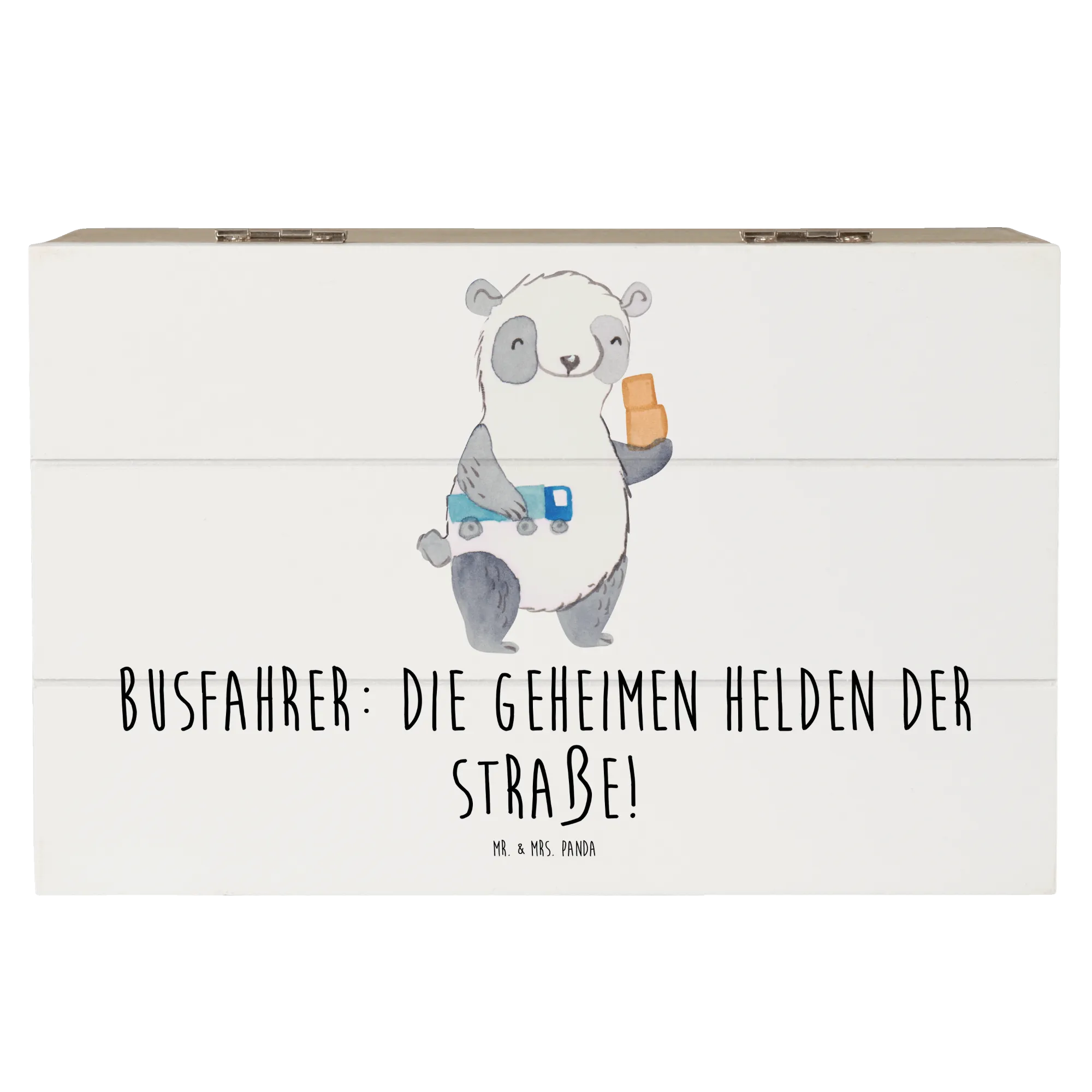 Die wunderschöne Holzkiste von Mr. & Mrs. Panda ist der perfekte Aufbewahrungsort für all Deine wertvollen Erinnerungen. Mit dem liebevollen Motiv "Busfahrer: Die geheimen Helden der Straße!" aus unserer Dankeschön-Kollektion ist diese Schatzkiste nicht nur praktisch, sondern auch ein echter Hingucker.