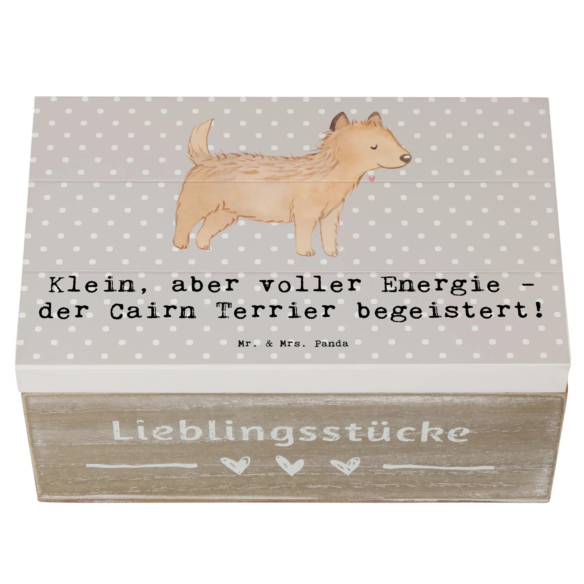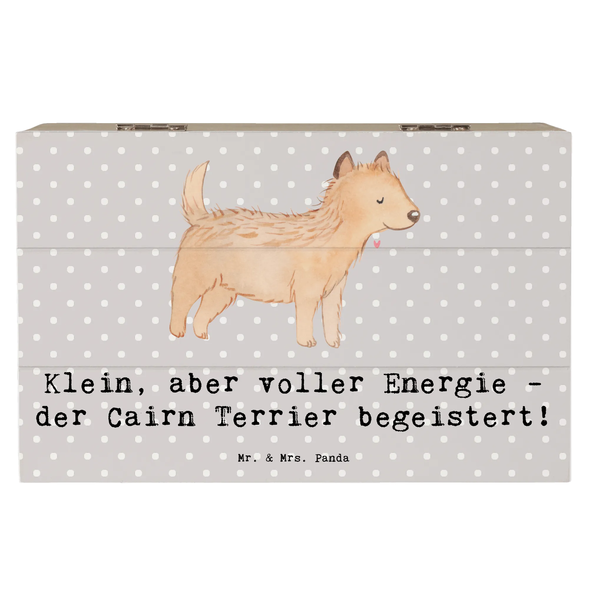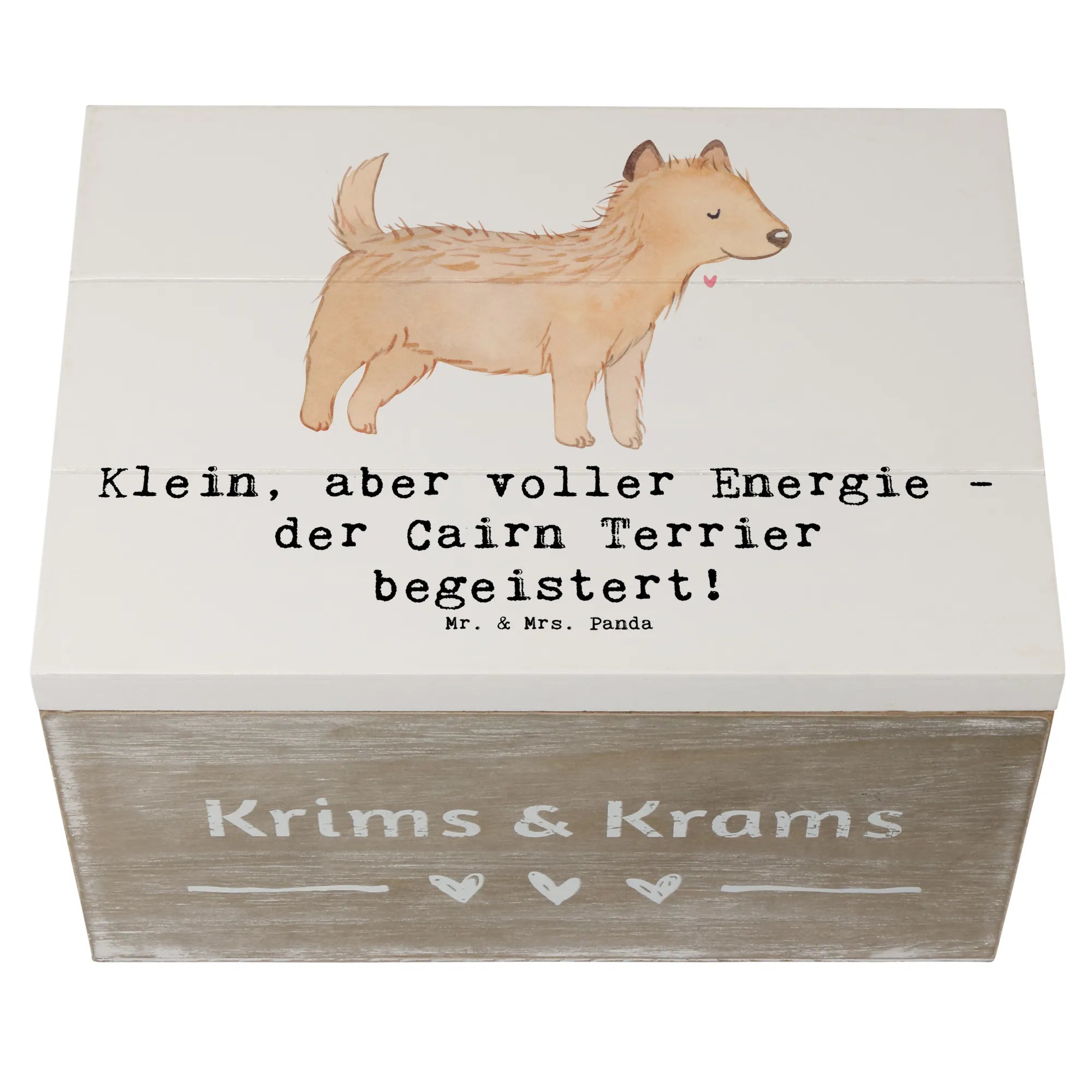 Die Kiste ziert das wunderschöne Motiv des Cairn Terriers, und der liebe Slogan "Klein, aber voller Energie - der Cairn Terrier begeistert!" wird dich immer wieder zum Schmunzeln bringen.