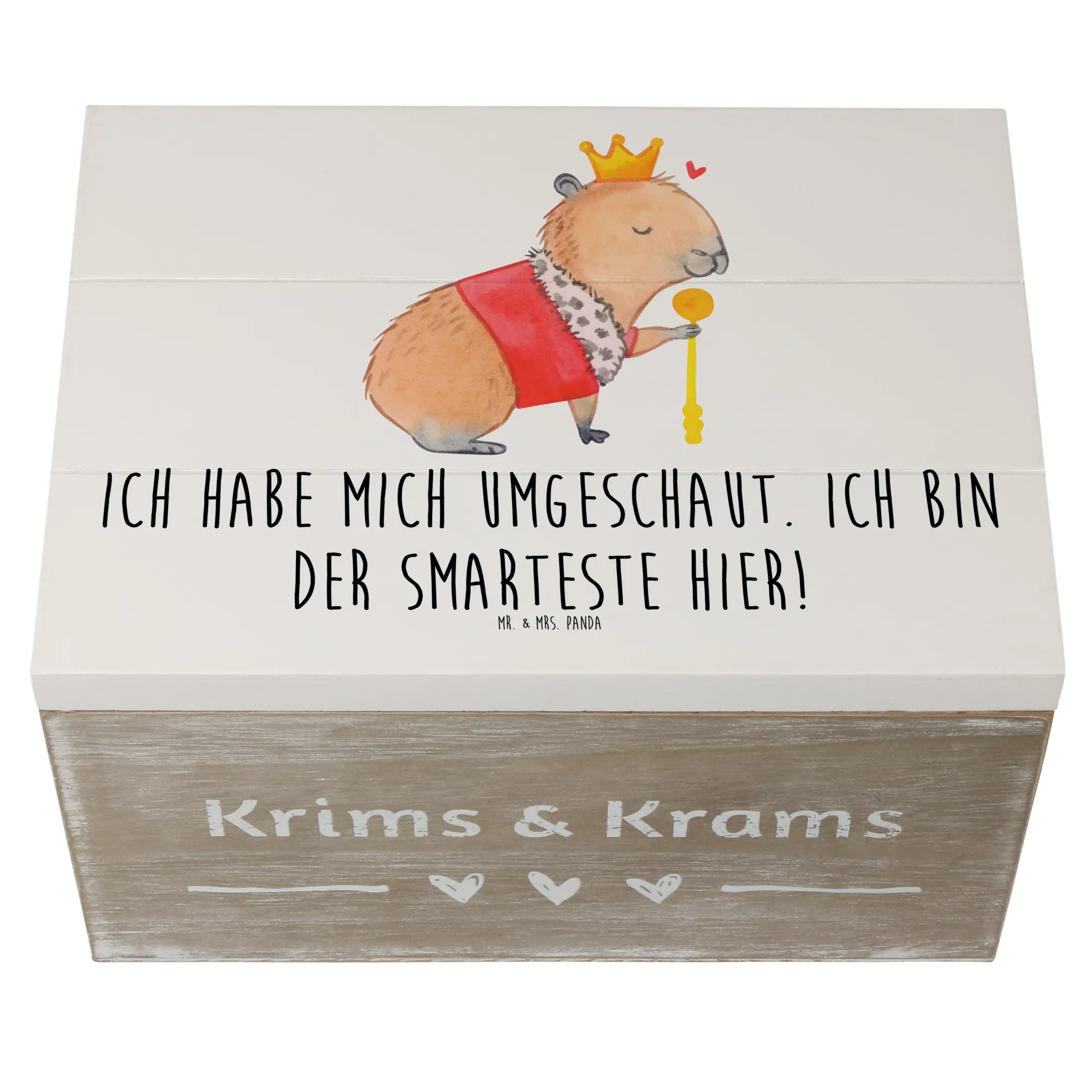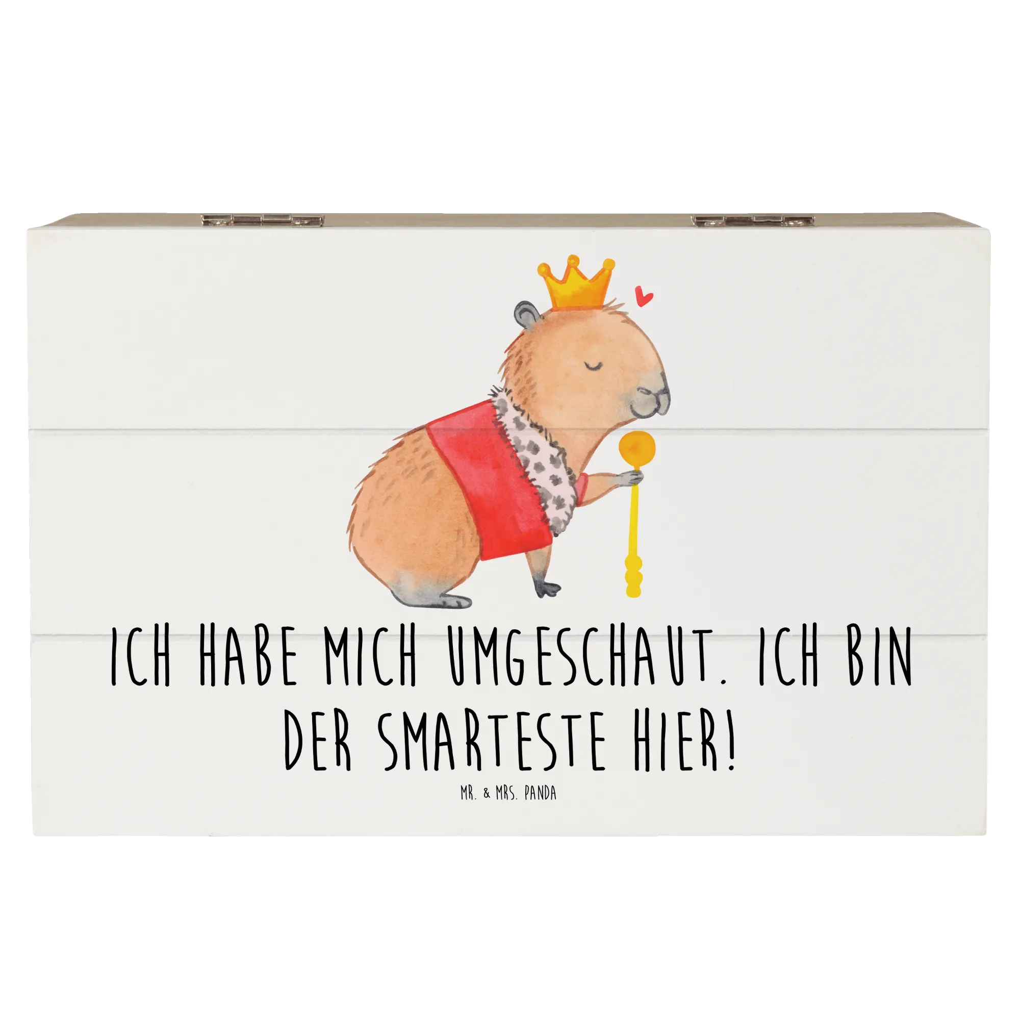 Holzkiste Capybara König - 22 x 15 cm - Weiß