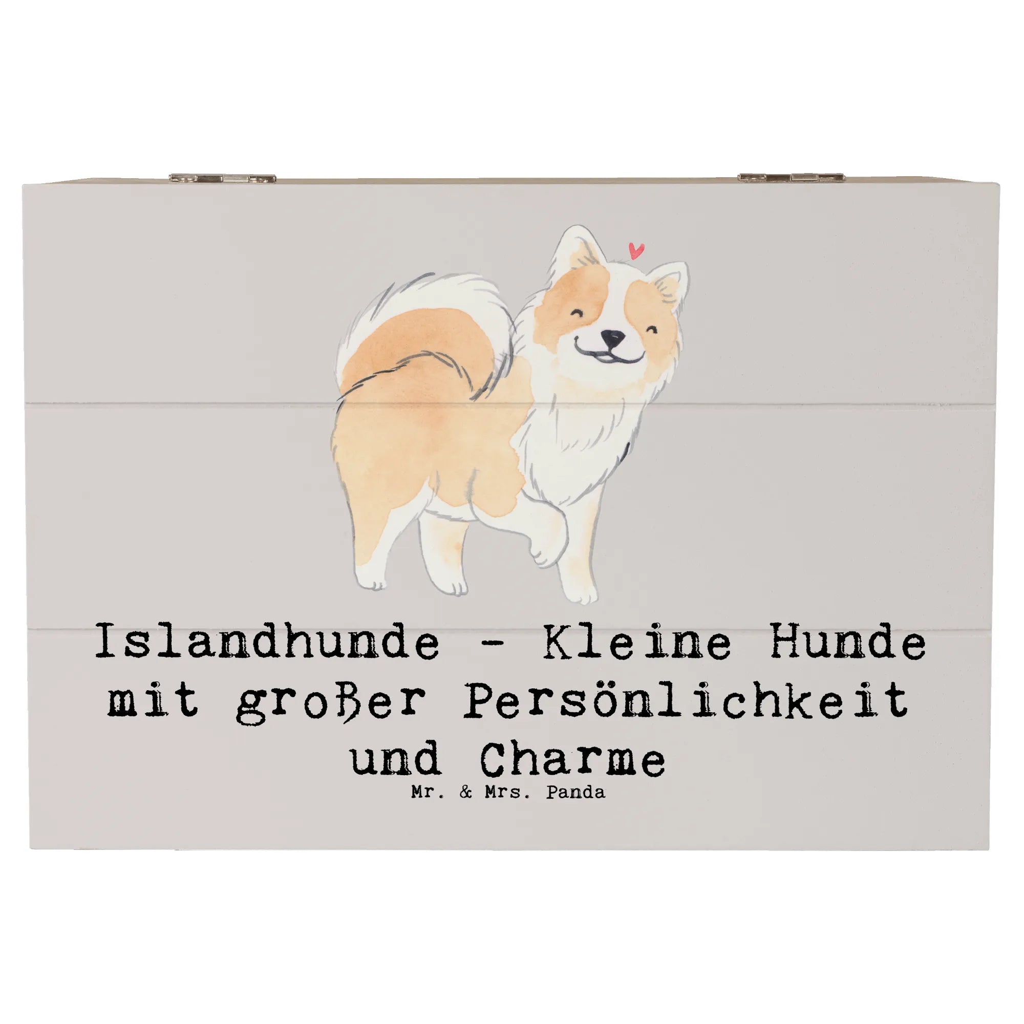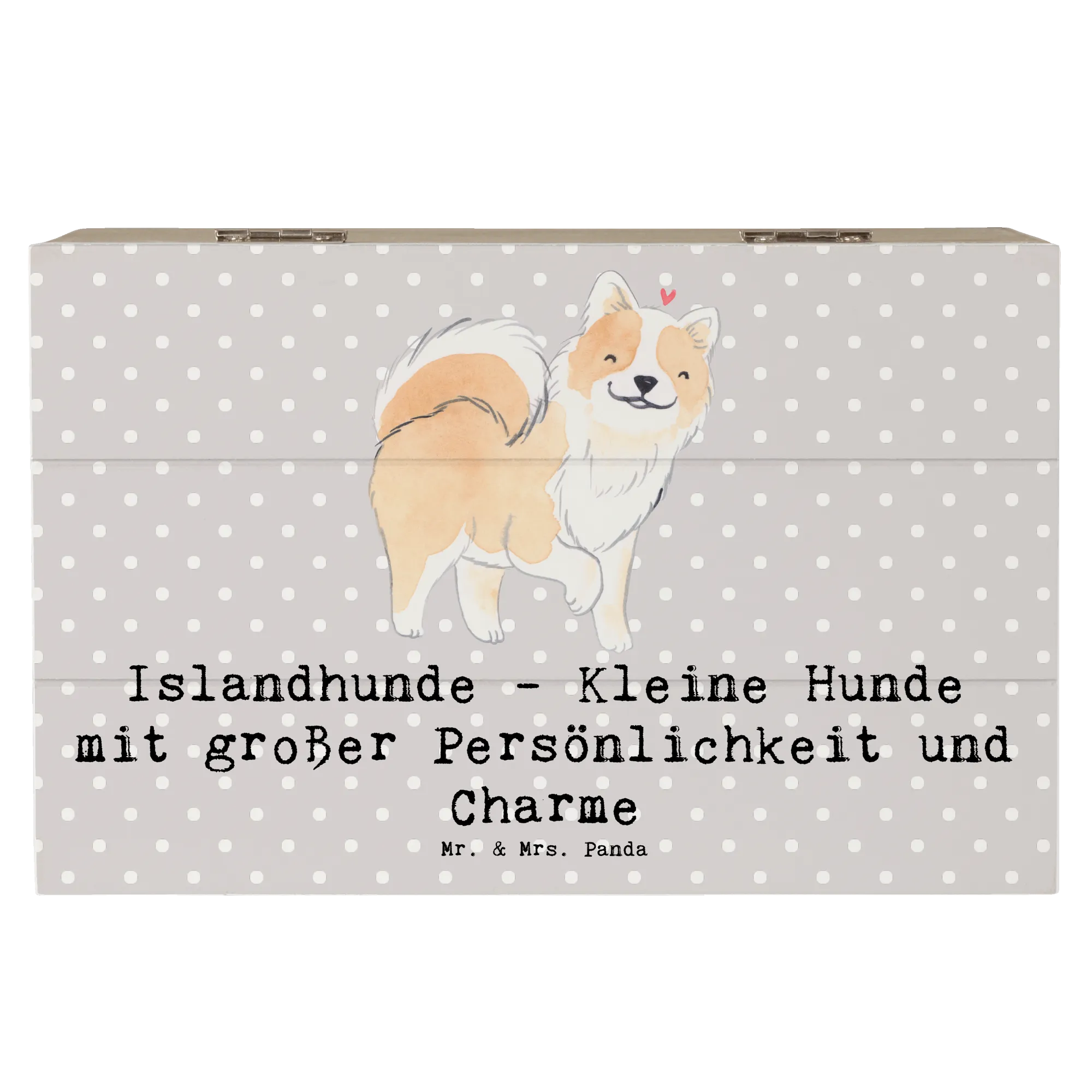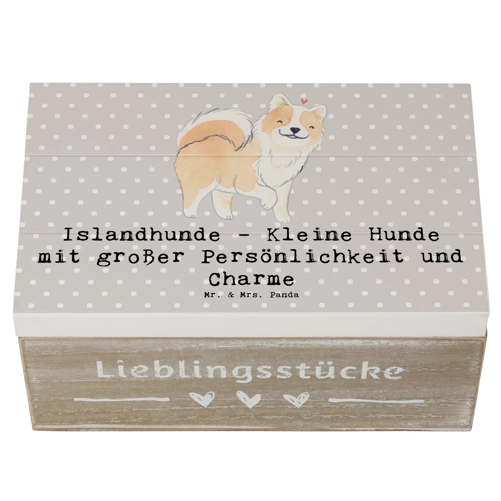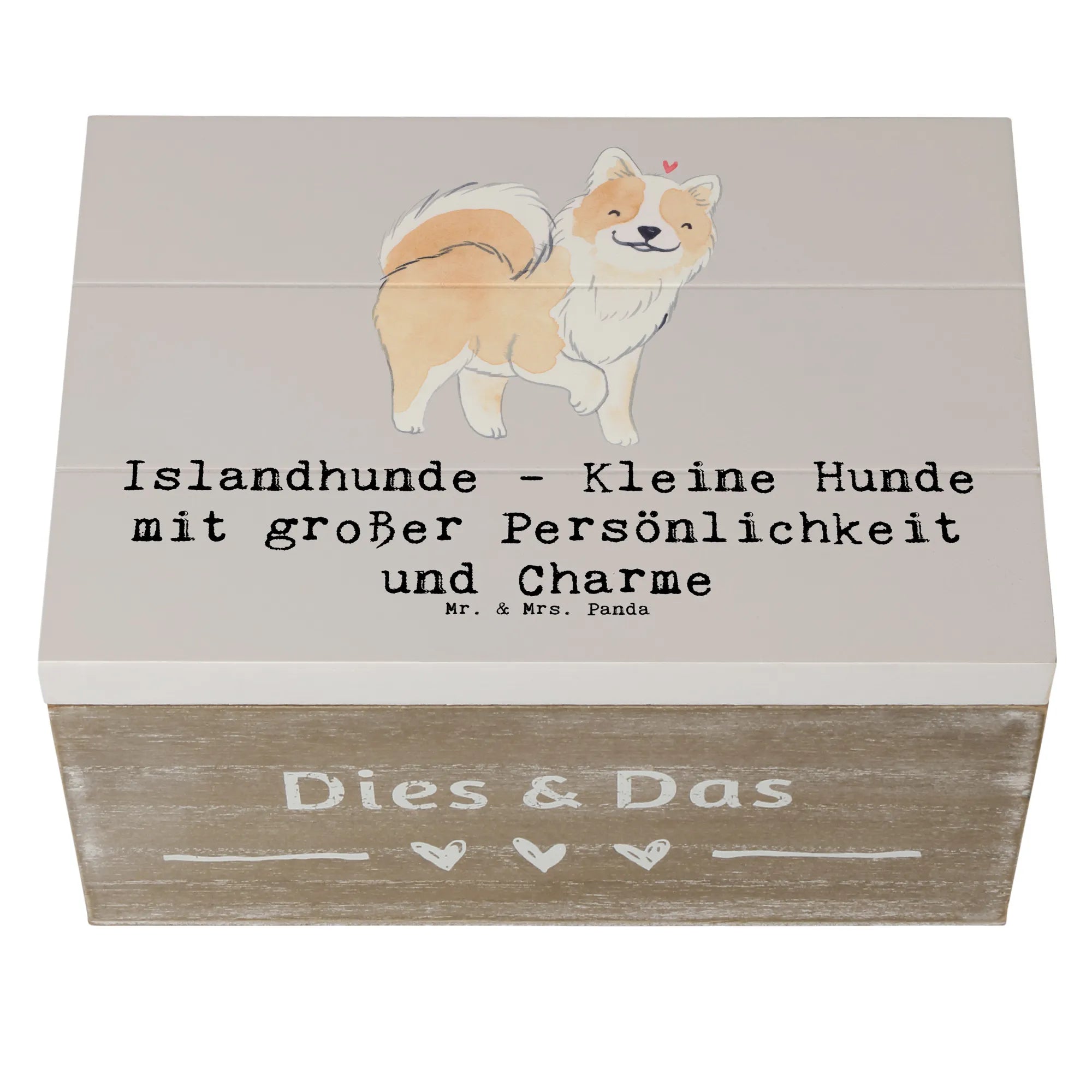 Entdecke die bezaubernde Holzkiste mit dem Motiv Islandhund aus der einzigartigen Hunderassen-Kollektion von Mr. & Mrs. Panda!