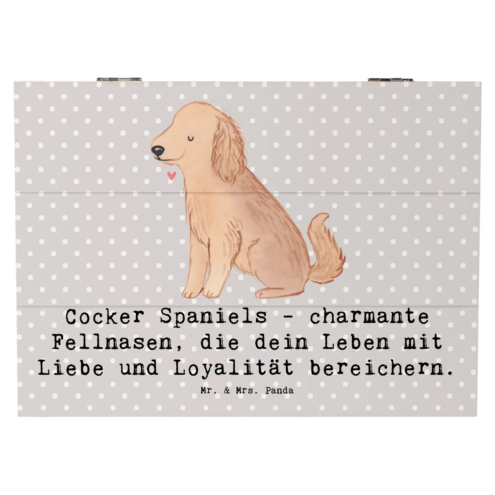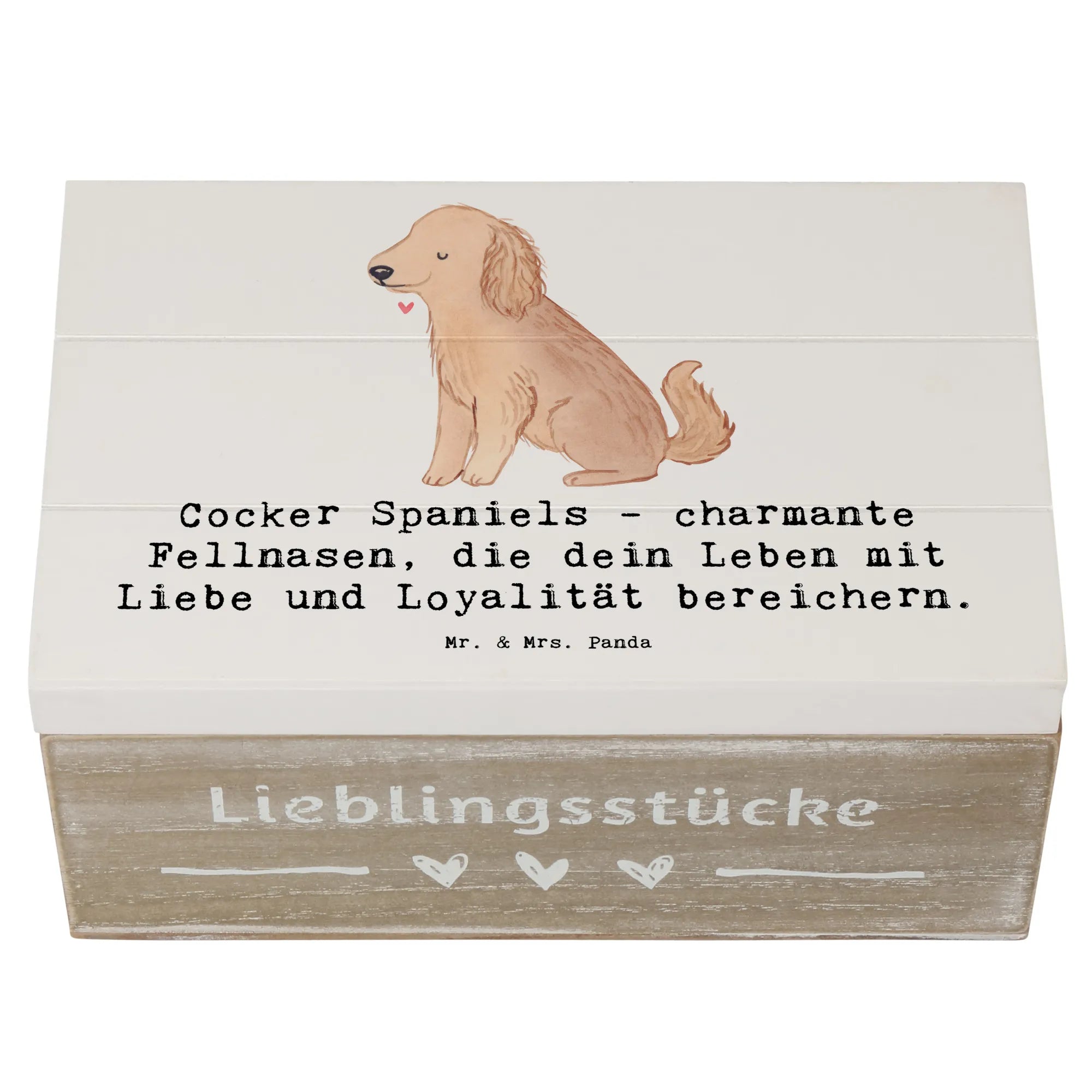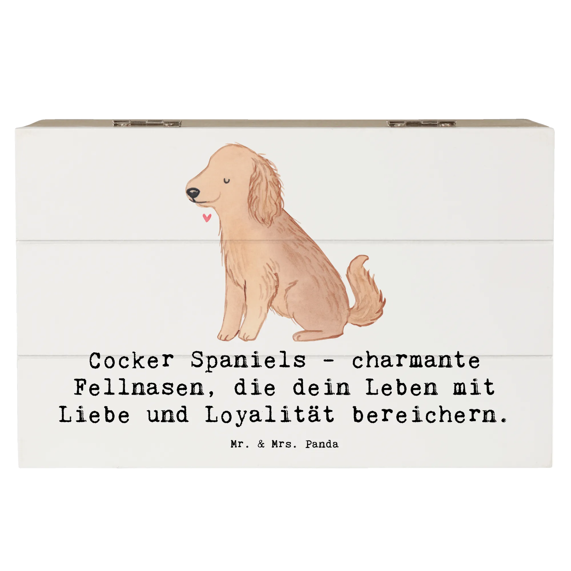 Die wunderschöne Holzkiste von Mr. & Mrs. Panda mit dem Motiv des charmanten Cocker Spaniel ist das perfekte Geschenk für Hundefreunde! Diese einzigartige Kiste ist nicht nur ein wunderschöner Blickfang, sondern auch äußerst praktisch.