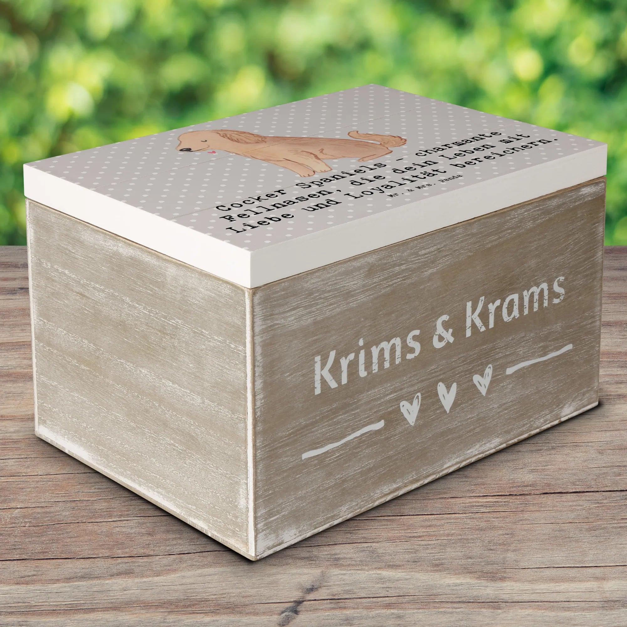 Entdecke die zauberhafte Holzkiste von Mr. & Mrs. Panda, die mit einem charmanten Cocker Spaniel-Motiv bedruckt ist!