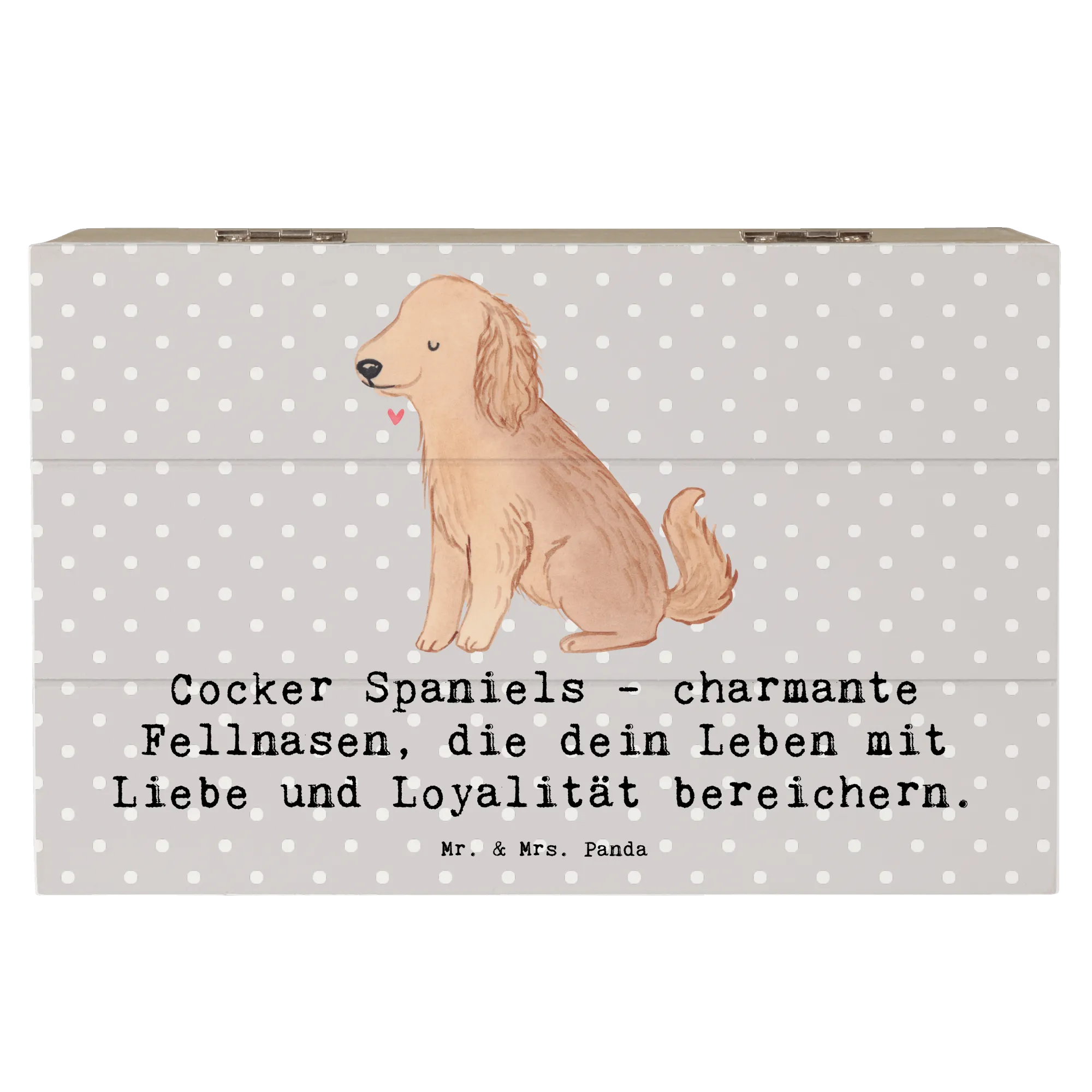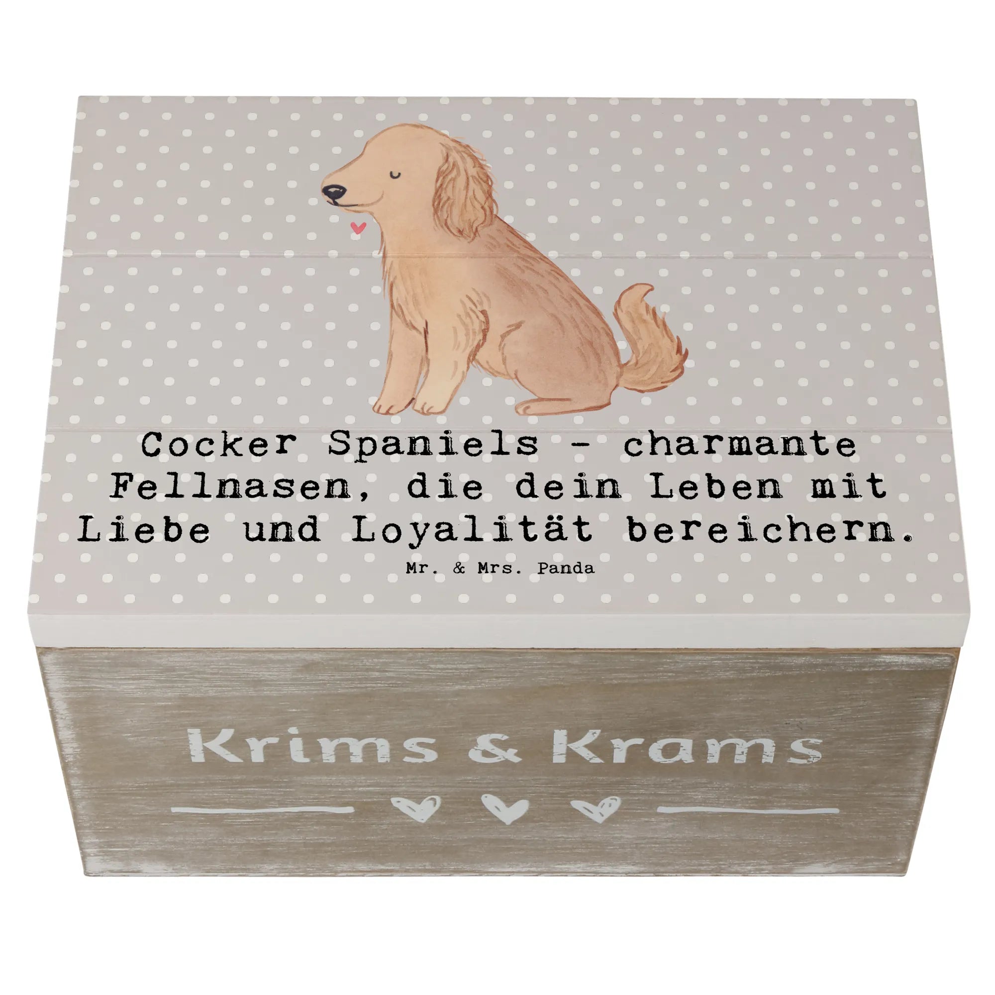 Die wunderschöne Holzkiste von Mr. & Mrs. Panda ist das perfekte Geschenk für Hundeliebhaber, speziell für Fans von Cocker Spaniels. Mit ihrem charmanten Design und dem Spruch „Cocker Spaniels - charmante Fellnasen, die dein Leben mit Liebe und Loyalität bereichern“ ist diese Erinnerungskiste nicht nur ein praktischer Aufbewahrungsort, sondern auch ein emotionales Schmuckstück.