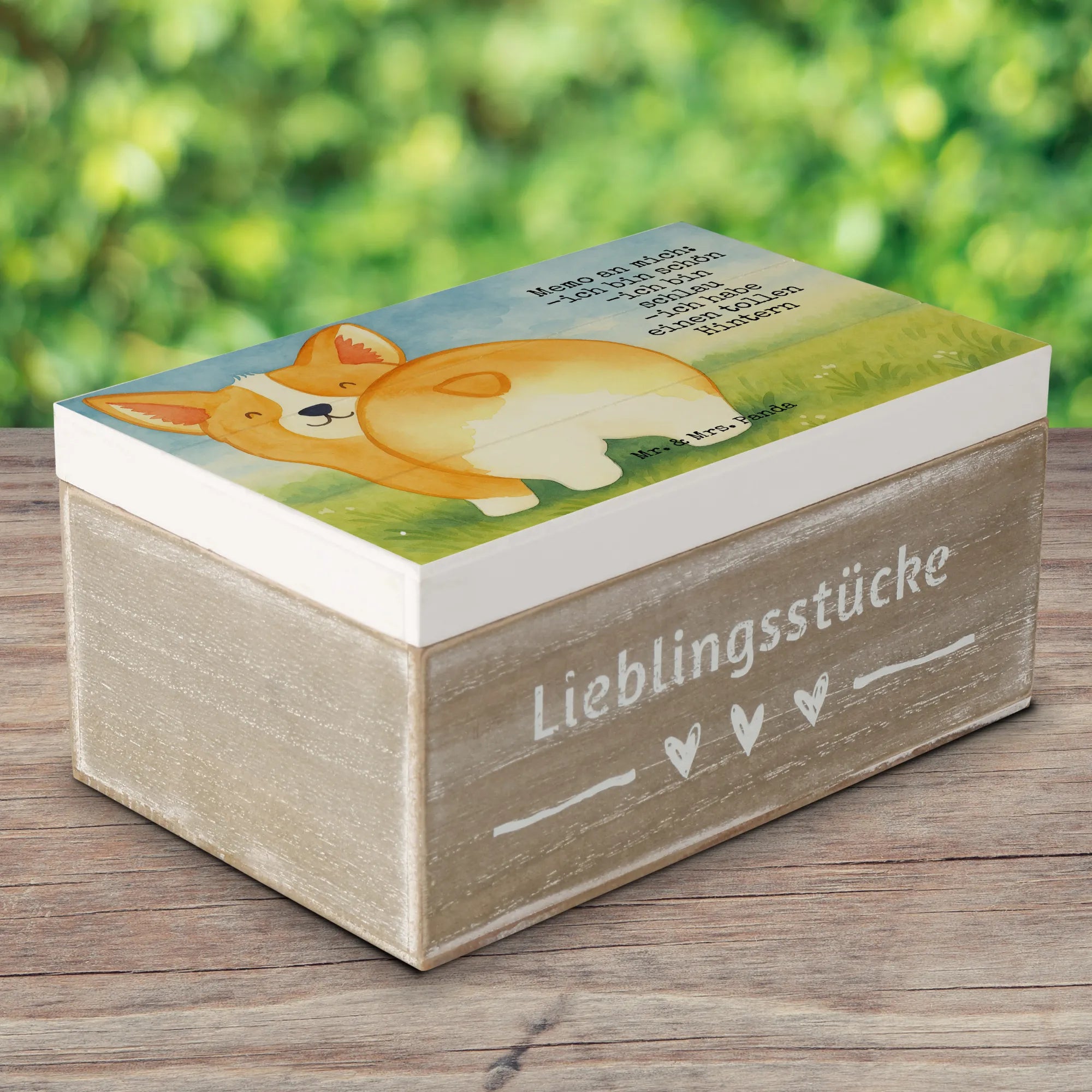 Holzkiste Corgi Po Design - 22 x 15 cm - mit Spruch