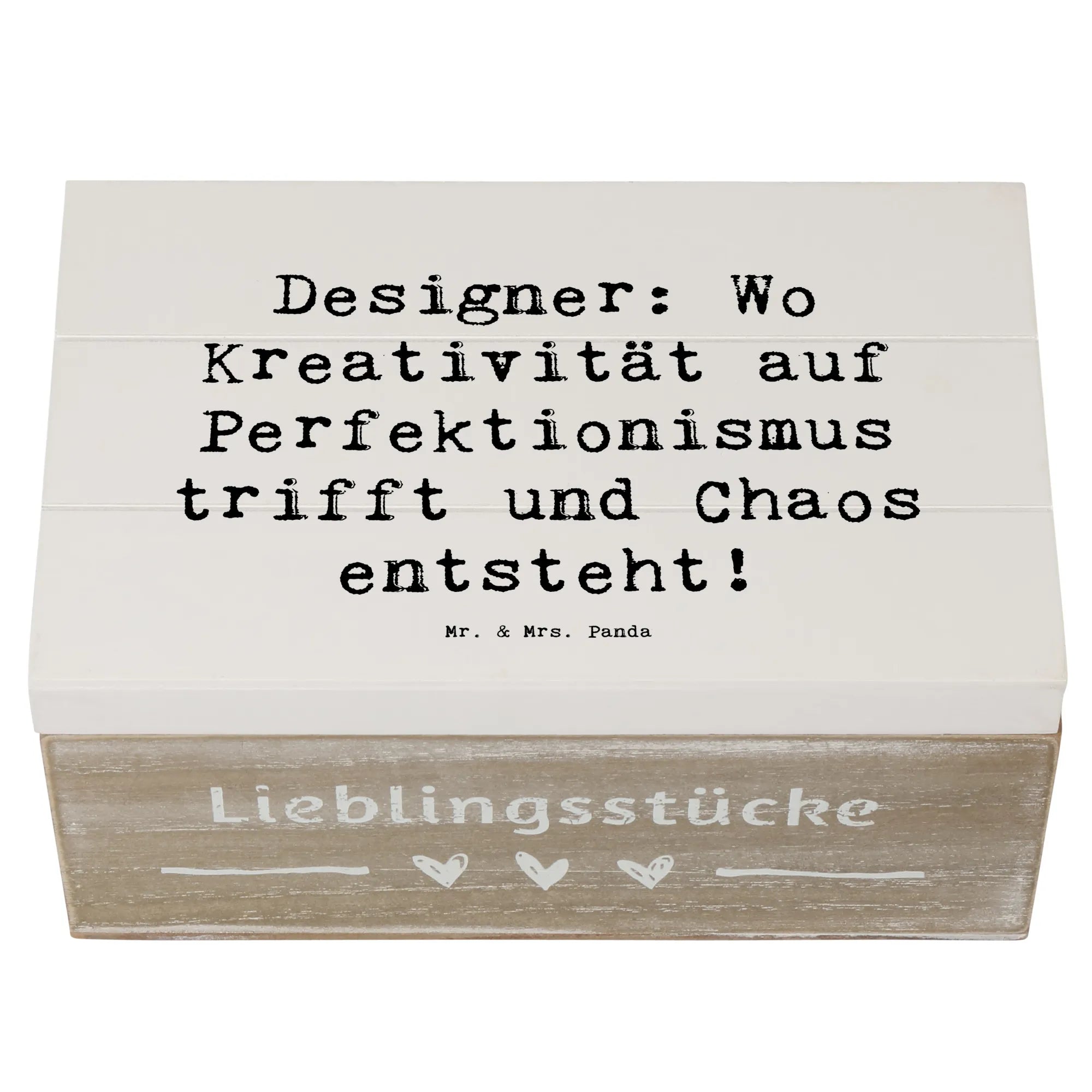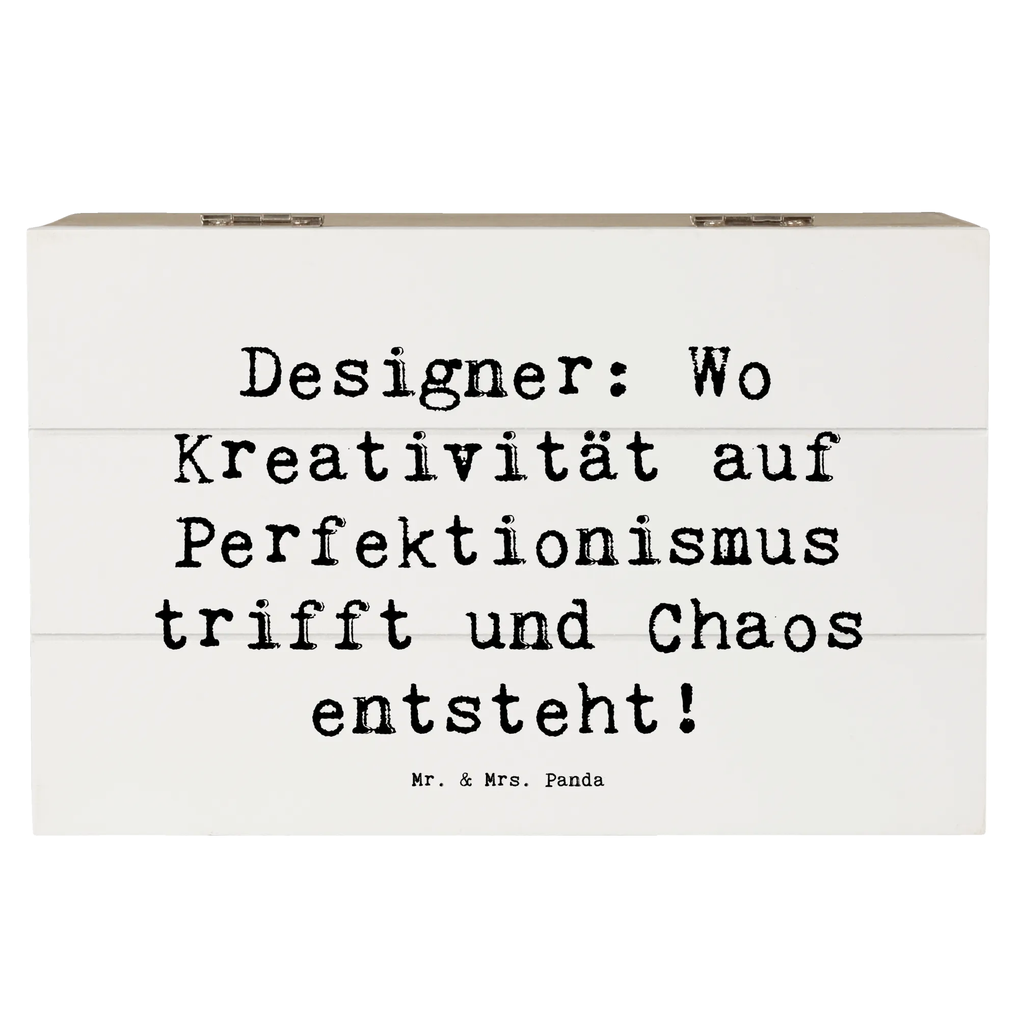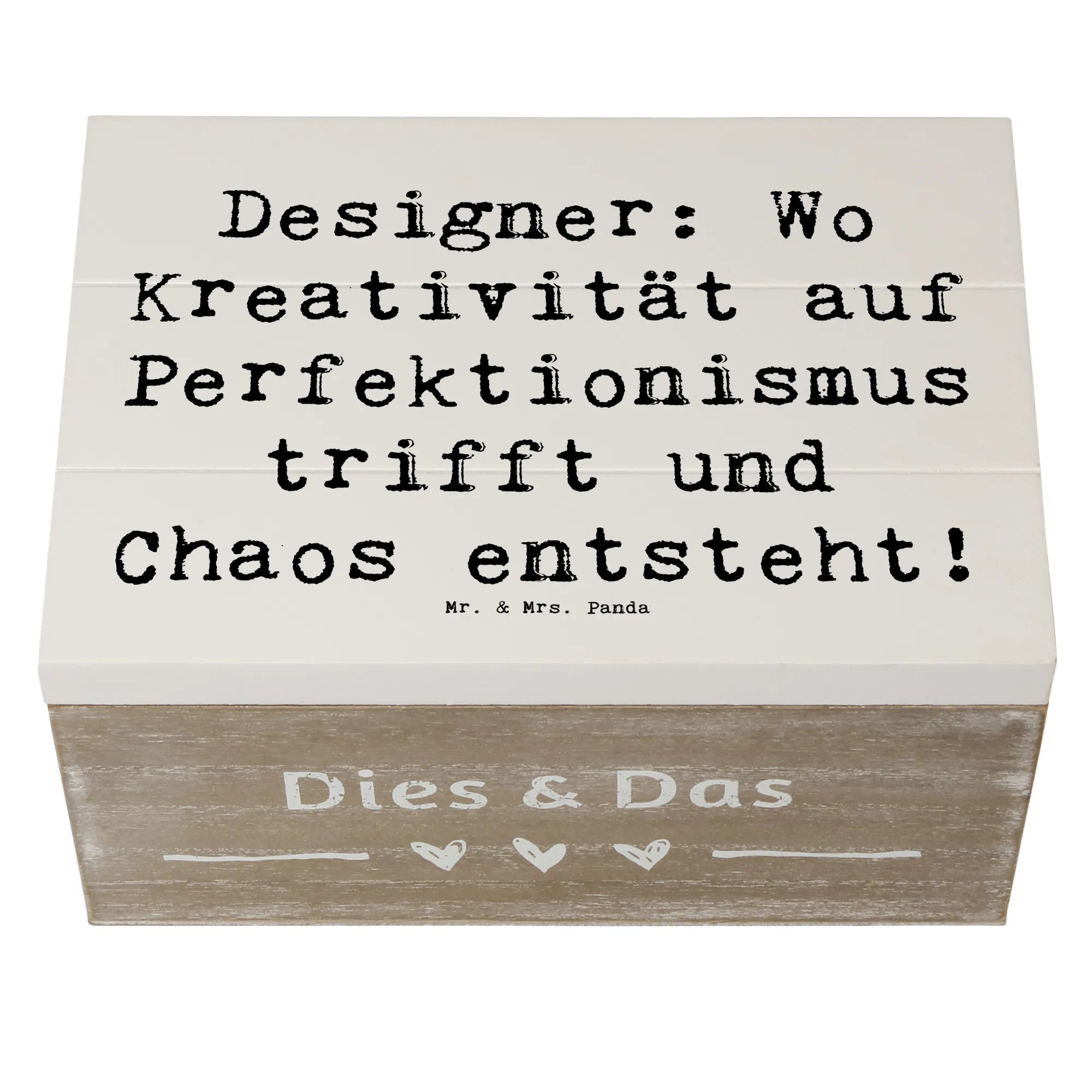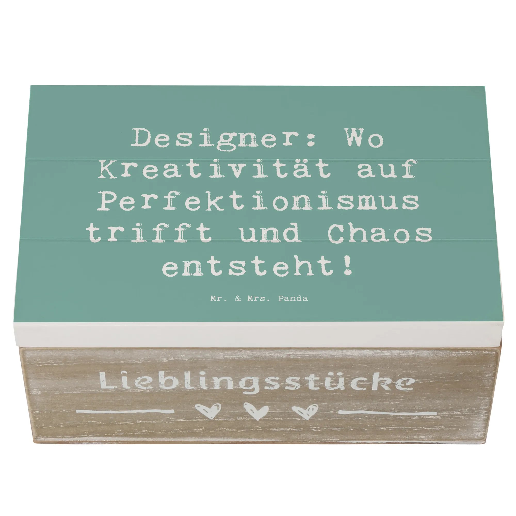 Die wunderschöne Holzkiste von Mr. & Mrs. Panda ist der perfekte Aufbewahrungsort für Deine kostbarsten Schätze. Ob Erinnerungen aus der Kindheit, Fotos von besonderen Anlässen oder kleine Souvenirs - diese Kiste bietet Platz für alles, was Dir am Herzen liegt. Mit ihrem liebevoll gestalteten Motiv "Designer: Wo Kreativität auf Perfektionismus trifft und Chaos entsteht!" aus der Berufe-Kollektion bringt sie nicht nur Ordnung in Dein Leben, sondern auch ein Stück Kreativität.