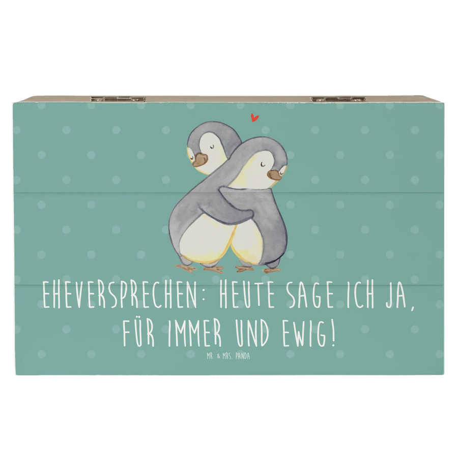 Die wunderschöne Holzkiste mit dem Motto "Eheversprechen: Heute sage ich Ja, für immer und ewig!" von Mr. & Mrs. Panda ist das perfekte Geschenk für frisch vermählte Paare und alle, die ihre Liebe auf eine besondere Art und Weise feiern möchten.