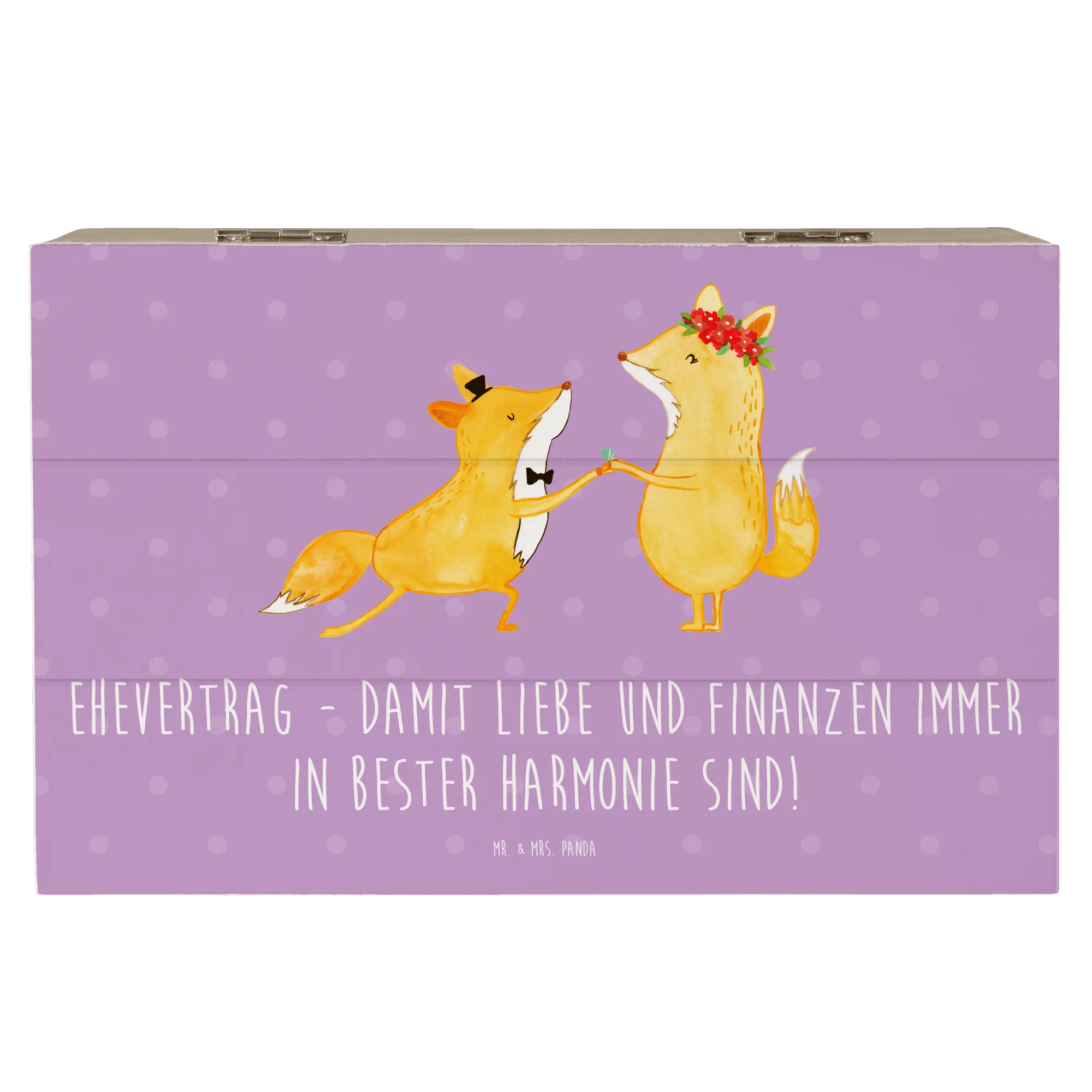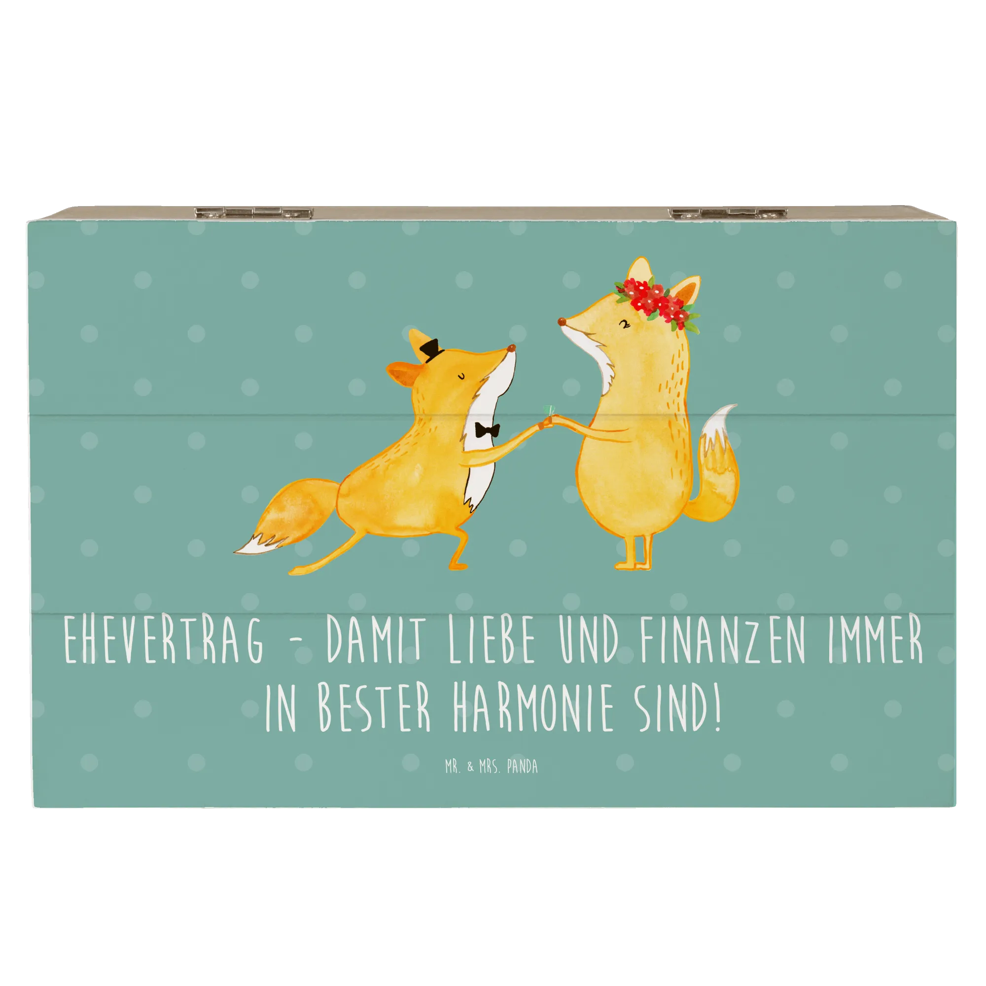 Entdecke die zauberhafte Holzkiste von Mr. & Mrs. Panda, die perfekt für Hochzeiten ist! Mit dem wundervollen Motiv "Ehevertrag - Damit Liebe und Finanzen immer in bester Harmonie sind!" wird diese Kiste zu einem ganz besonderen Geschenk für das Brautpaar.