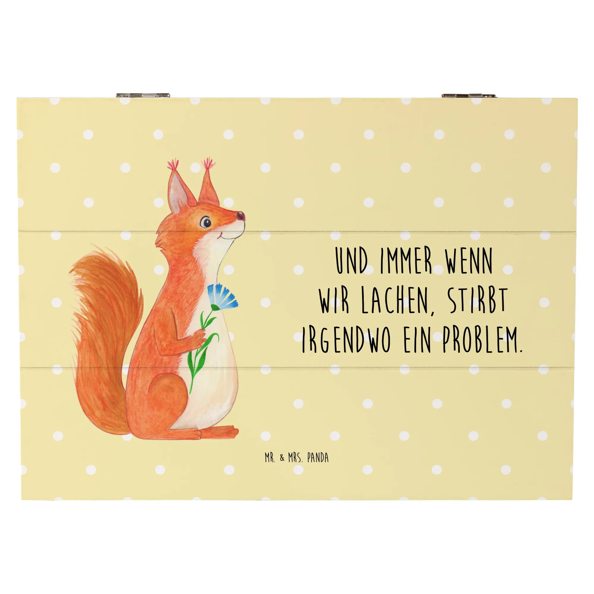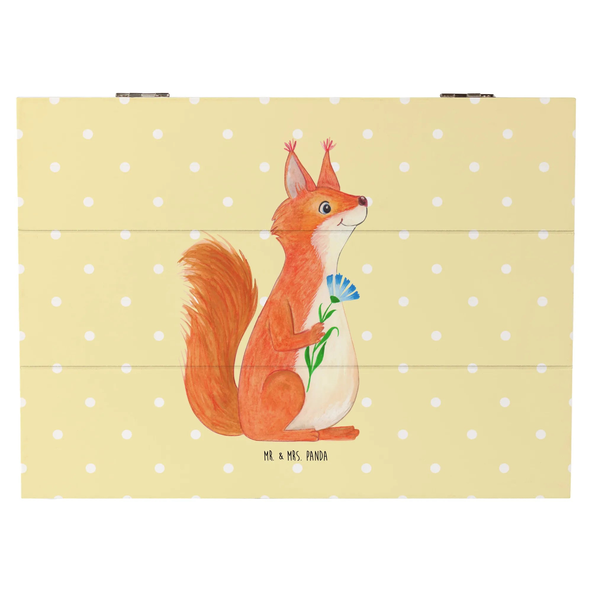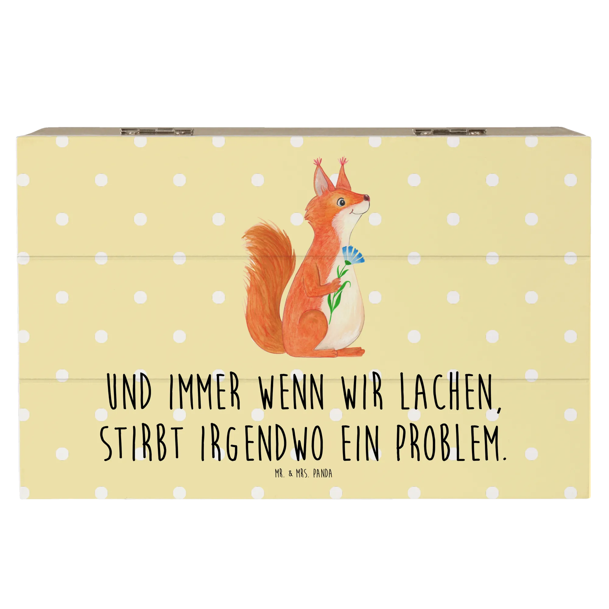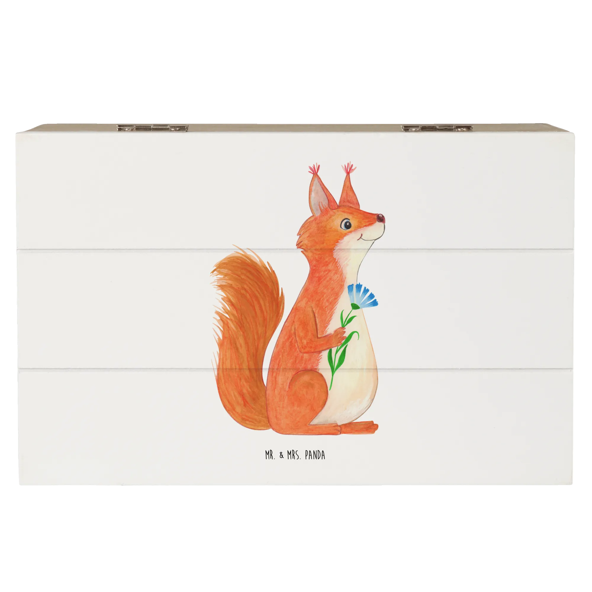 Die wunderschöne Holzkiste mit Eichhörnchen und Blume von Mr. & Mrs. Panda ist mehr als nur eine Aufbewahrungsbox – sie ist ein echtes Schmuckstück für dein Zuhause.