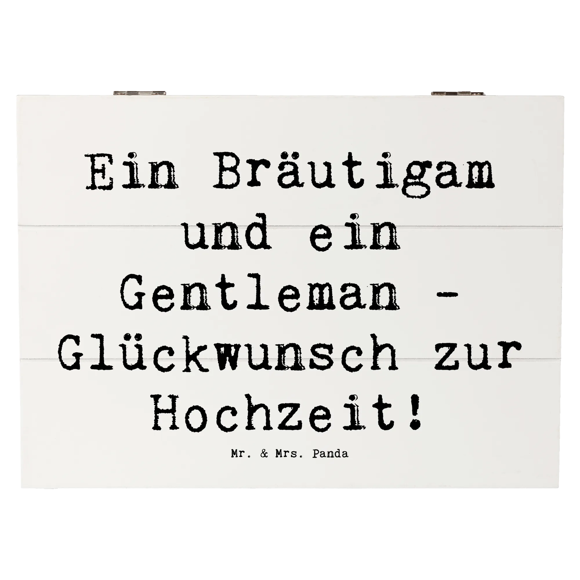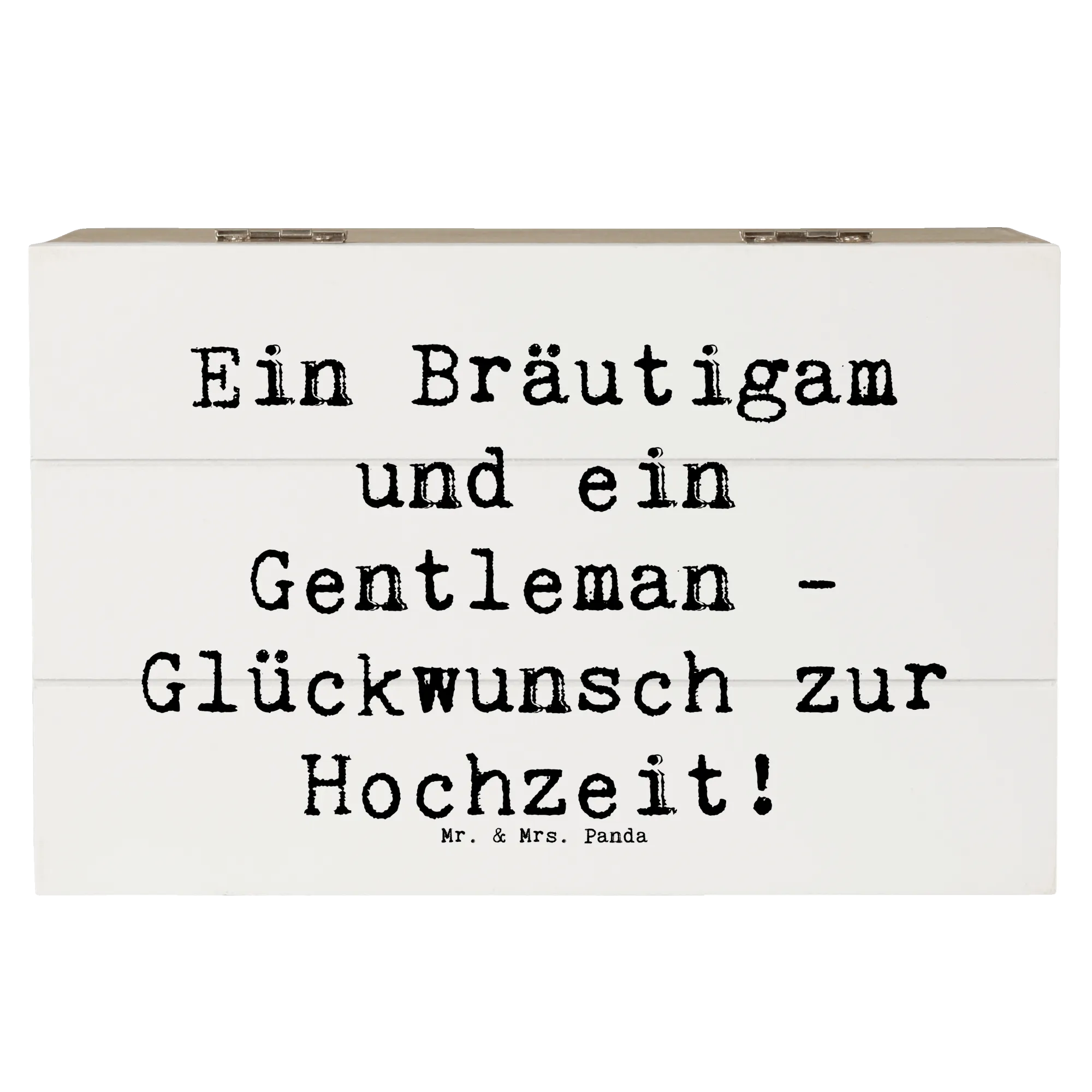 Entdecke die bezaubernde Holzkiste Bräutigam von Mr. & Mrs. Panda – das ideale Geschenk für jeden, der sich auf den schönsten Tag seines Lebens vorbereitet! Diese wunderschöne Erinnerungskiste ist nicht nur ein stilvolles Aufbewahrungselement, sondern auch ein liebevolles Geschenk, das zu jedem Hochzeitsanlass passt. Mit einem charmanten Motiv des Bräutigams und dem besonderen Spruch „Ein Bräutigam und ein Gentleman - Glückwunsch zur Hochzeit!“ wird diese Holzkiste schnell zum Herzstück jeder Hochzeitsdekoration.