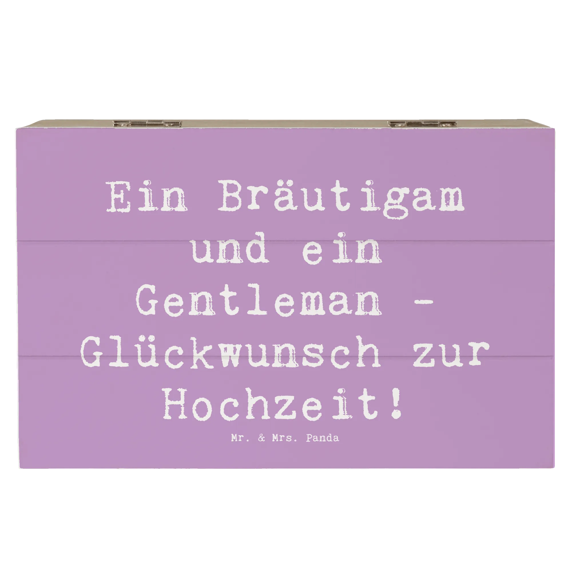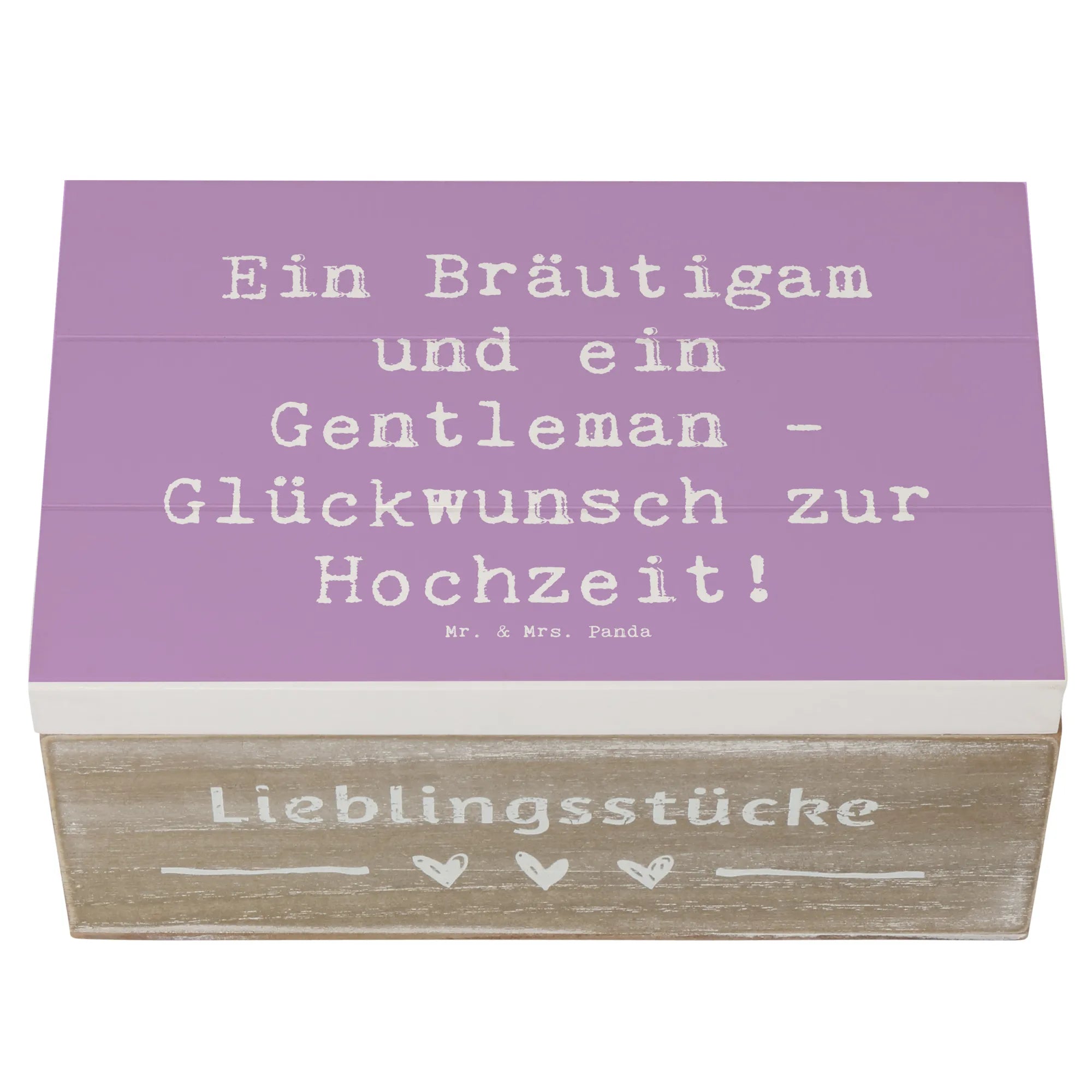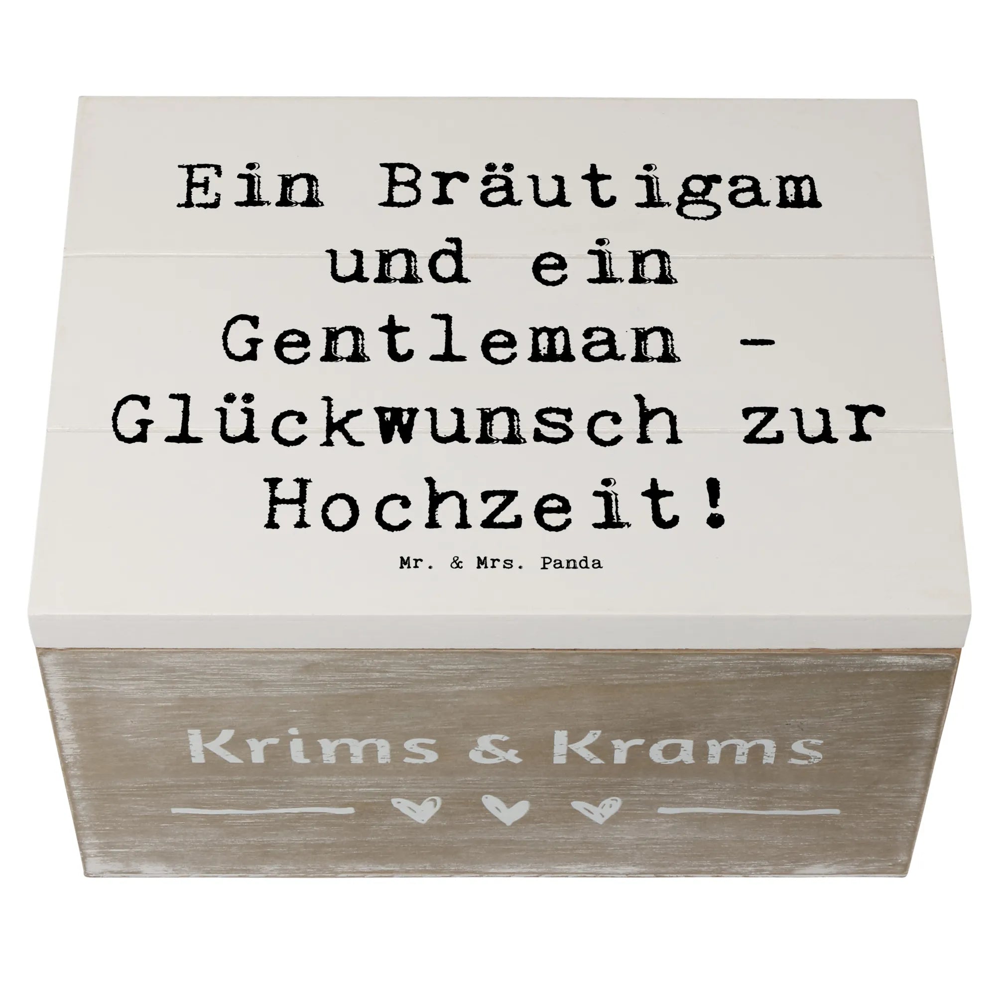 Mit dem charmanten Spruch "Ein Bräutigam und ein Gentleman - Glückwunsch zur Hochzeit!", verleiht sie jedem Hochzeitsgeschenk eine persönliche Note. Ob als schicke Dekokiste, Aufbewahrungsbox für Erinnerungen an die schönsten Momente deines Lebens, oder als Geschenkbox für das Brautpaar – diese Kiste passt einfach zu jedem Anlass.