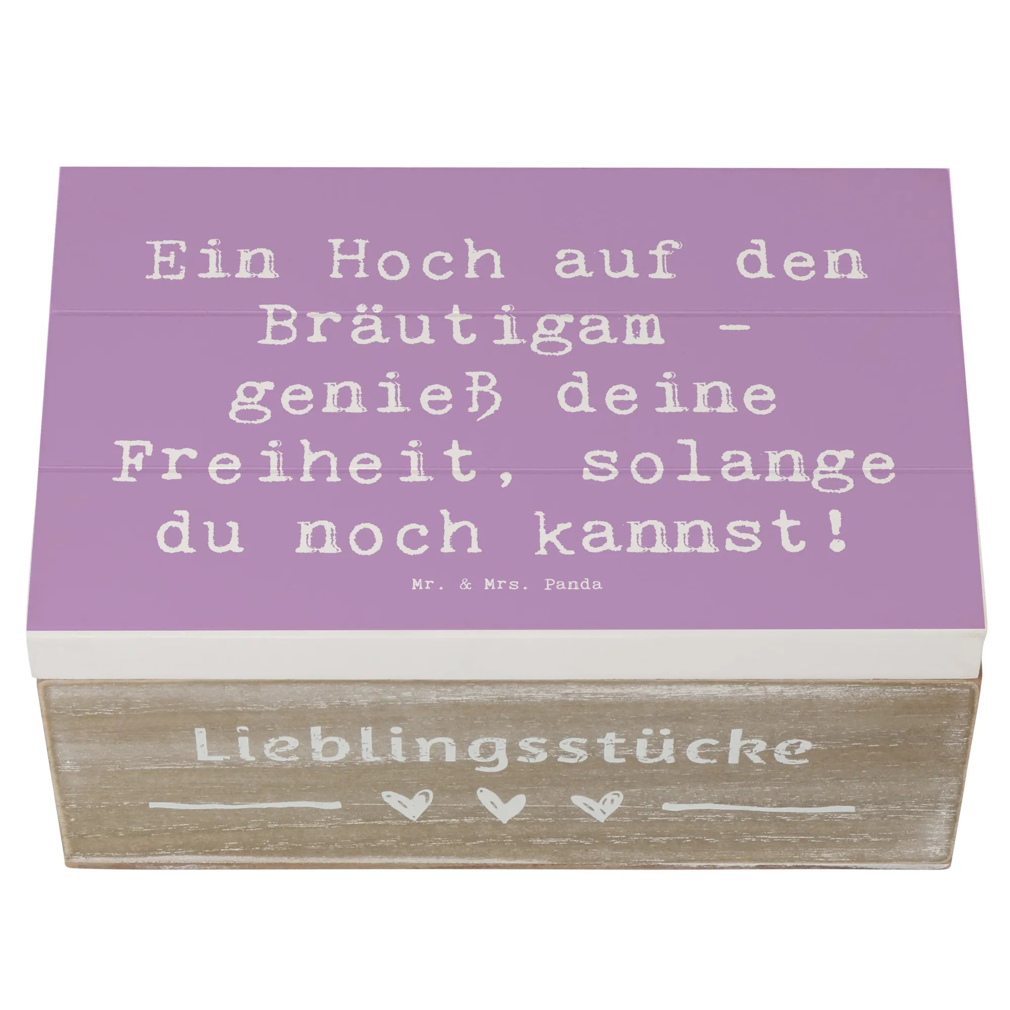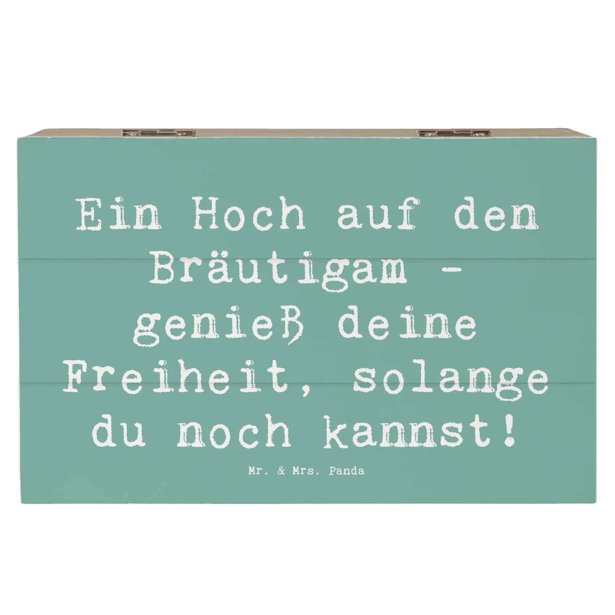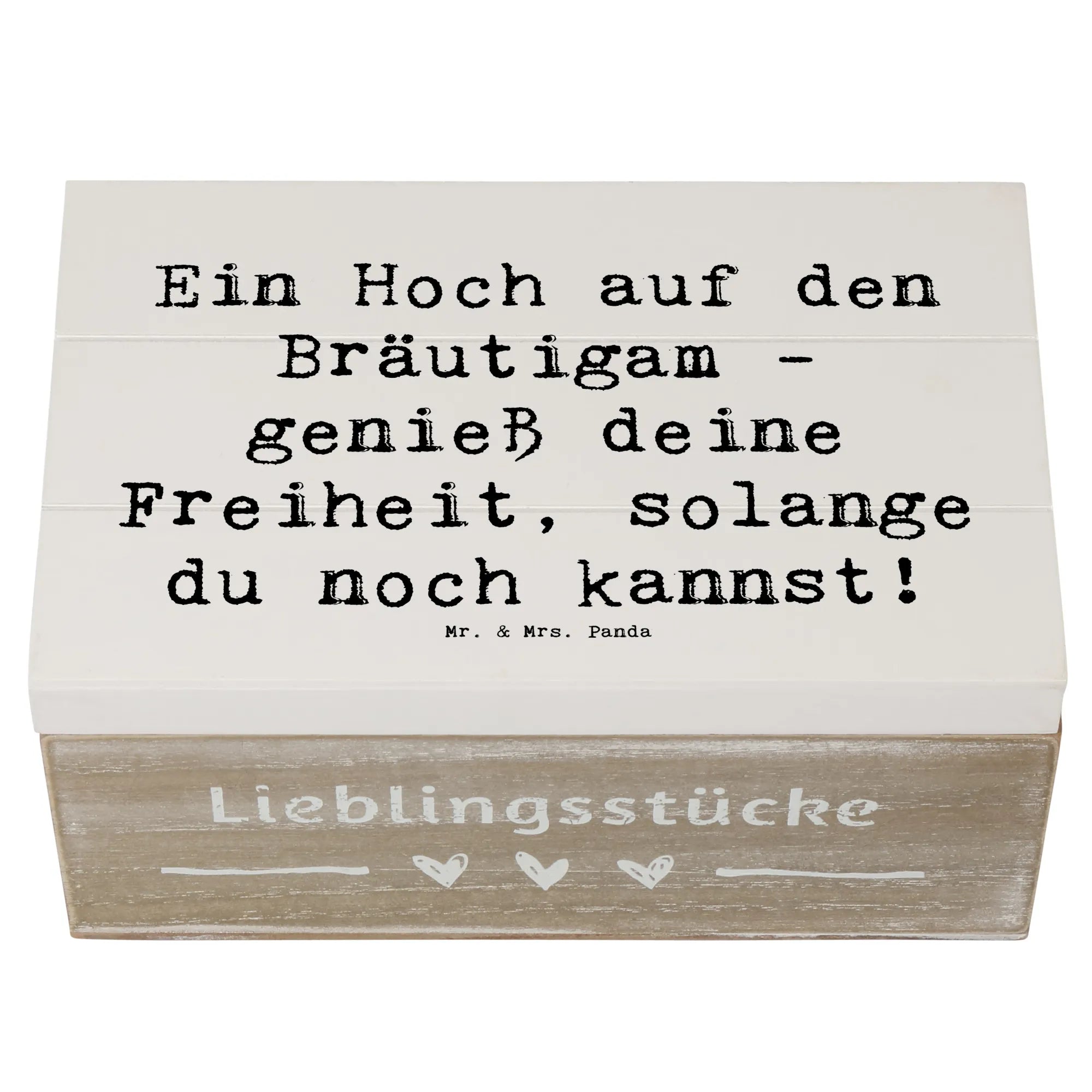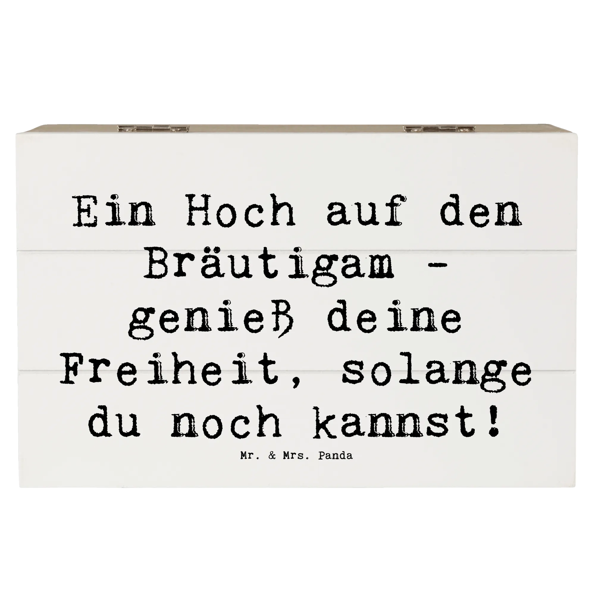 Eine wunderschöne Holzkiste von Mr. & Mrs. Panda – perfekt für deinen Junggesellenabschied und die Hochzeitssaison. Die Box trägt den frechen Spruch „Ein Hoch auf den Bräutigam - genieß deine Freiheit, solange du noch kannst!“ und ist ein liebevolles, witziges Geschenk aus unserer Hochzeit Kollektion.