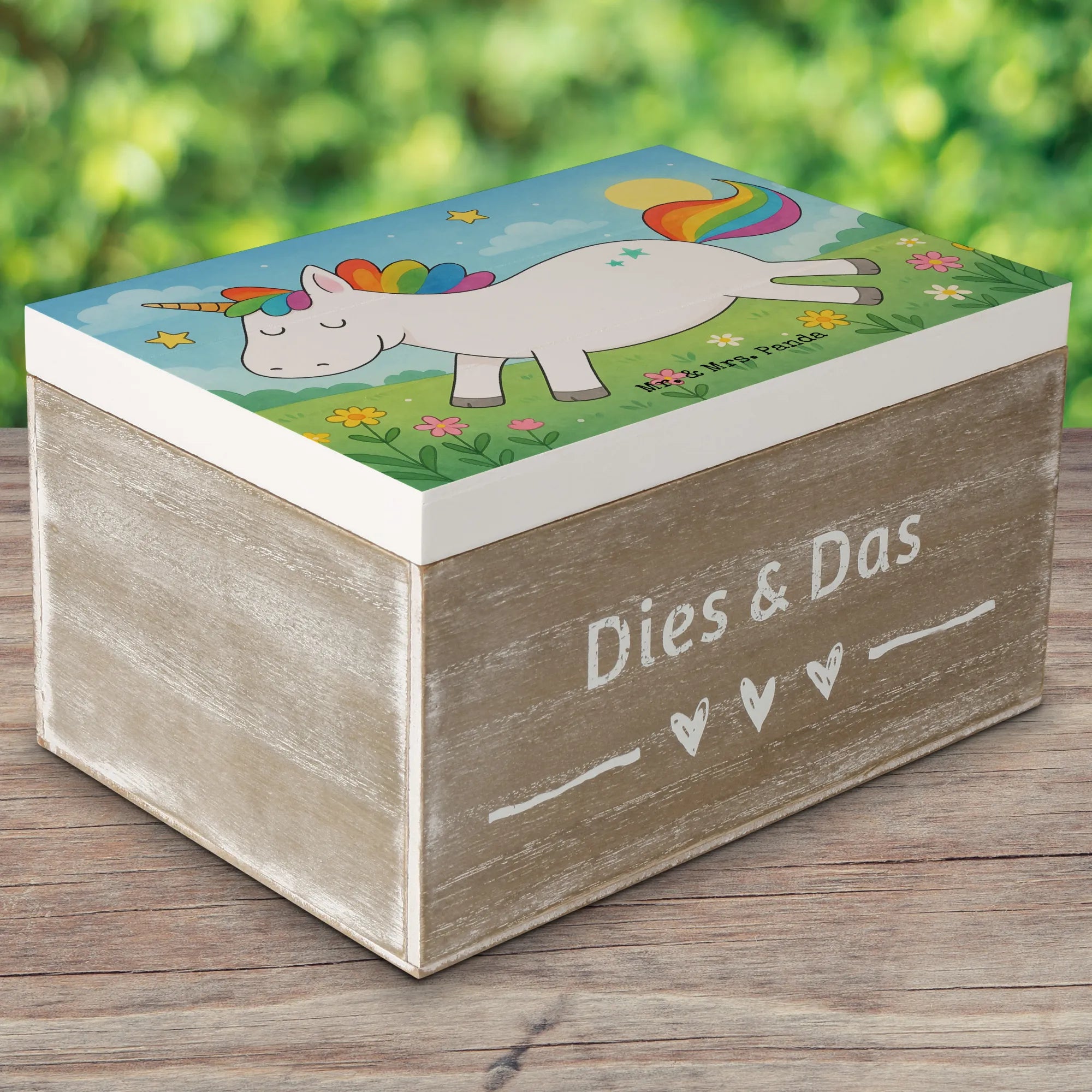 Holzkiste Einhorn Happy Design - 22 x 15 cm - mit Spruch