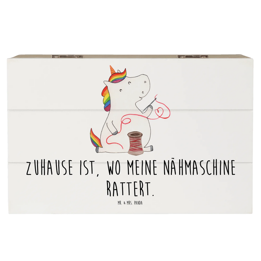Bist du auf der Suche nach dem perfekten Geschenk für eine kreative Freundin oder vielleicht für dich selbst? Unsere wunderschöne Holzkiste mit dem zauberhaften Einhorn-Motiv "Näherin" aus der Einhorn Kollektion von Mr. & Mrs. Panda ist da genau das Richtige!