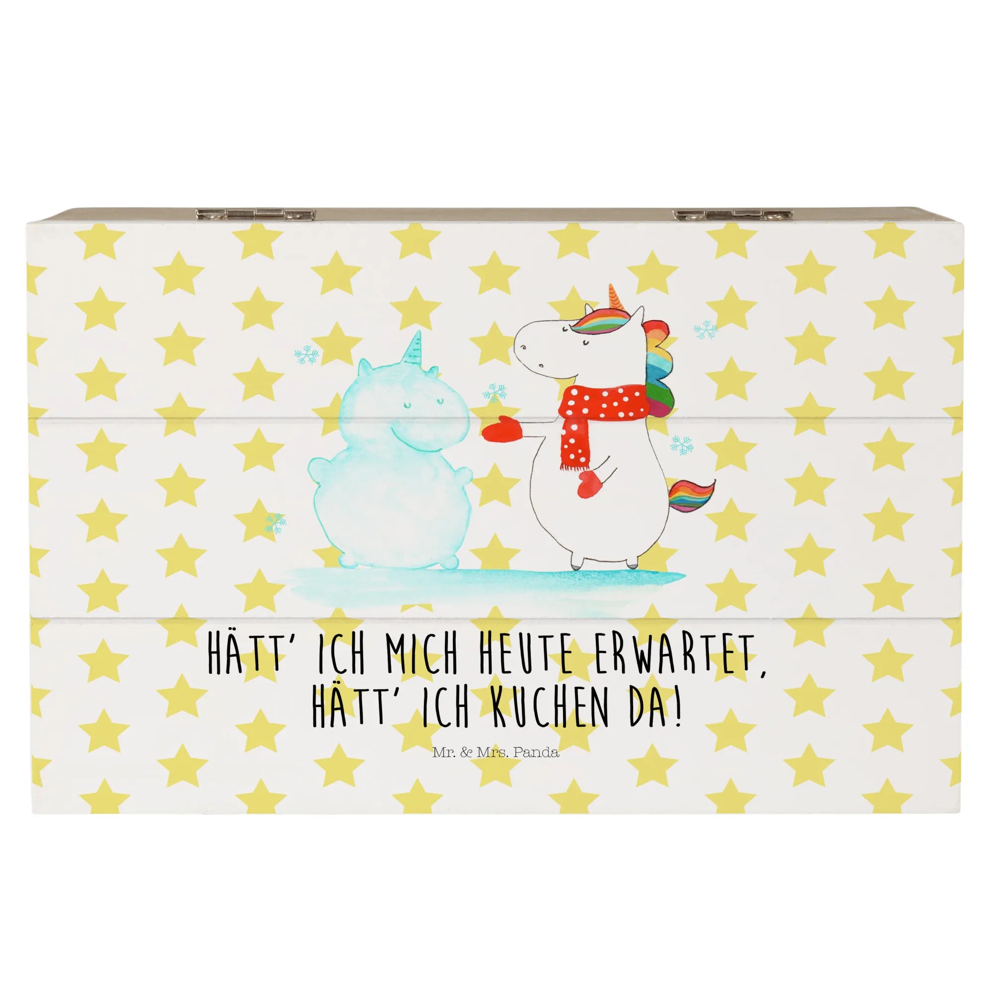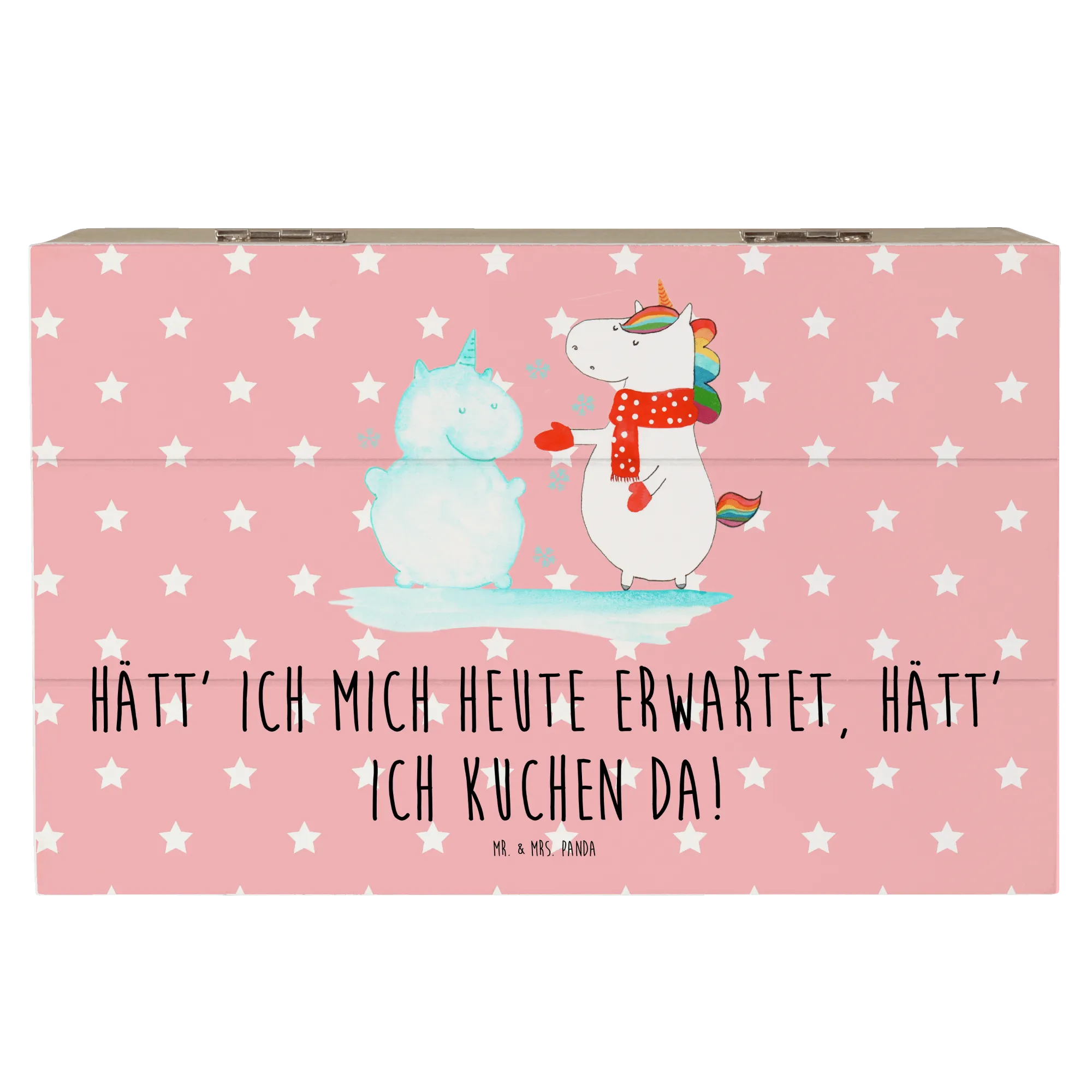 Die wunderschöne Holzkiste von Mr. & Mrs. Panda ist der perfekte Aufbewahrungsort für all deine Erinnerungen und Schätze. Sie begeistert mit ihrem einzigartigen Motiv: Einhorn Schneemann! Diese entzückende Kiste ist in der zauberhaften Einhorn - Kollektion und bringt den Zauber des Winters direkt zu dir nach Hause. Ob zur Kommunion, Konfirmation oder einfach als kreatives Geschenk – diese Kiste eignet sich für jeden Anlass. Der Spruch "Hätt‘ ich mich heute erwartet, hätt‘ ich Kuchen da!" zaubert jedem ein Lächeln ins Gesicht und macht die Kiste zu einem lieben Geschenk für Freunde und Familie.