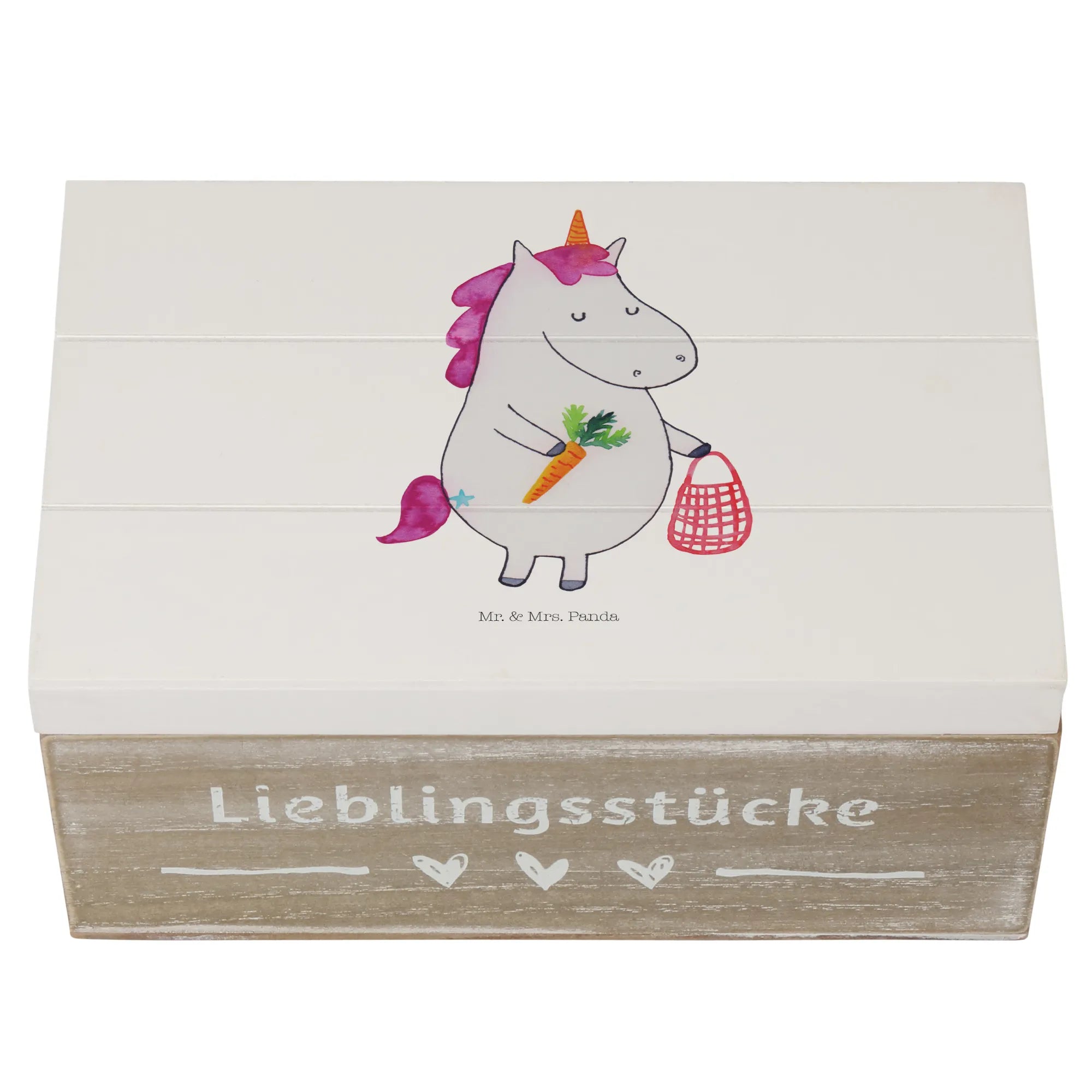 Die zauberhafte Holzkiste "Einhorn Vegan" von Mr. & Mrs. Panda ist das perfekte Geschenk für all jene, die eine Vorliebe für Einhörner und vegane Lebensweise haben. Mit einem süßen Einhorn-Motiv, das mit seiner Einkaufstasche vegane Lebensmittel kauft, wird diese Kiste zur idealen Aufbewahrung für deine ganz persönlichen Schätze.