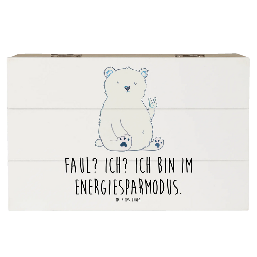 Die wunderschöne Holzkiste mit dem süßen Eisbär-Motiv 'Faul' von Mr. & Mrs. Panda ist der perfekte Aufbewahrungsort für all deine besonderen Schätze!