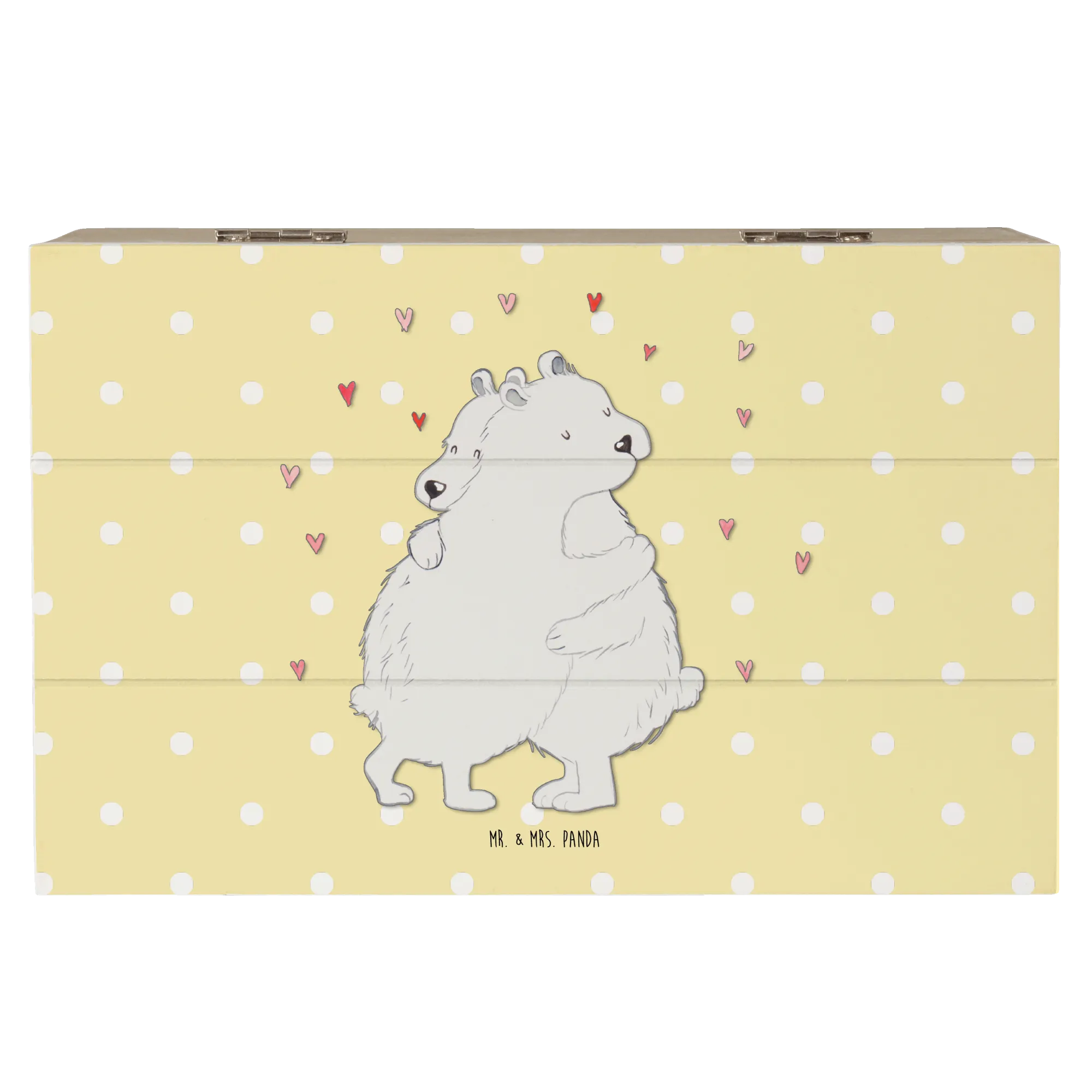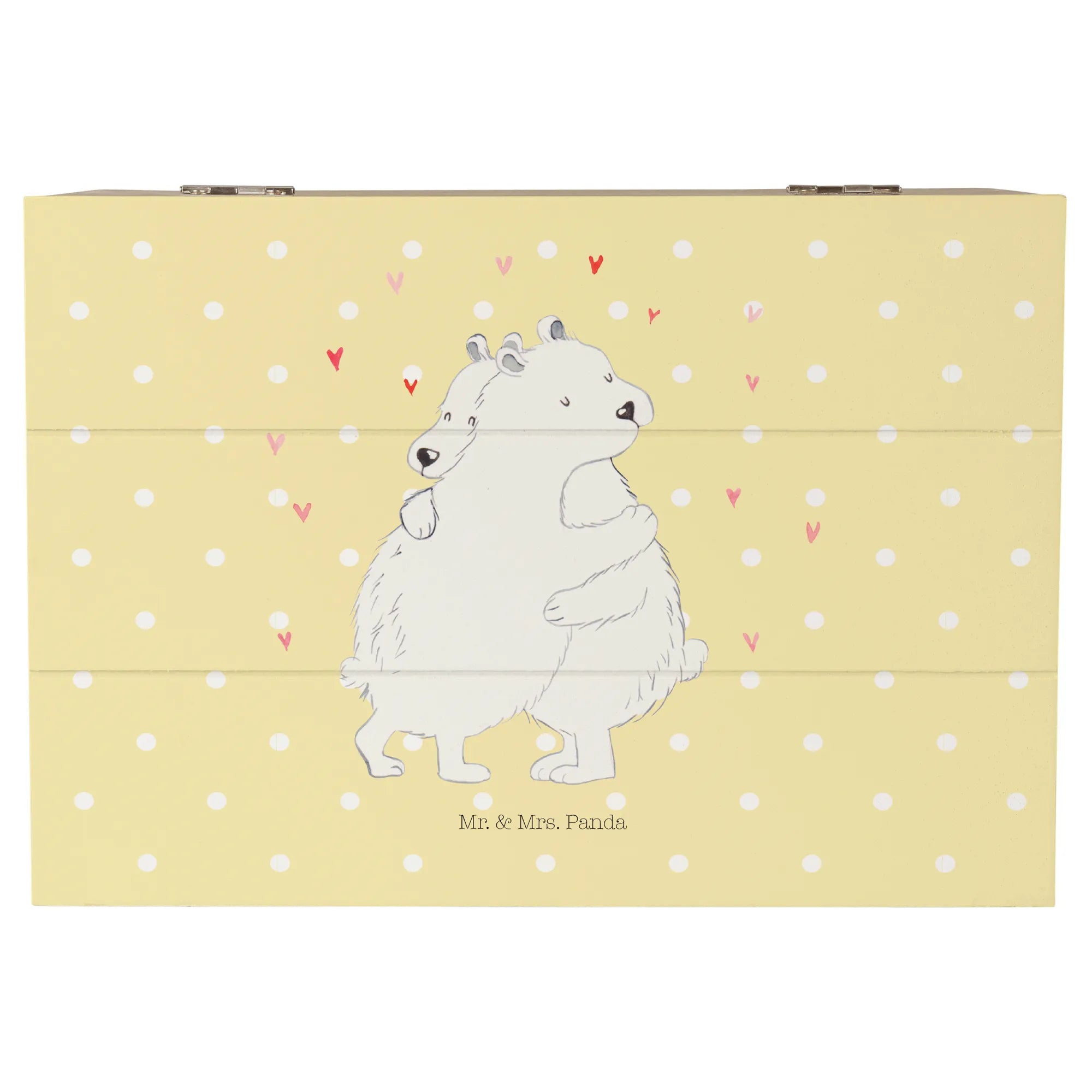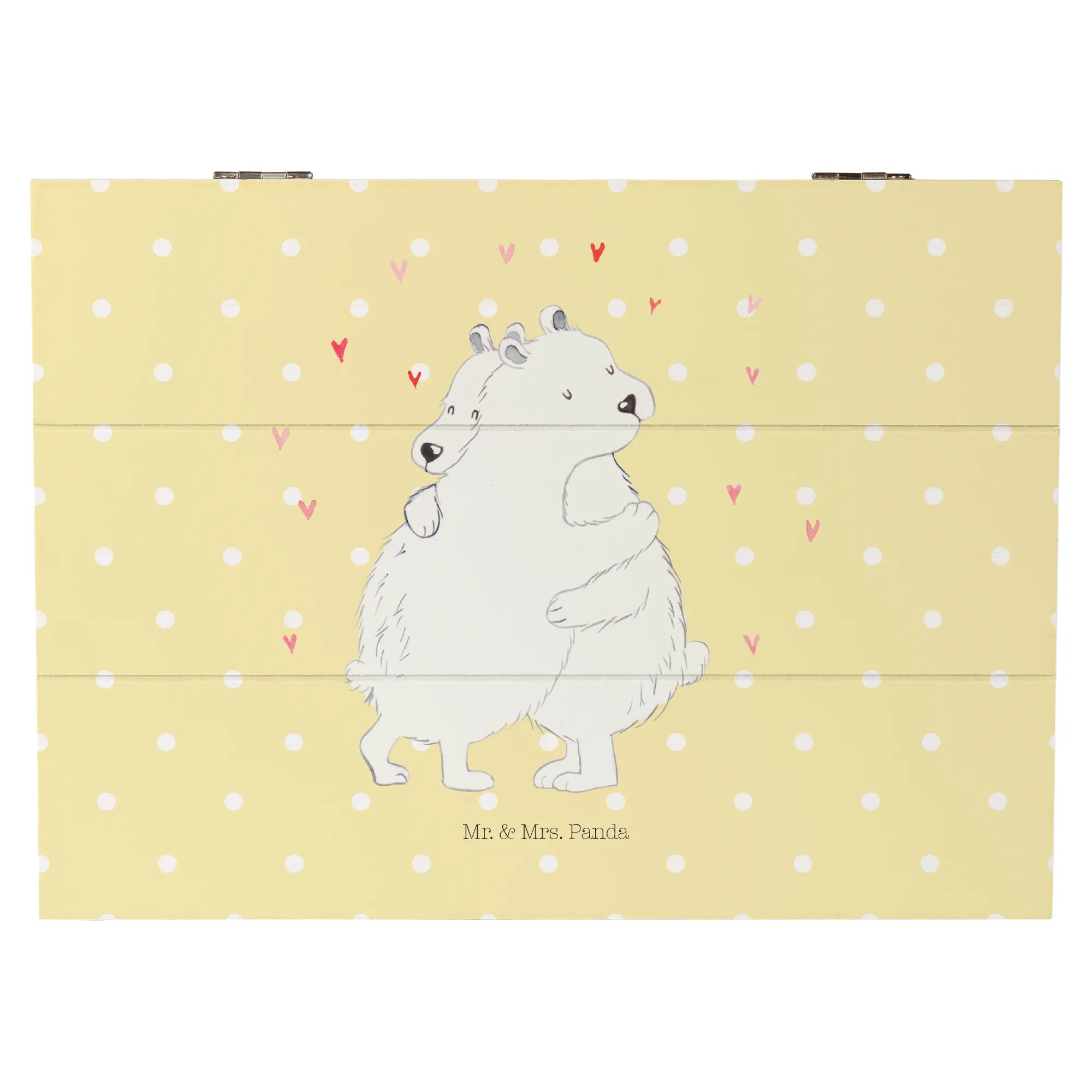 Die Holzkiste "Eisbär Umarmen" aus der kleinen Welt von Mr. & Mrs. Panda ist das perfekte Geschenk für jeden Anlass. Mit ihrem zauberhaften Motiv zweier Eisbären, die sich innig umarmen, versprüht sie eine wahre Gute-Laune-Atmosphäre. Diese wunderbare Holzkiste ist nicht nur schön anzusehen, sondern auch äußerst praktisch.