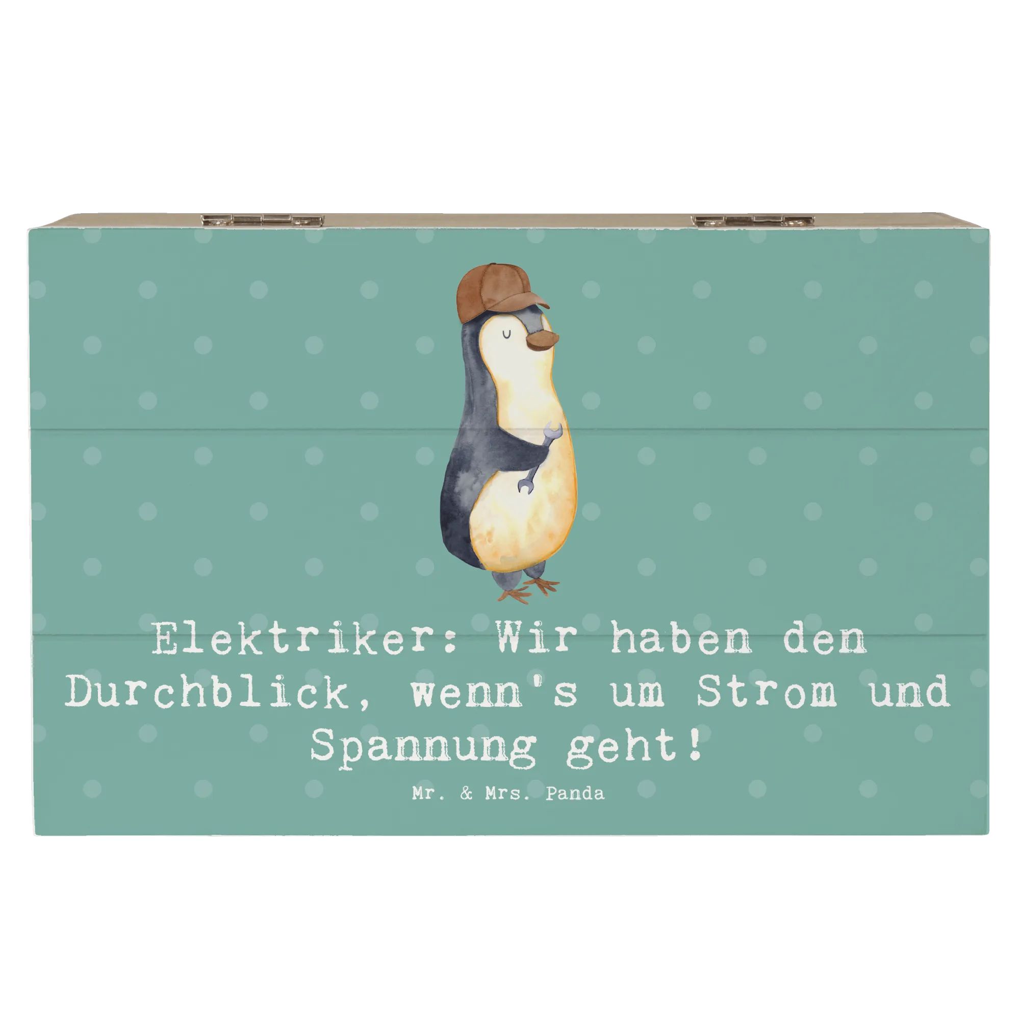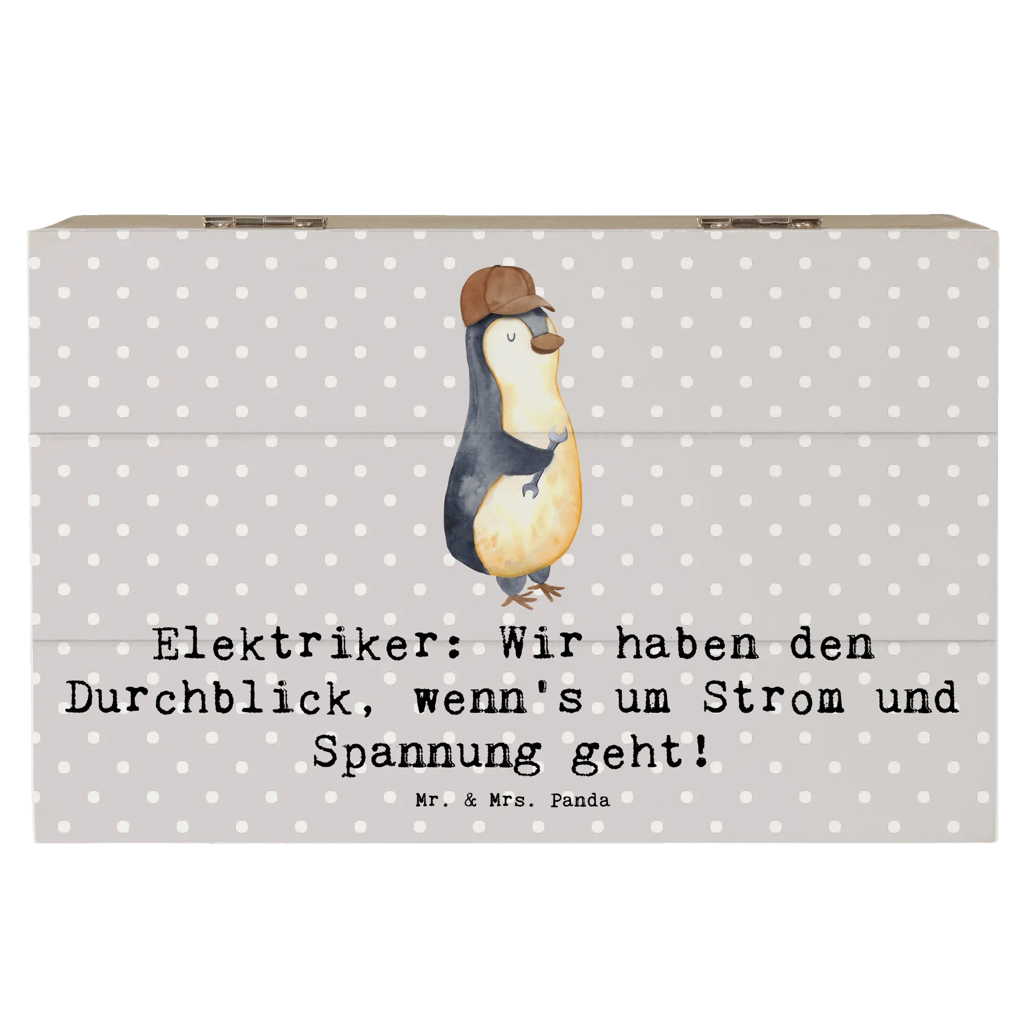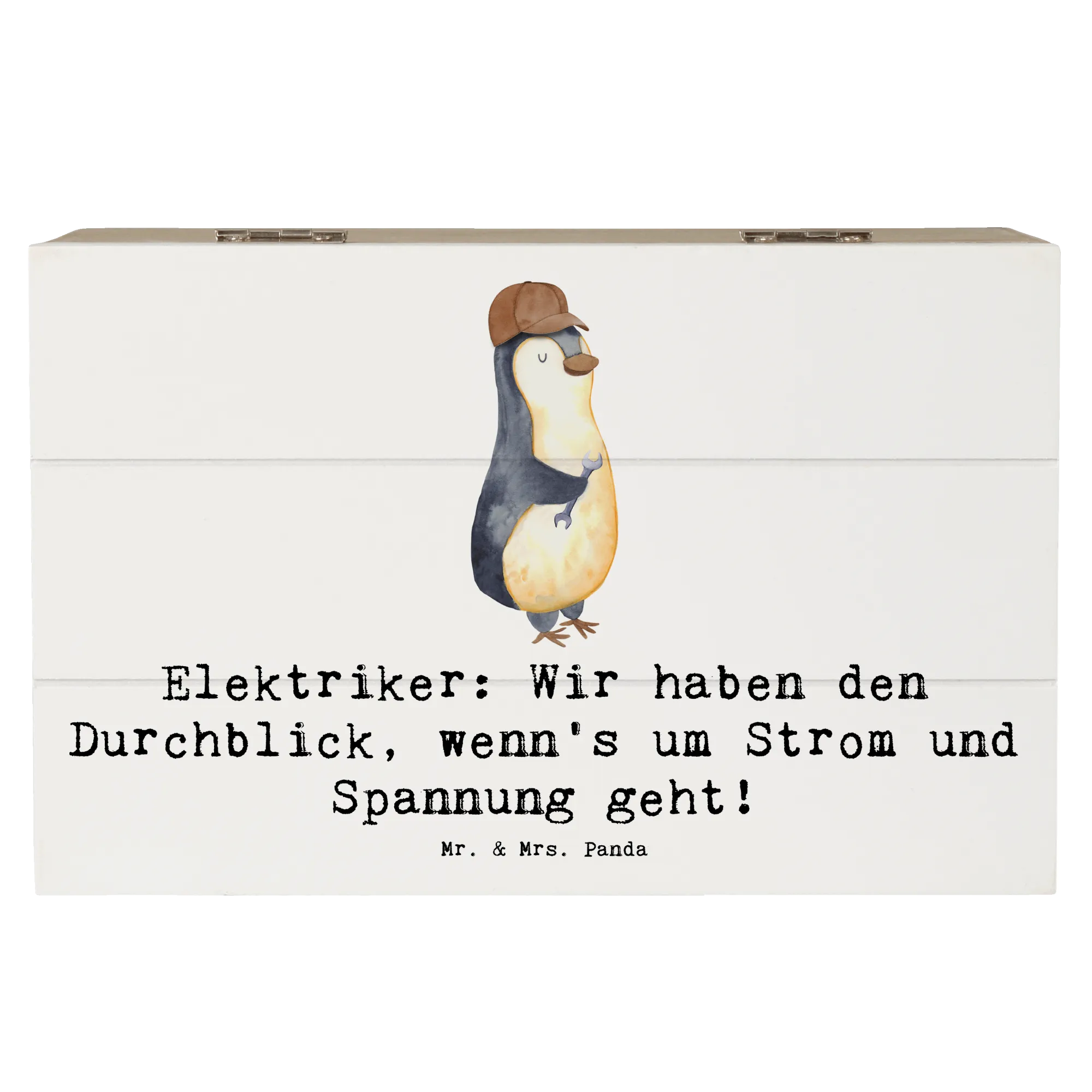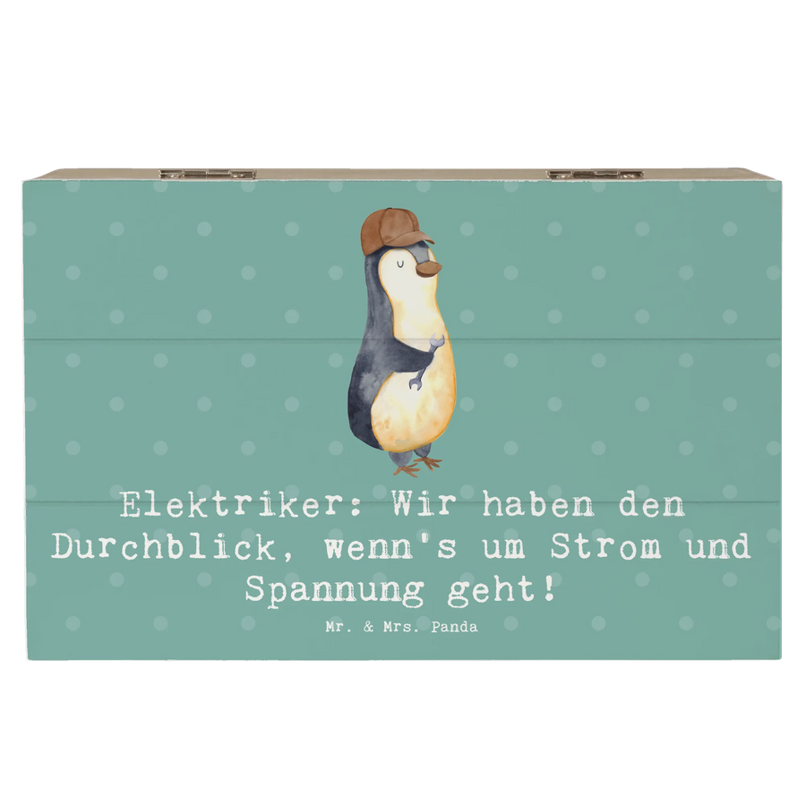 Mach jemandem eine Freude, die bleibt: Mit unserer Holzkiste Elektriker aus der Berufe-Kollektion von Mr. & Mrs. Panda schenkst Du ein kleines Kunstwerk, praktische Ordnung und ein Stück Persönlichkeit. ⚡️🎁