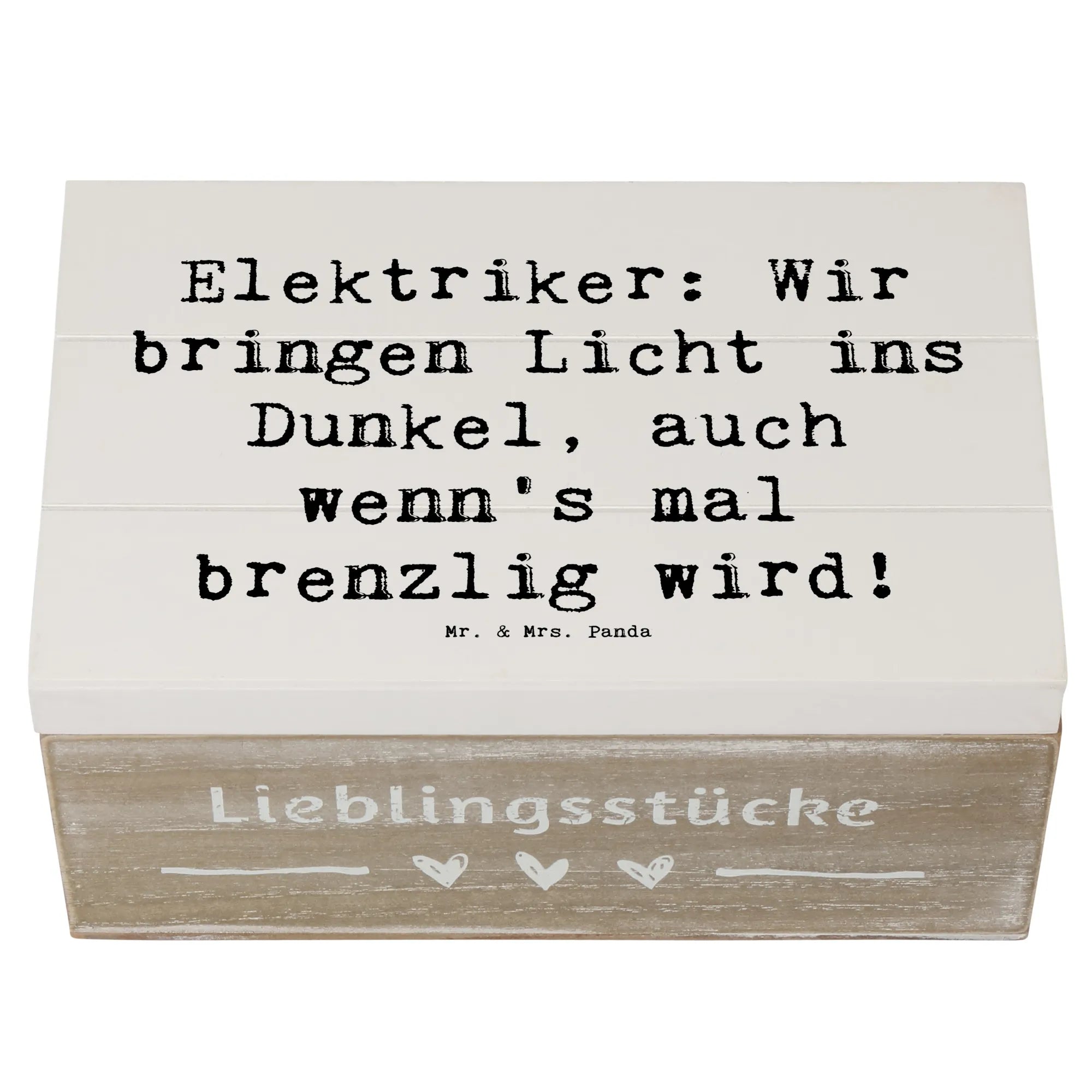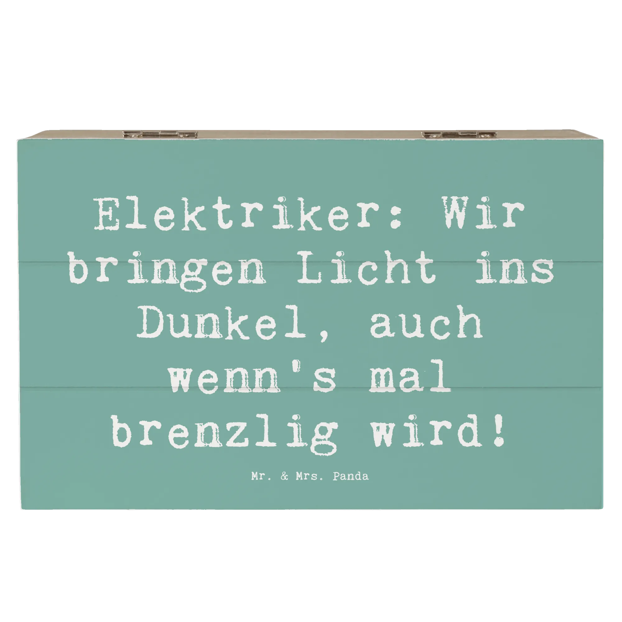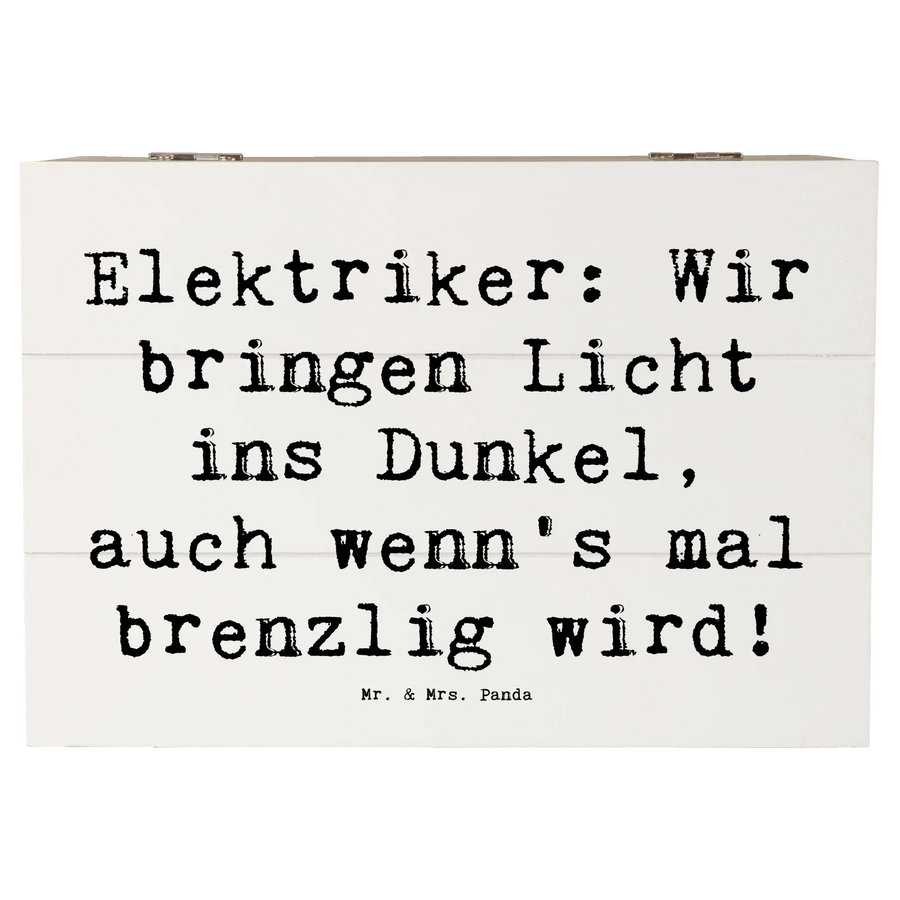Die wunderschöne Holzkiste von Mr. & Mrs. Panda ist das perfekte Geschenk für alle Elektriker und Berufspassionierte! Mit dem liebevoll gestalteten Spruch "Elektriker: Wir bringen Licht ins Dunkel, auch wenn's mal brenzlig wird!" strahlt diese Kiste nicht nur Charme, sondern auch eine Portion Humor aus.