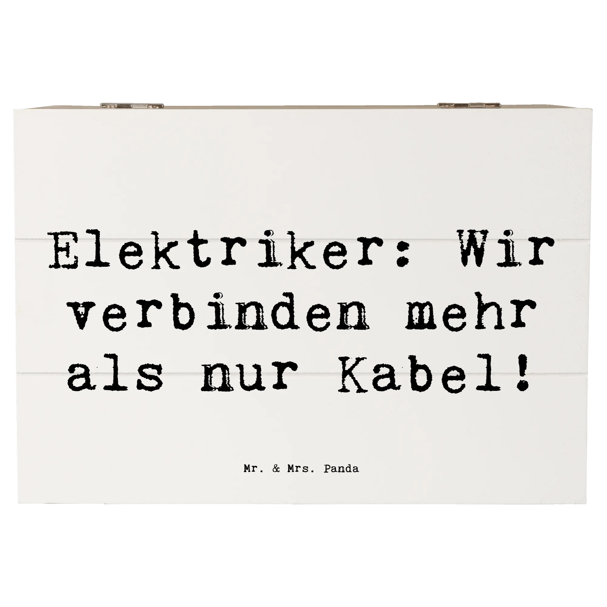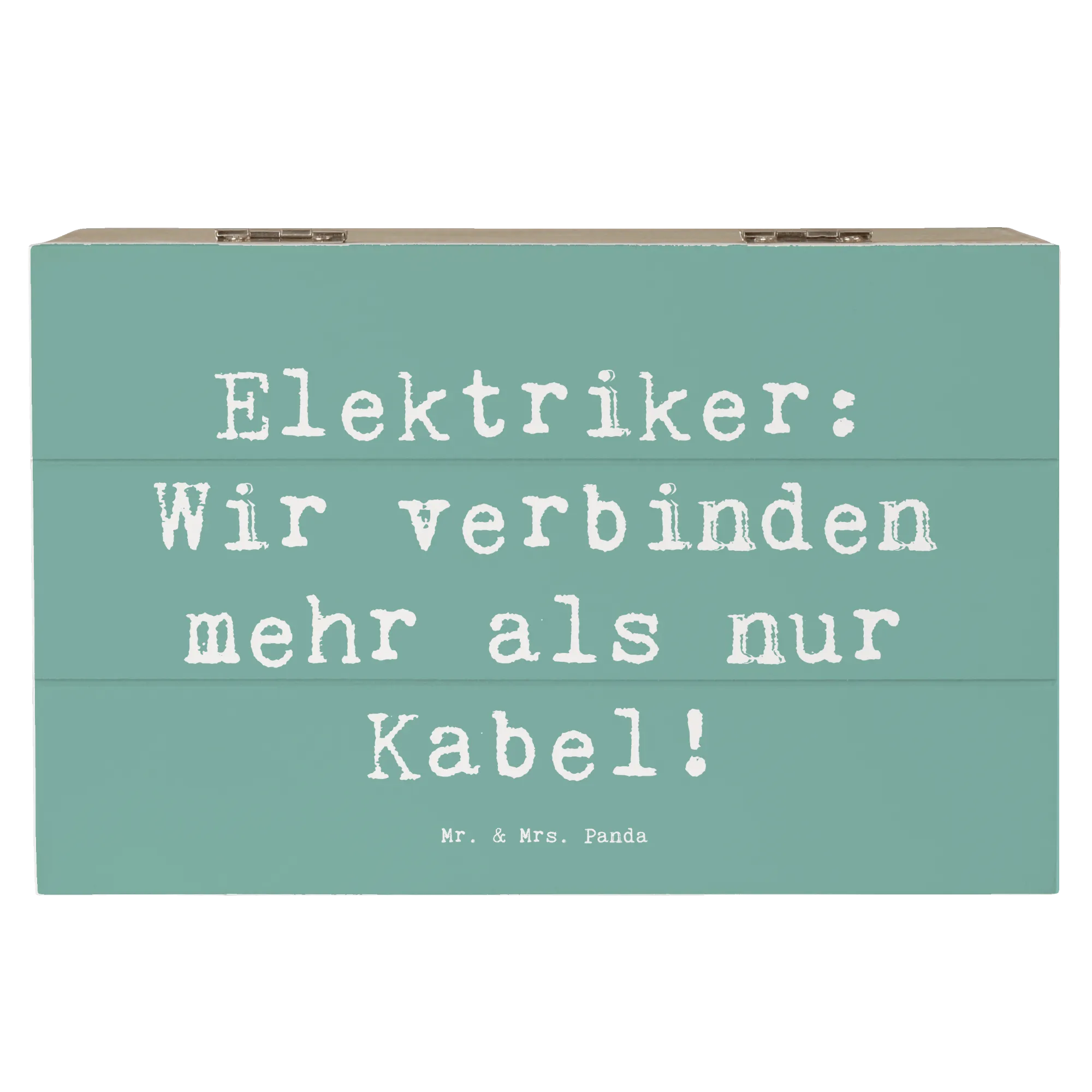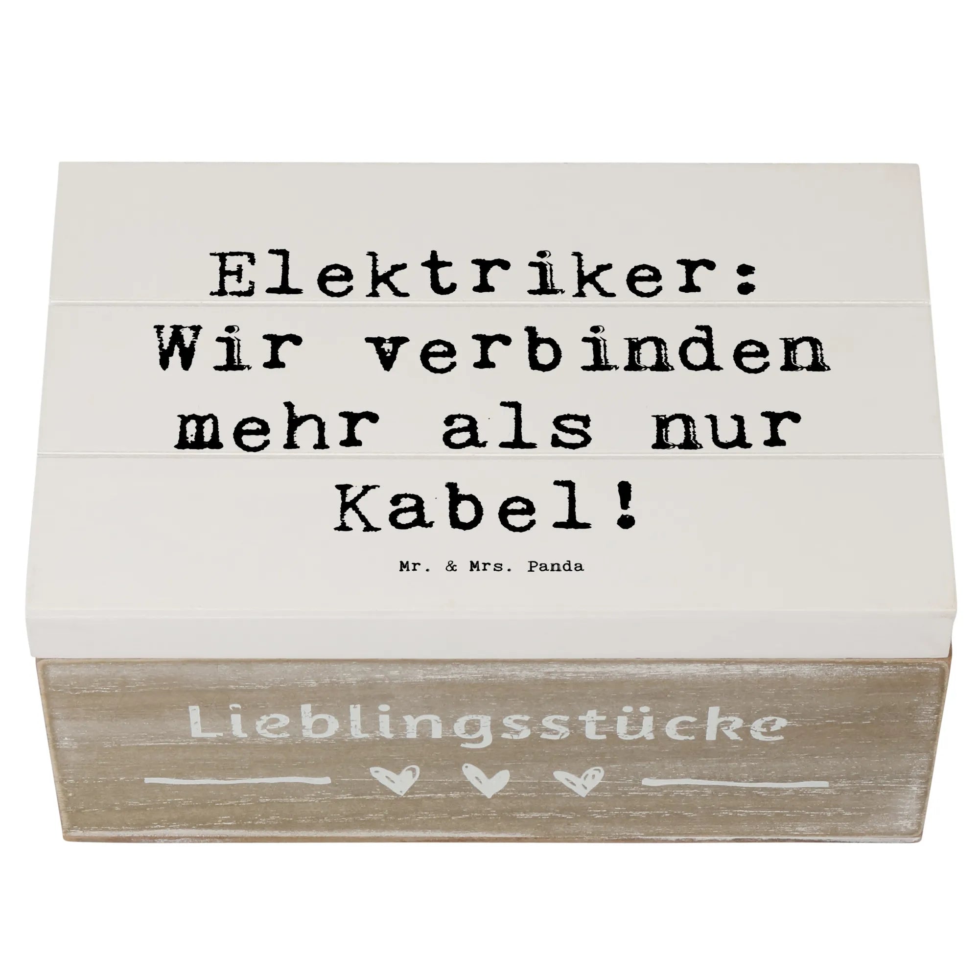 Eine liebevolle Holzkiste für Elektriker – diese Holzkiste aus der Berufe-Kollektion von Mr. & Mrs. Panda ist das perfekte Geschenk für alle, die den Beruf lieben. Auf der Vorderseite steht der charmante Spruch „Elektriker: Wir verbinden mehr als nur Kabel!“, handgezeichnet und aquarelliert von Mrs. Panda. Die Kombination aus hübschem Design und praktischem Nutzen macht diese Aufbewahrungsbox zu einem besonderen Begleiter.