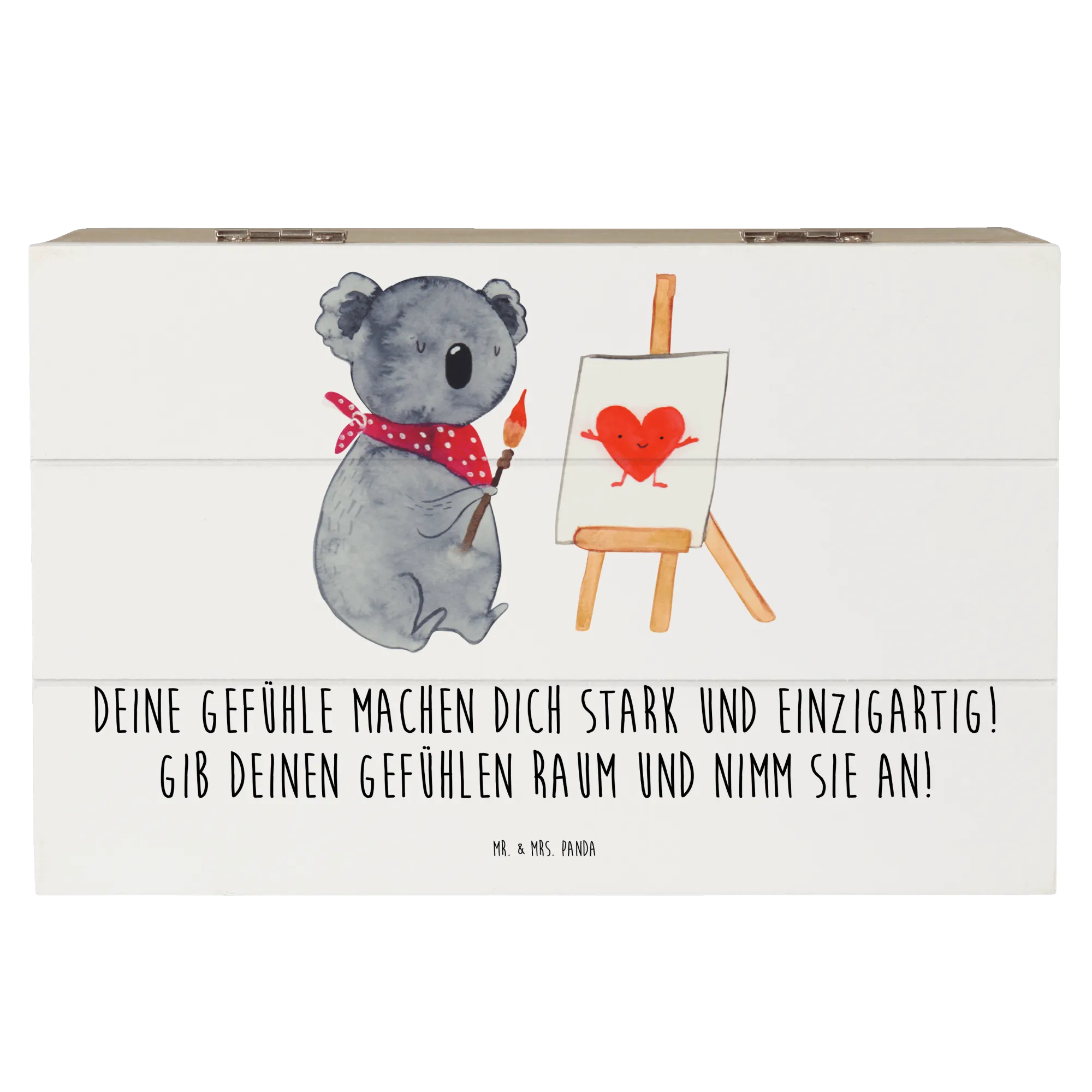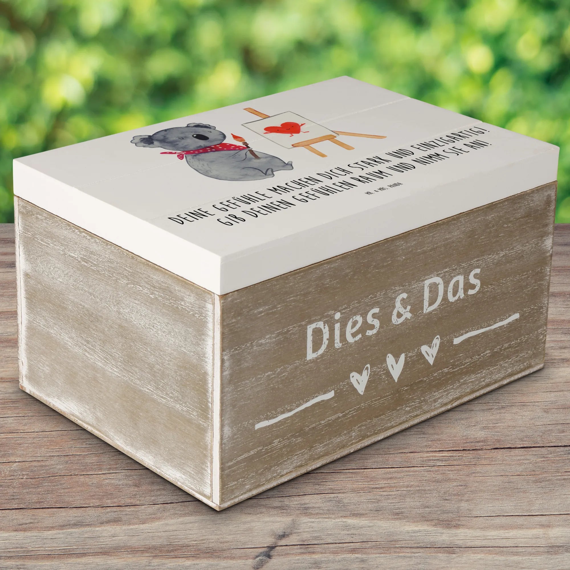 Eine wunderschöne Holzkiste von Mr. & Mrs. Panda – liebevoll gestaltet, um Erinnerungen sicher aufzubewahren und Mut zu schenken. Die Holzkiste „Emotionen ausdrücken“ aus der Mutmacher-Kollektion trägt den Slogan: