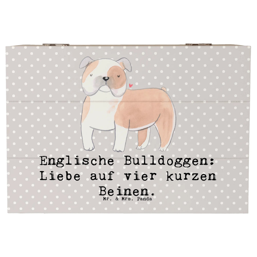 Holzkiste Englische Bulldogge Liebe - 22 x 15 cm - Grau Pastell