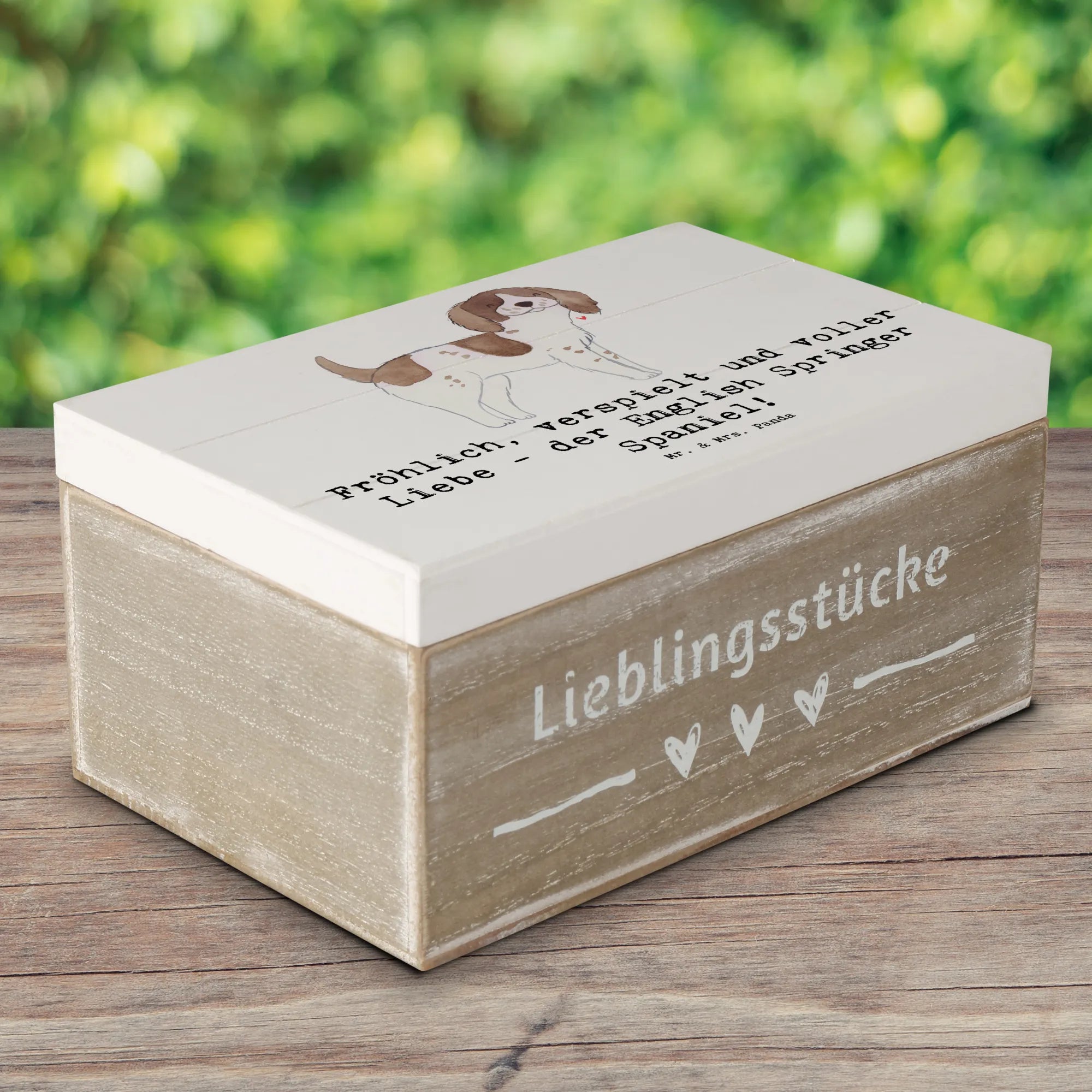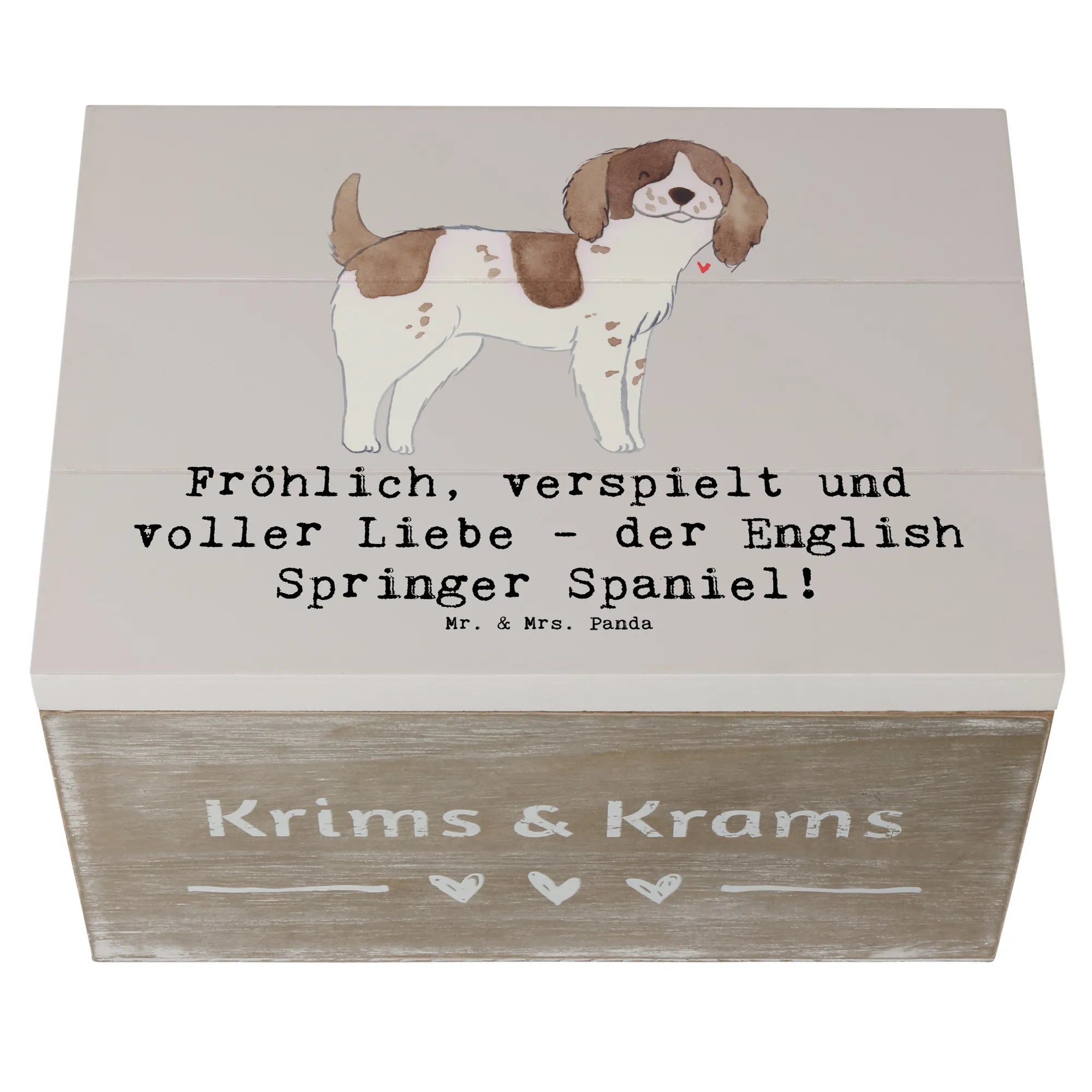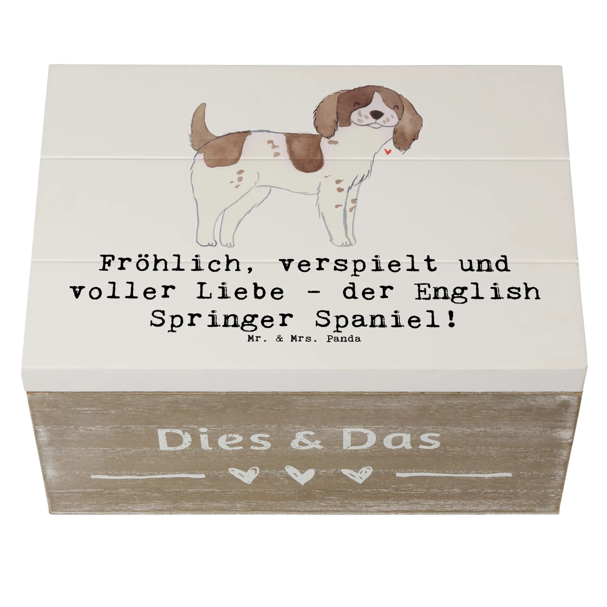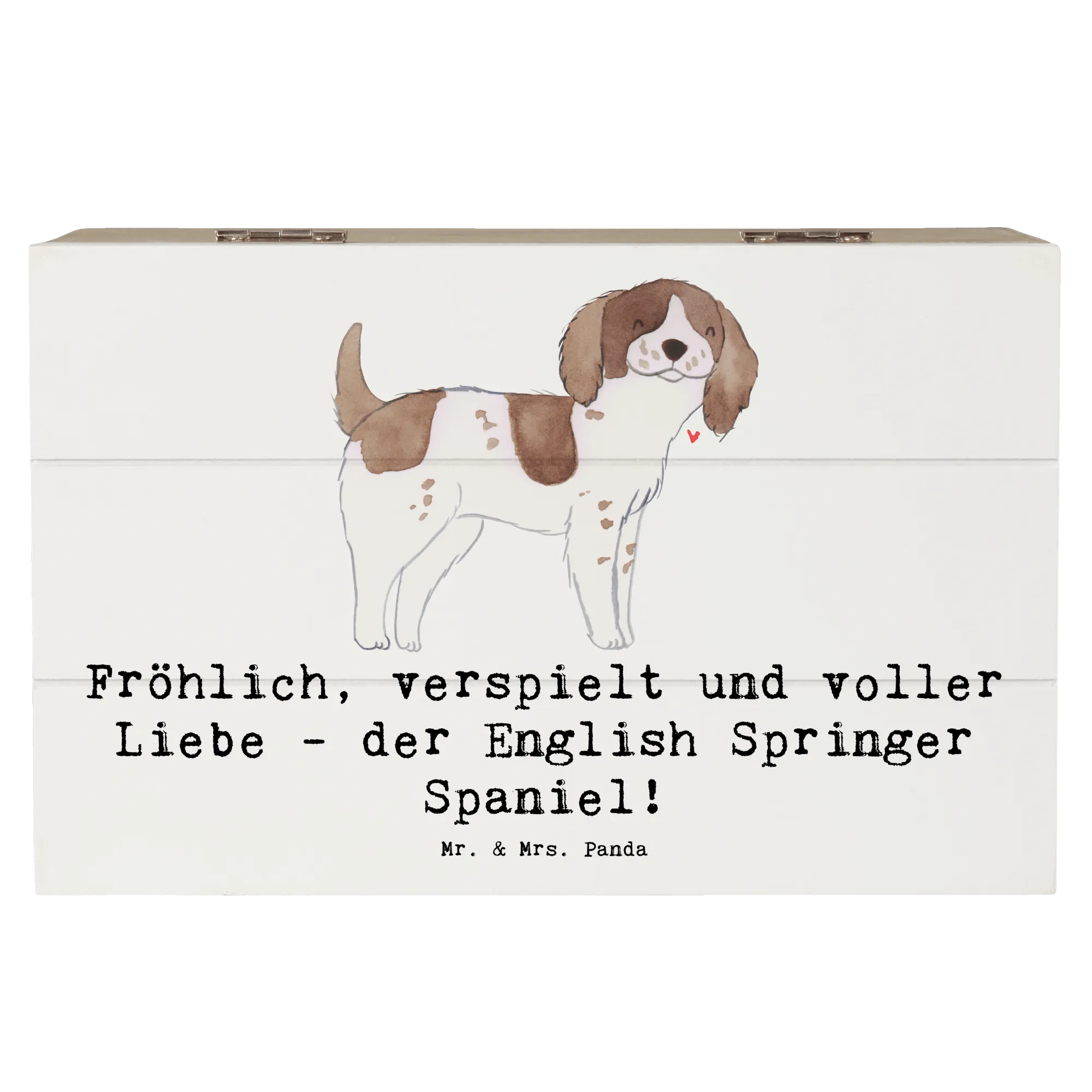 Ob als Aufbewahrungsort für Erinnerungen an deine geliebten Vierbeiner, Fotos oder schöne Andenken – diese Kiste ist genau das richtige für jeden Anlass. Der fröhliche Spruch „Fröhlich, verspielt und voller Liebe - der English Springer Spaniel!“ macht die Kiste zu einem Highlight in jedem Zuhause.