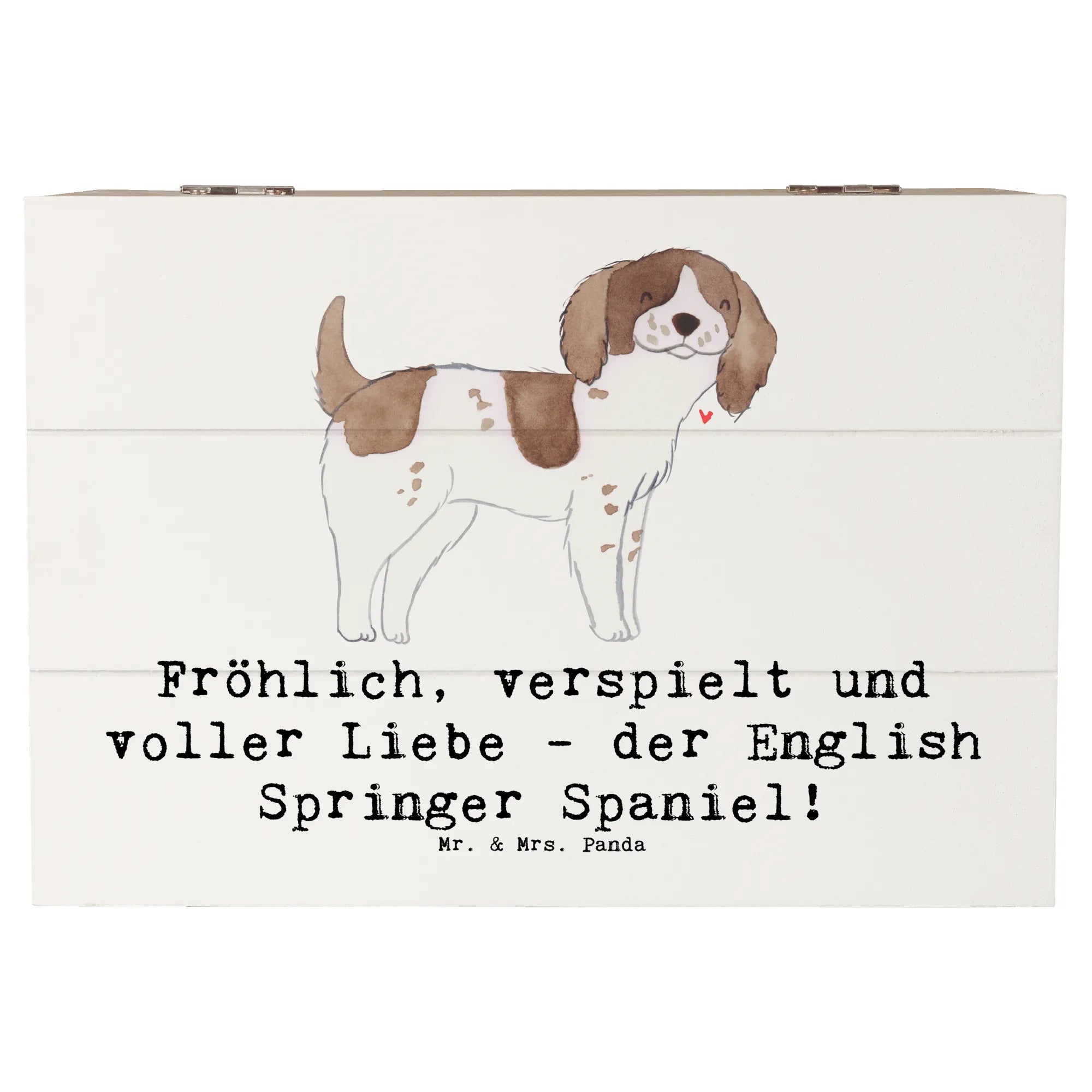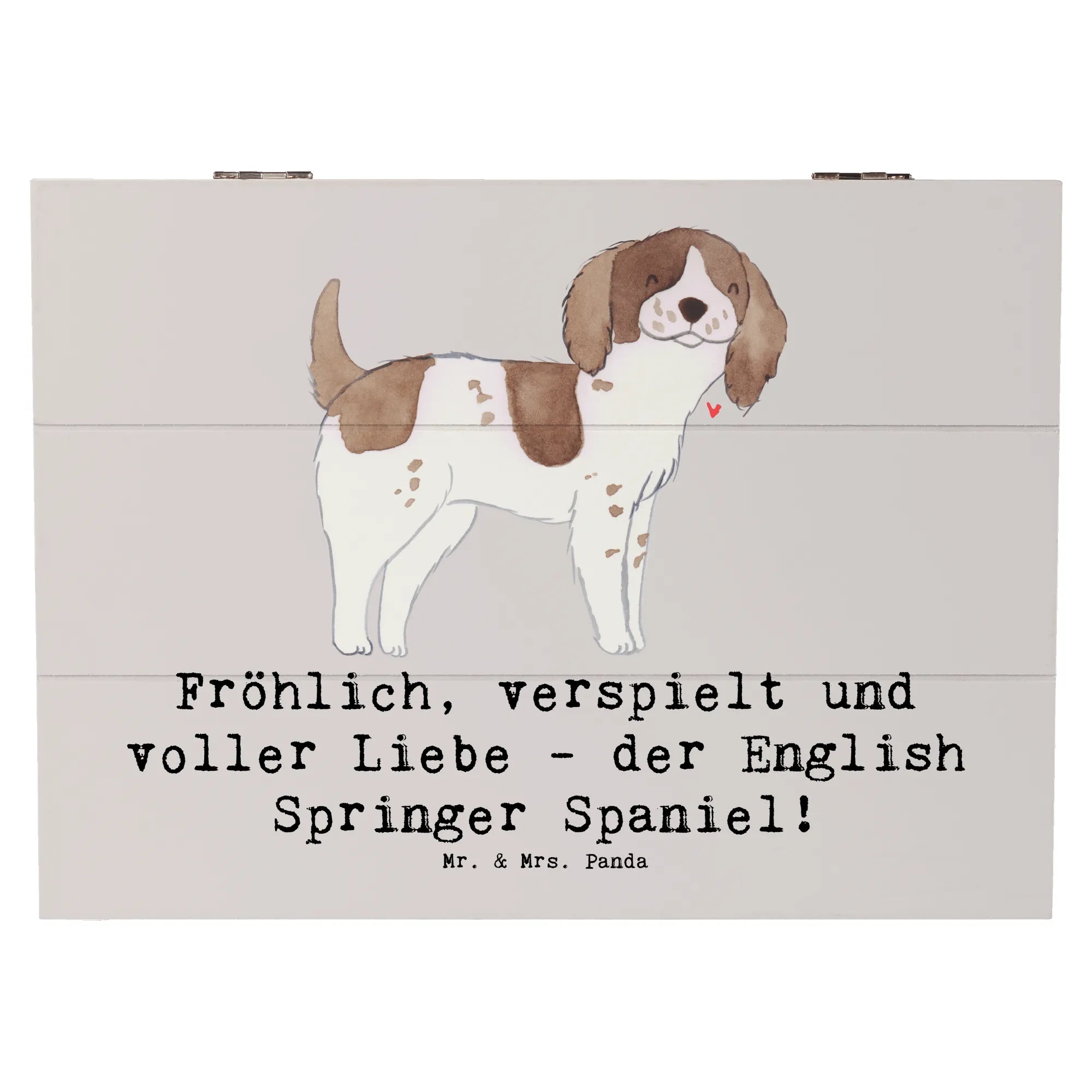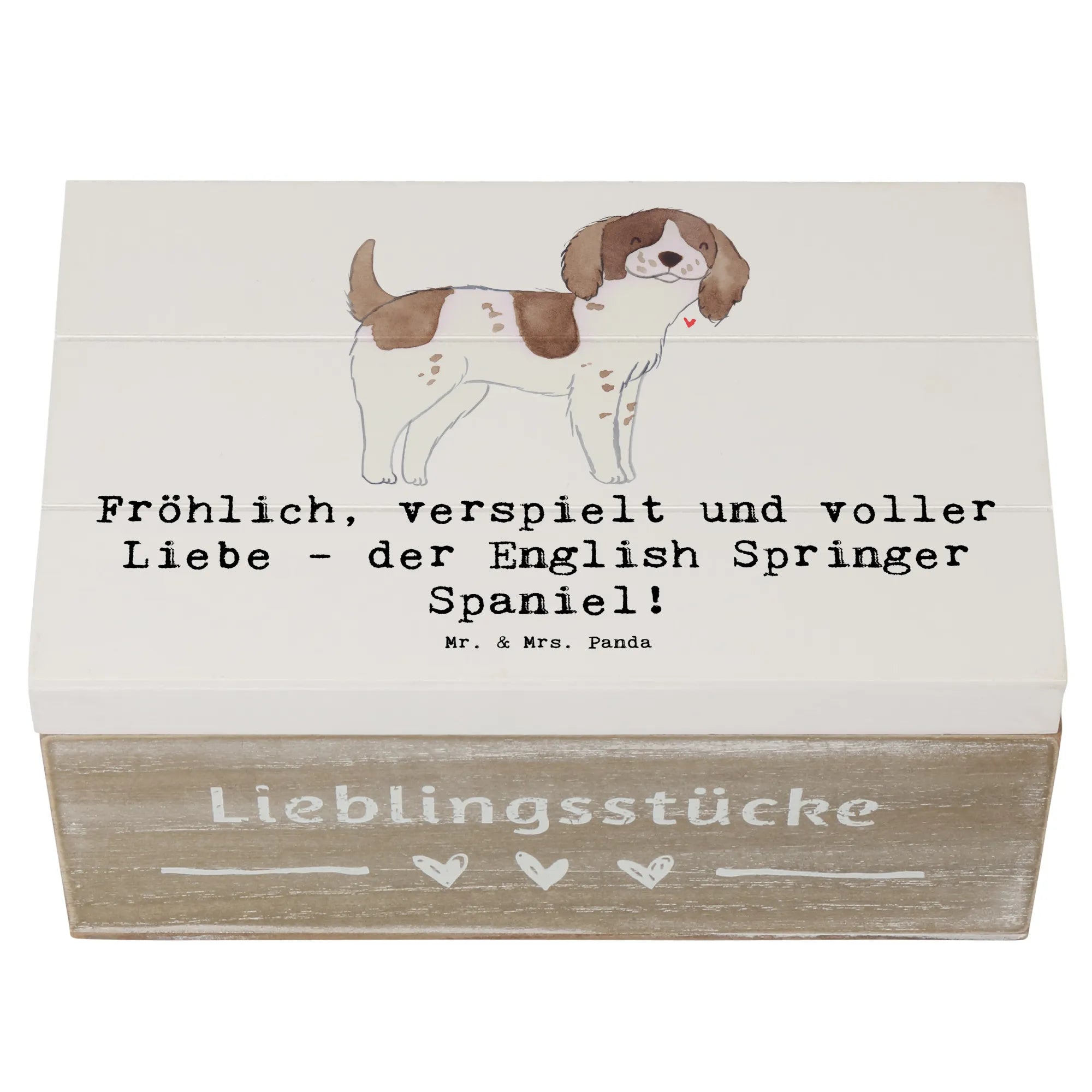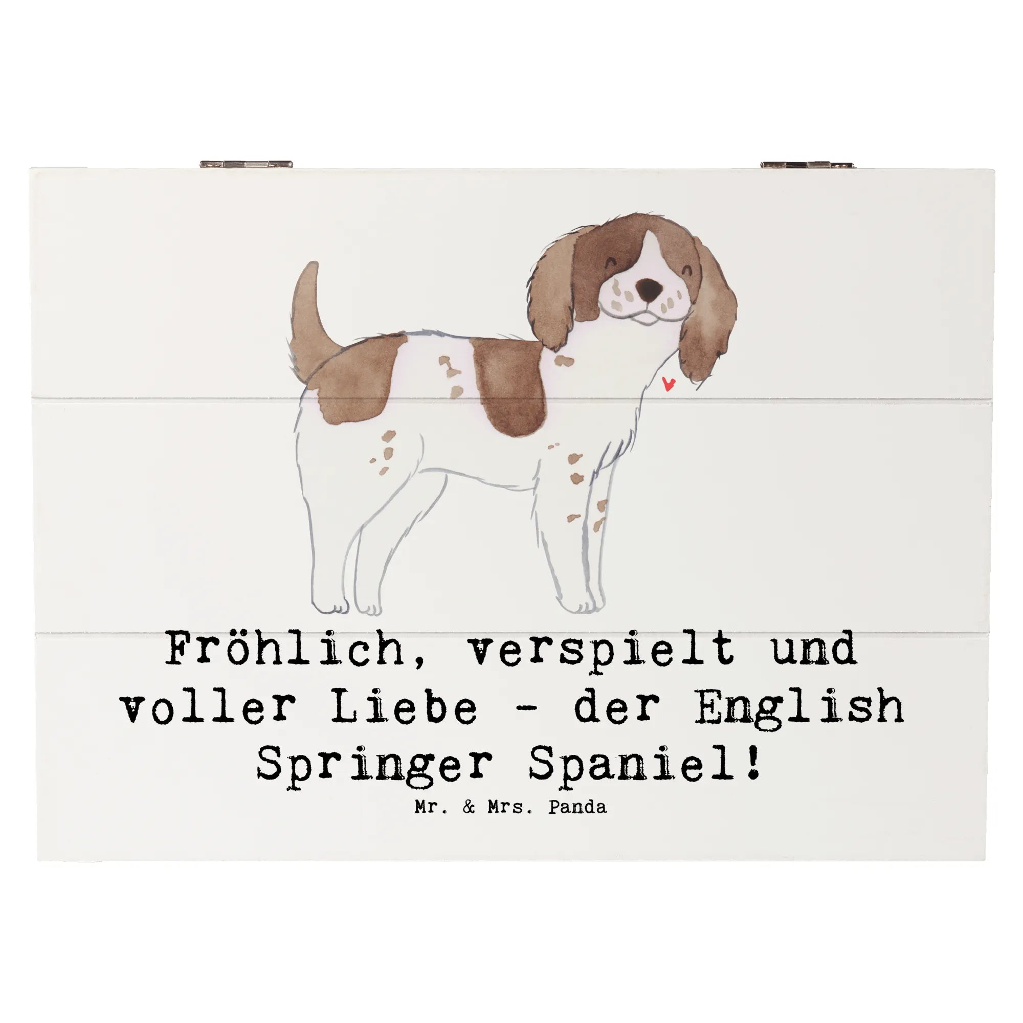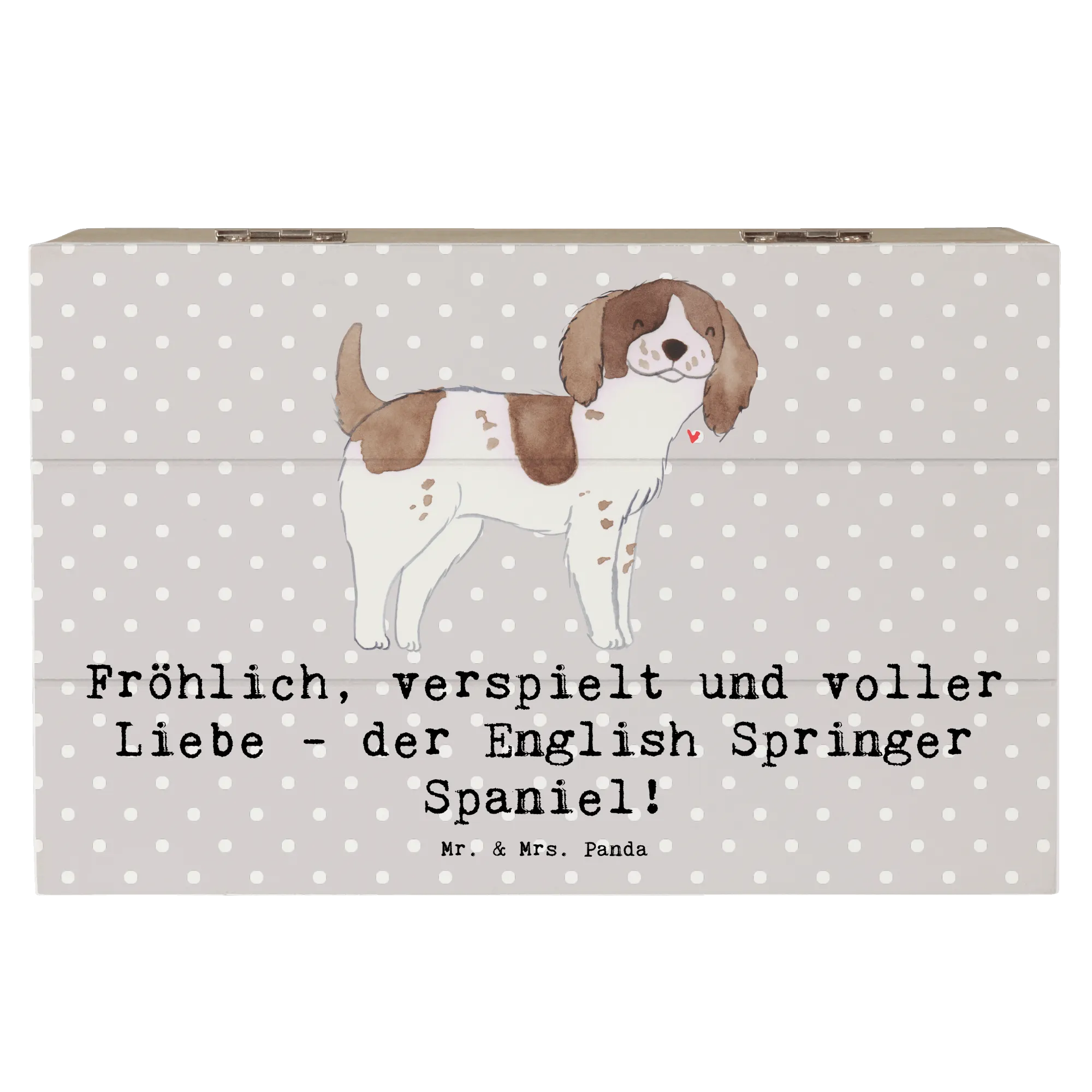 Ob als Aufbewahrungsort für Erinnerungen an deine geliebten Vierbeiner, Fotos oder schöne Andenken – diese Kiste ist genau das richtige für jeden Anlass. Der fröhliche Spruch „Fröhlich, verspielt und voller Liebe - der English Springer Spaniel!“ macht die Kiste zu einem Highlight in jedem Zuhause.