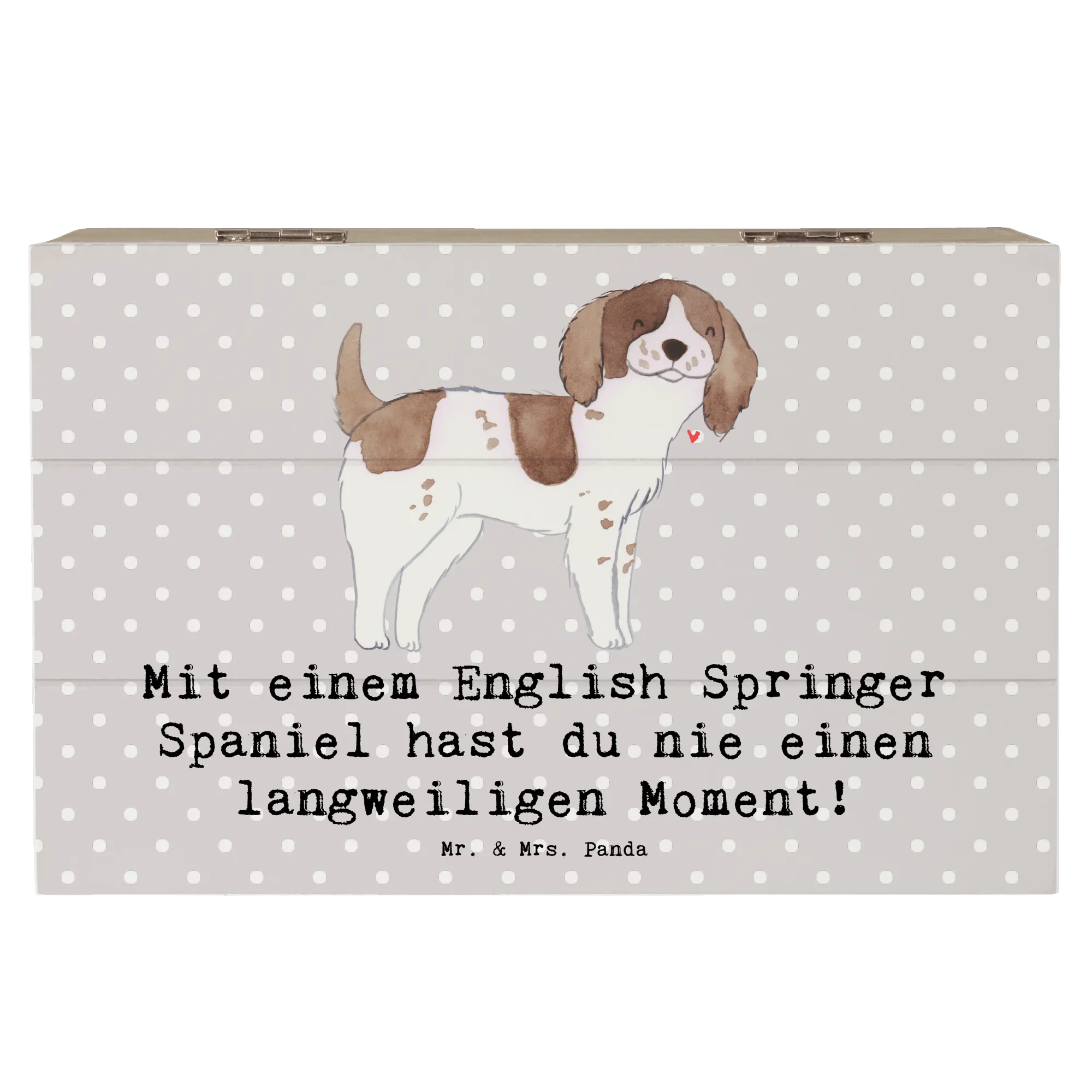 Holzkiste English Springer Spaniel Spaß - 22 x 15 cm - Grau Pastell