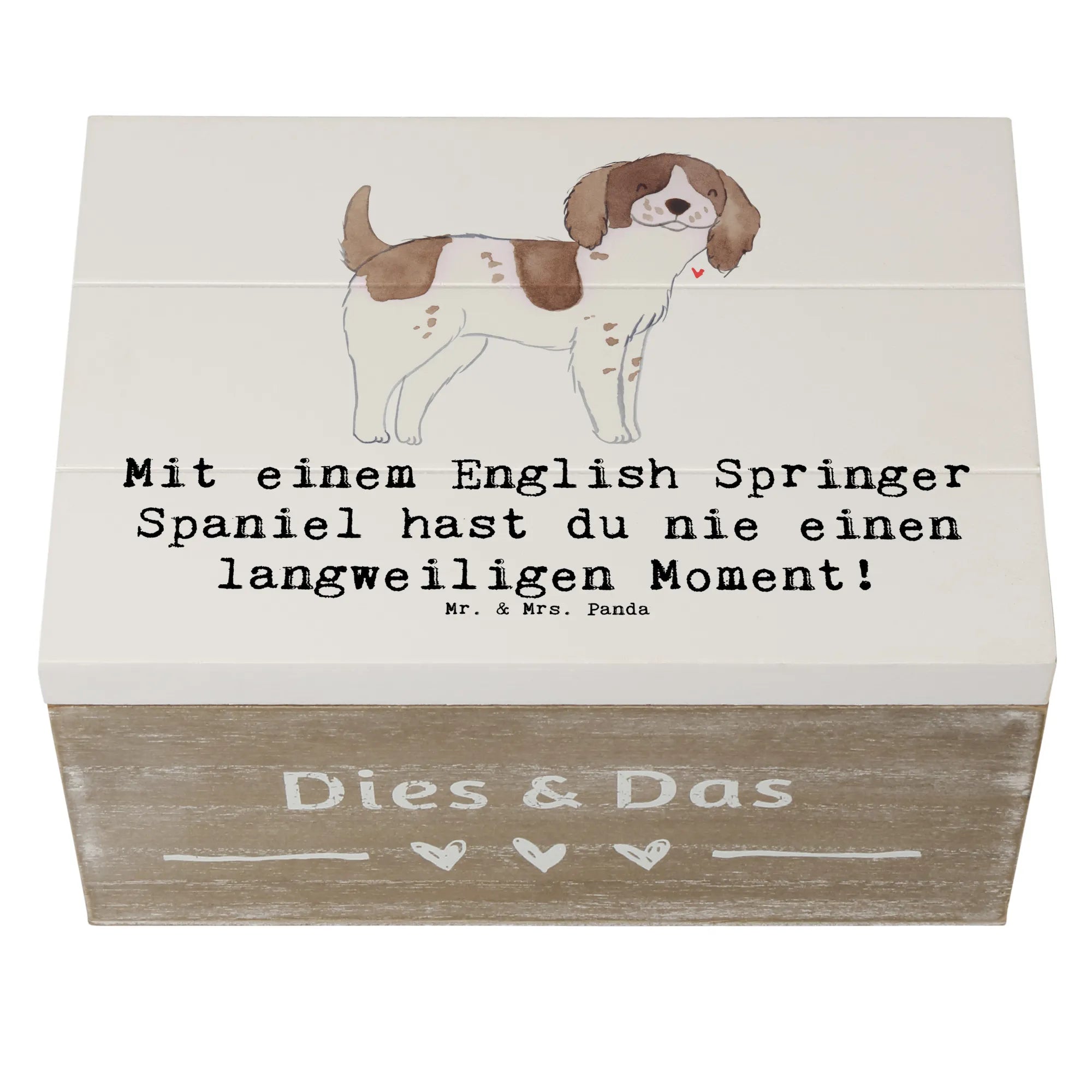 Die wunderschöne Holzkiste von Mr. & Mrs. Panda mit dem charmanten Motiv des English Springer Spaniels ist der perfekte Aufbewahrungsort für all deine Schätze!
