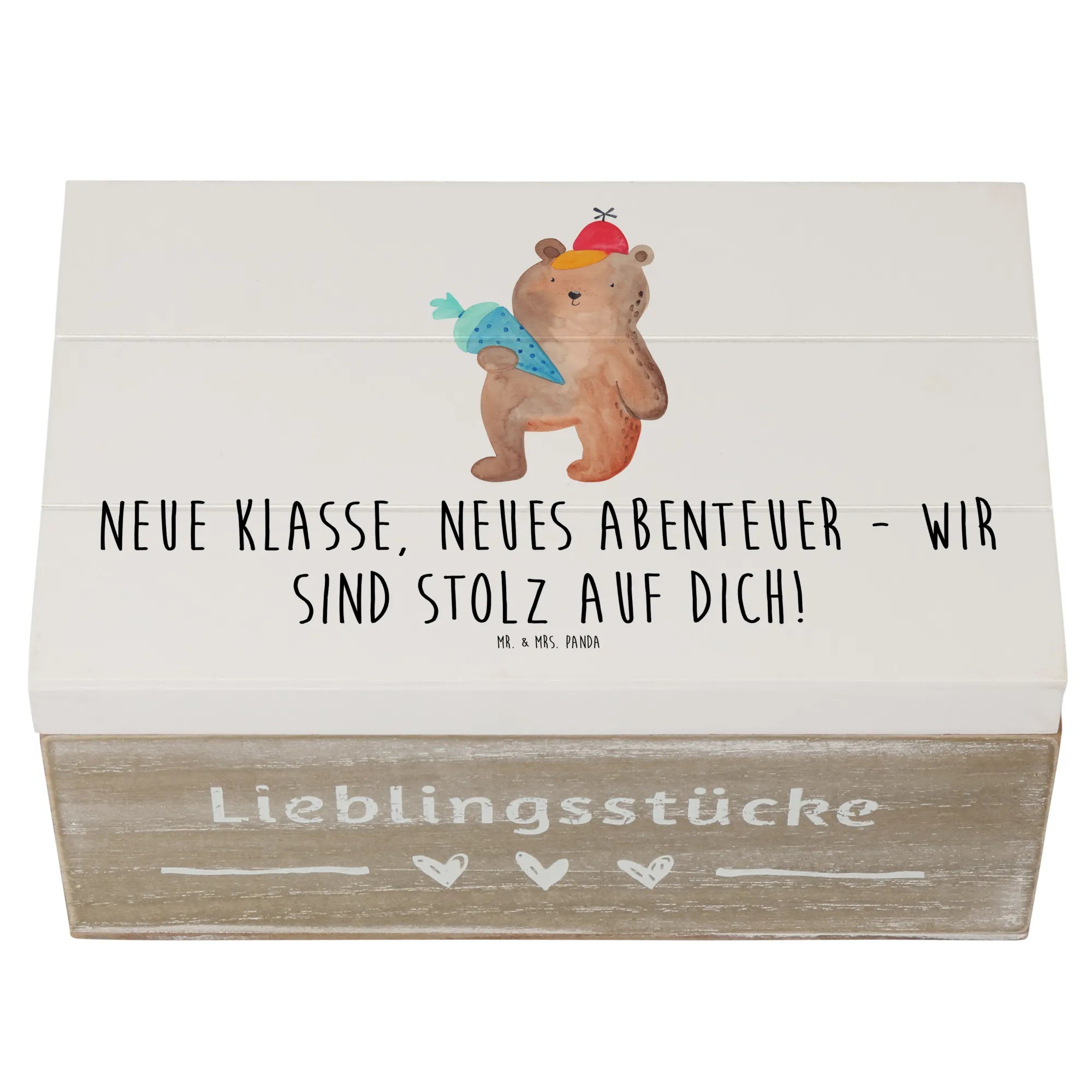 Die Holzkiste 'Erster Schultag in einer neuen Klasse' von Mr. & Mrs. Panda ist das perfekte Geschenk für den großen Tag deines kleinen Abenteurers. Mit einem liebevollen Motiv und dem Mutmacher-Slogan 'Neue Klasse, neues Abenteuer - wir sind stolz auf dich!' ist diese Kiste nicht nur ein schöner Blickfang, sondern auch ein wertvoller Begleiter für das, was noch kommt. Egal, ob zum Schulanfang, zur Einschulung oder als kleine Aufmerksamkeit für einen besonderen Anlass – diese Holzkiste ist genau das Richtige, um natürlich schöne Erinnerungen zu bewahren.