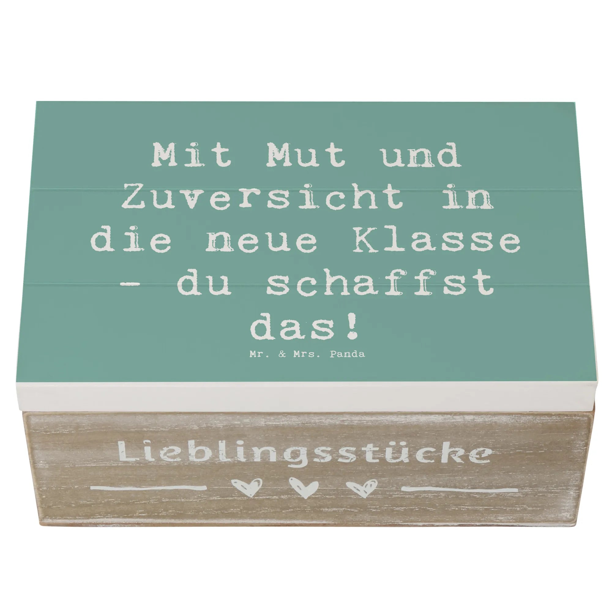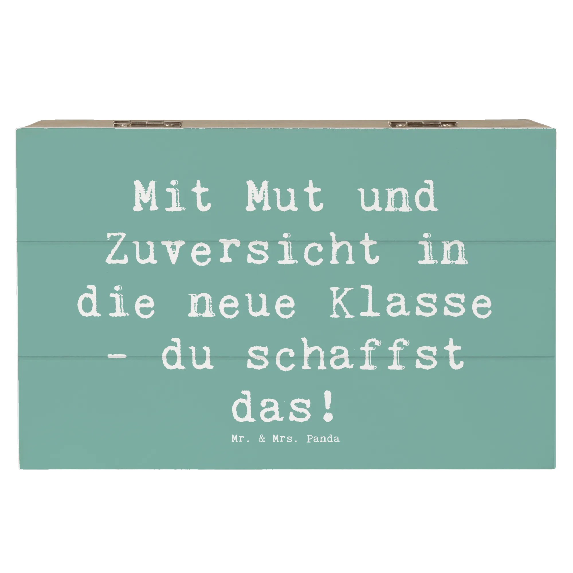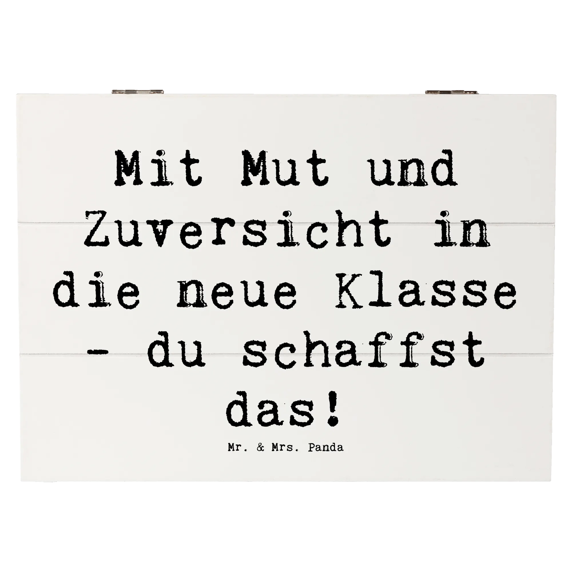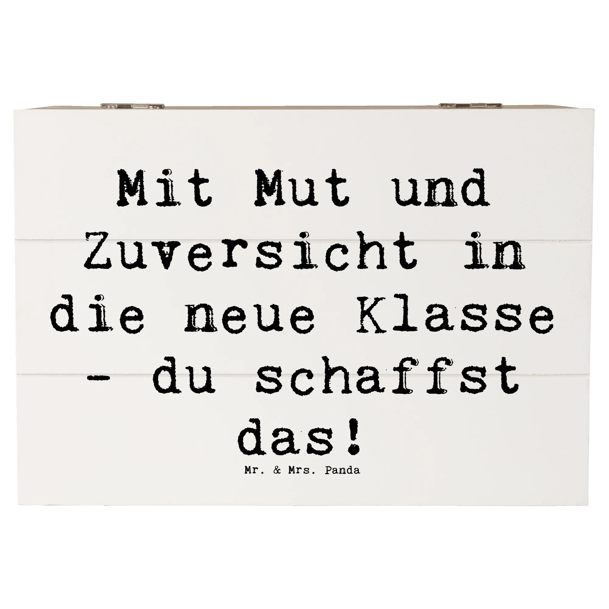 Die wunderschöne Holzkiste von Mr. & Mrs. Panda ist nicht nur ein praktischer Aufbewahrungsort für all die kostbaren Erinnerungen, sondern auch eine ganz besondere Geschenkidee für den ersten Schultag! Mit dem liebevollen Motiv „Mit Mut und Zuversicht in die neue Klasse - du schaffst das!“ wird diese Kiste zu einem treuen Begleiter für Dein Kind in dieser aufregenden Zeit. Sie ist eine wahre Erinnerungskiste, perfekt geeignet für die ersten Schulstunden, Zeichnungen, besondere kleine Schätze und viele andere wunderbare Dinge, die das Herz erfreuen.