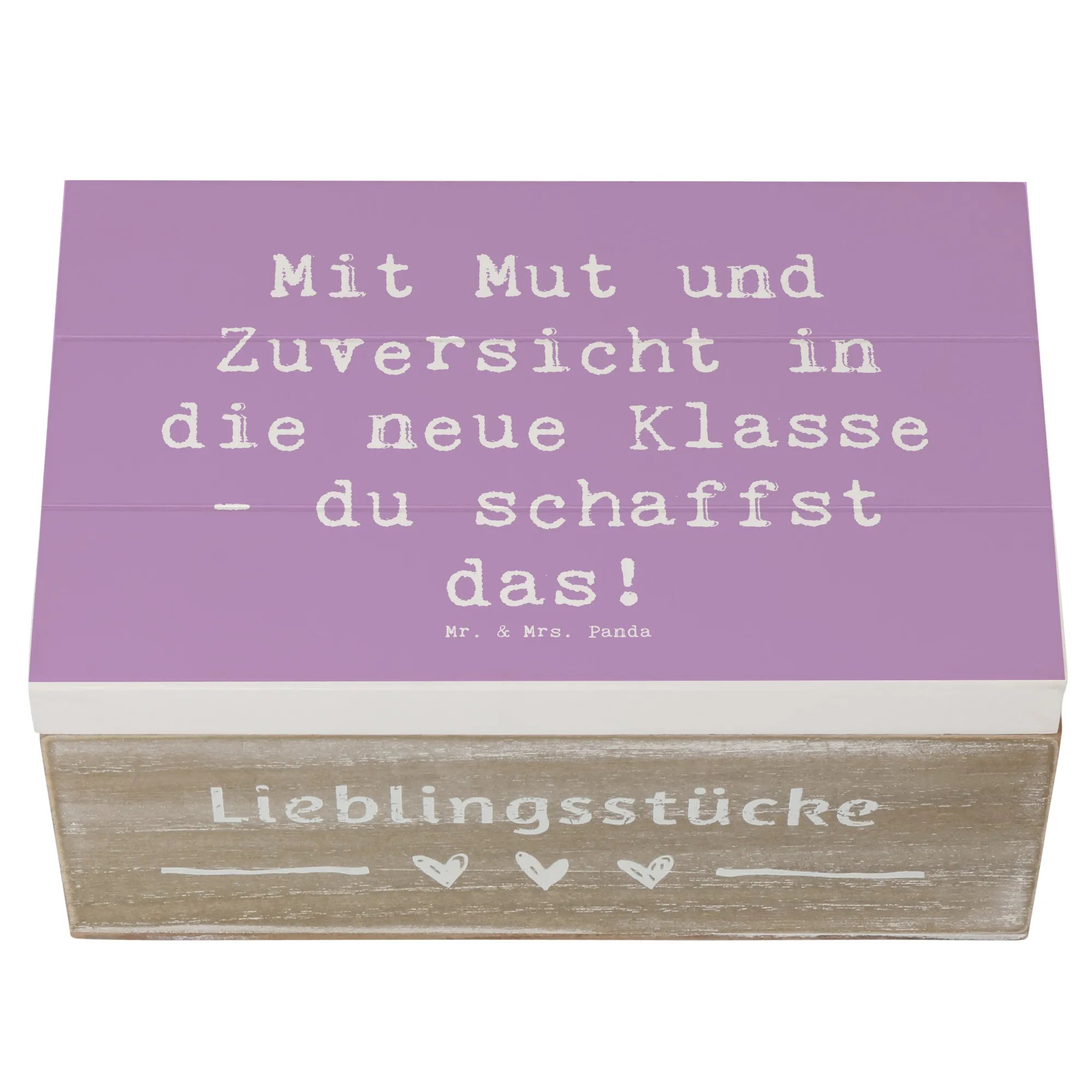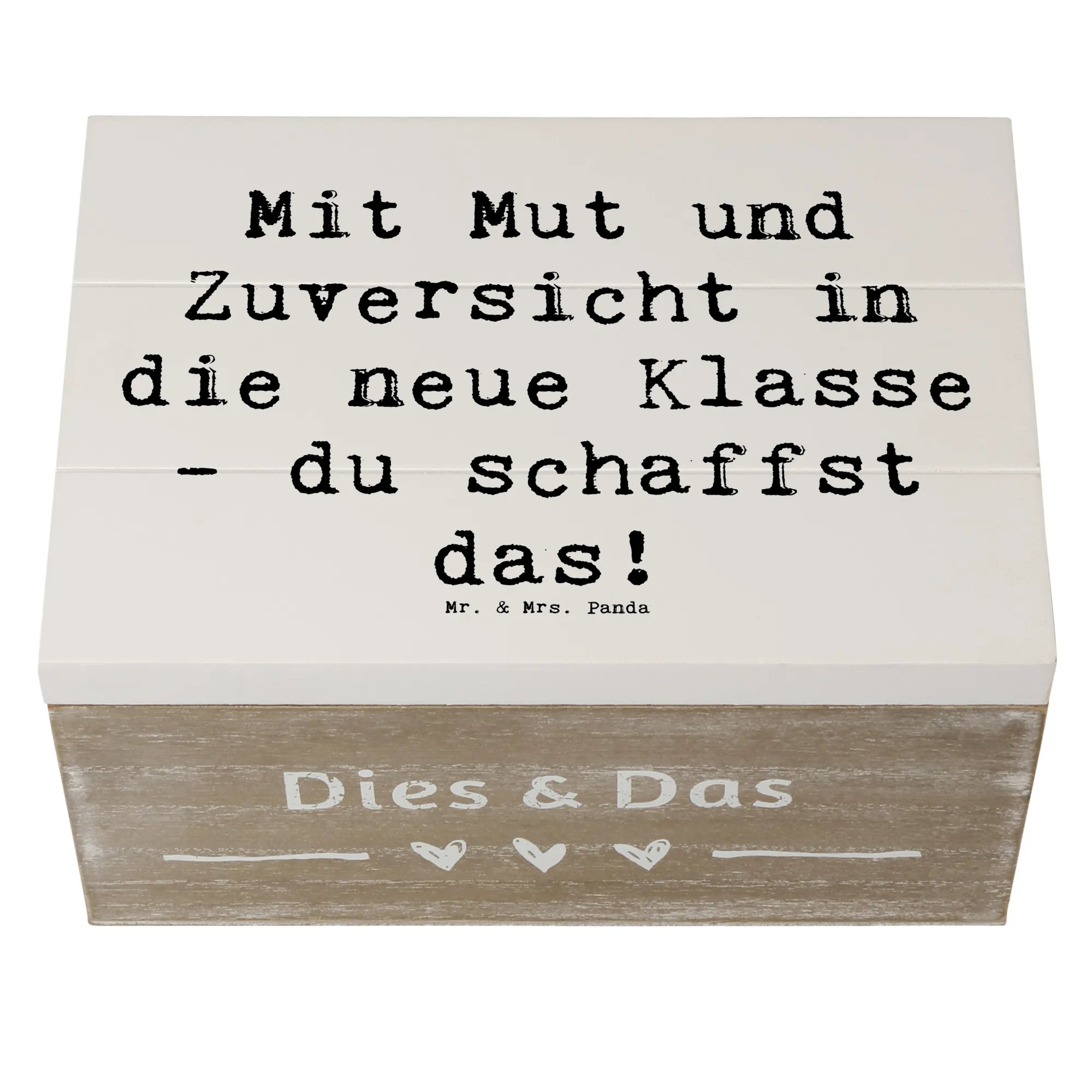 Die wunderschöne Holzkiste von Mr. & Mrs. Panda ist das perfekte Geschenk für jeden, der einen neuen Lebensabschnitt beginnt, besonders für Kinder, die ihren ersten Schultag in einer neuen Klasse erleben. Diese Kiste, bedruckt mit dem liebevollen Motto 'Mit Mut und Zuversicht in die neue Klasse - du schaffst das!', wird schnell zu einem geschätzten Aufbewahrungsort für all die kleinen Schätze und Erinnerungen, die mit dieser besonderen Zeit verbunden sind.