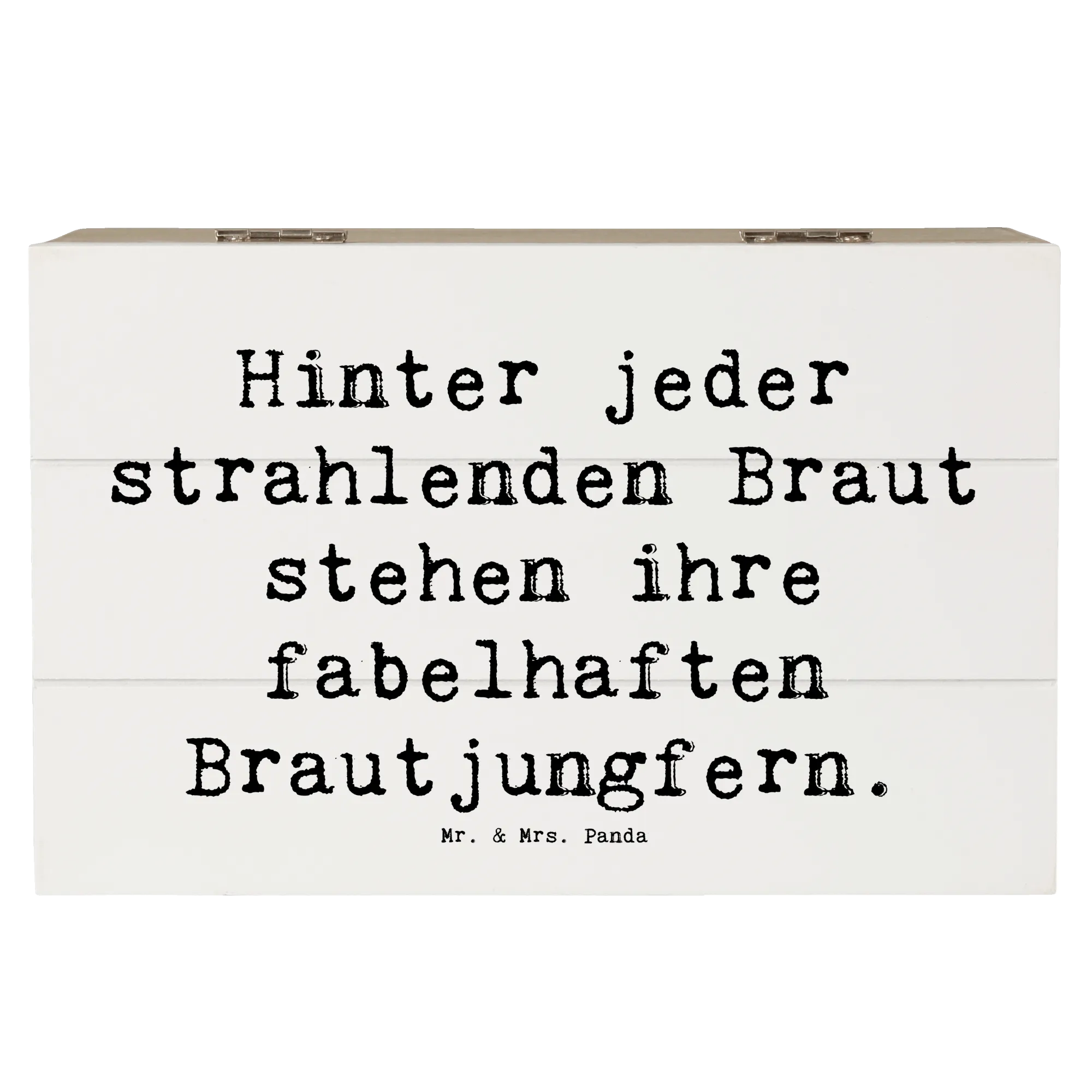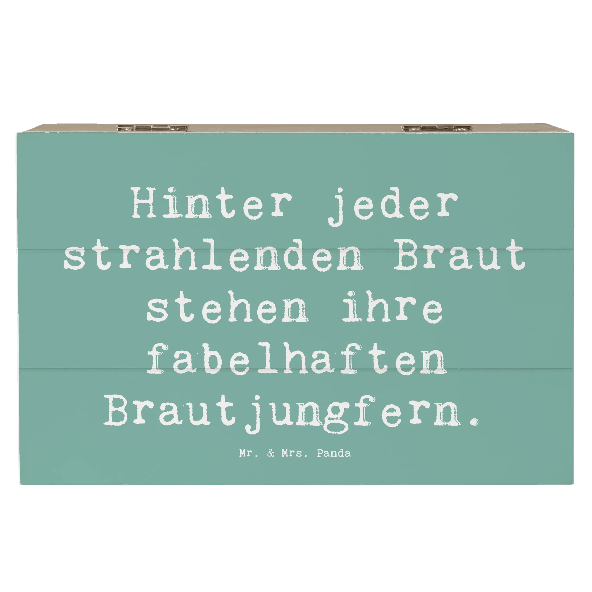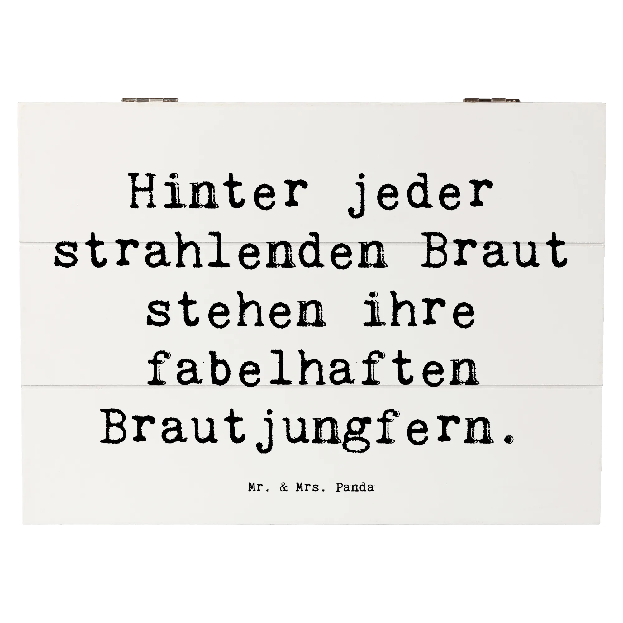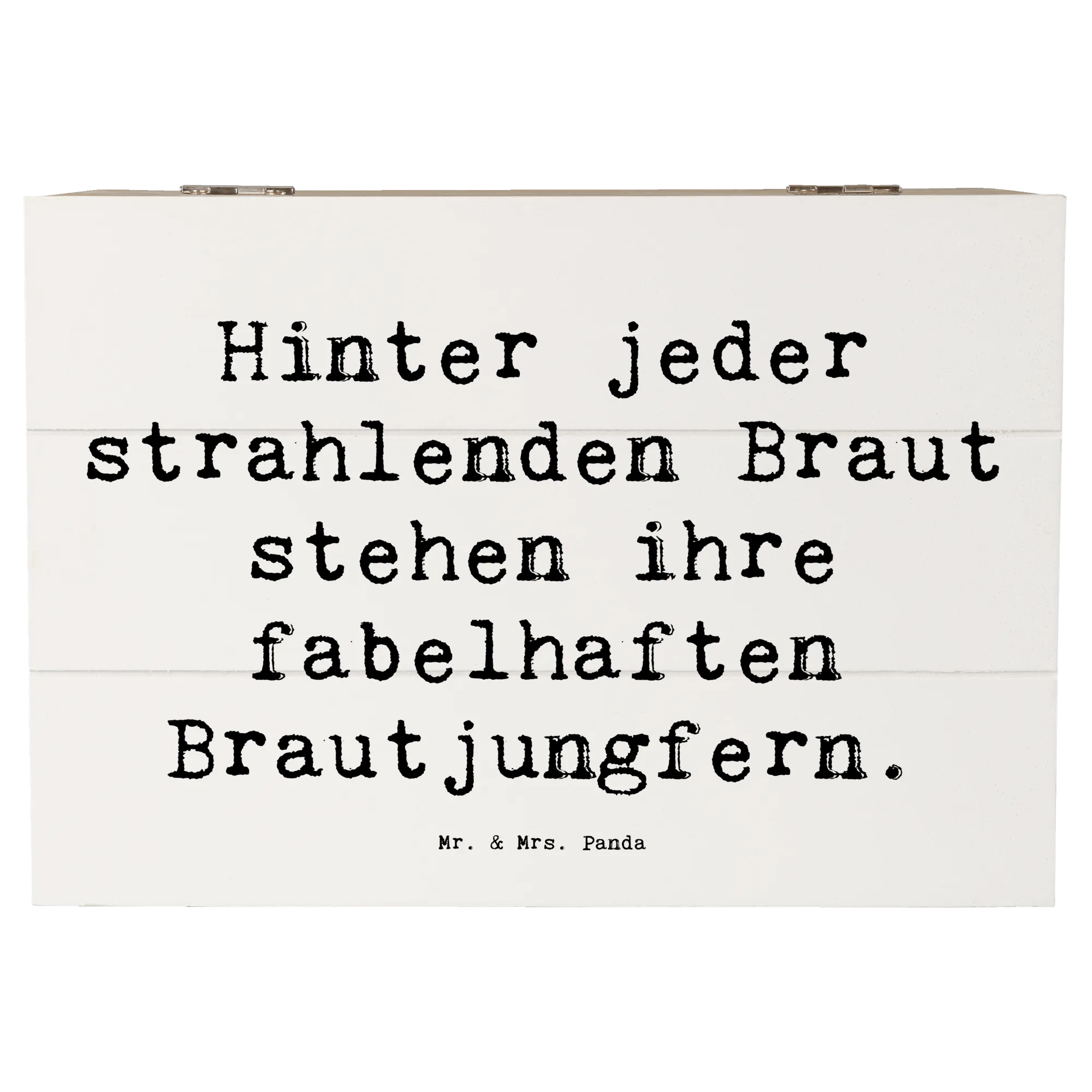Die wunderschöne Holzkiste von Mr. & Mrs. Panda, bedruckt mit dem zauberhaften Spruch "Hinter jeder strahlenden Braut stehen ihre fabelhaften Brautjungfern", ist das perfekte Geschenk für jede Braut und ihre engagierten Brautjungfern. Diese Erinnerungskiste ist nicht nur ideal zur Aufbewahrung wertvoller Schätze, sondern auch ein liebevolles Andenken an den schönsten Tag im Leben. Jede Kiste hat die idealen Maße von 180 mm x 250 mm x 150 mm und bietet genug Platz für alles, was du sammeln möchtest – sei es für Erinnerungen an Hochzeiten, Geburts- oder andere festliche Anlässe.