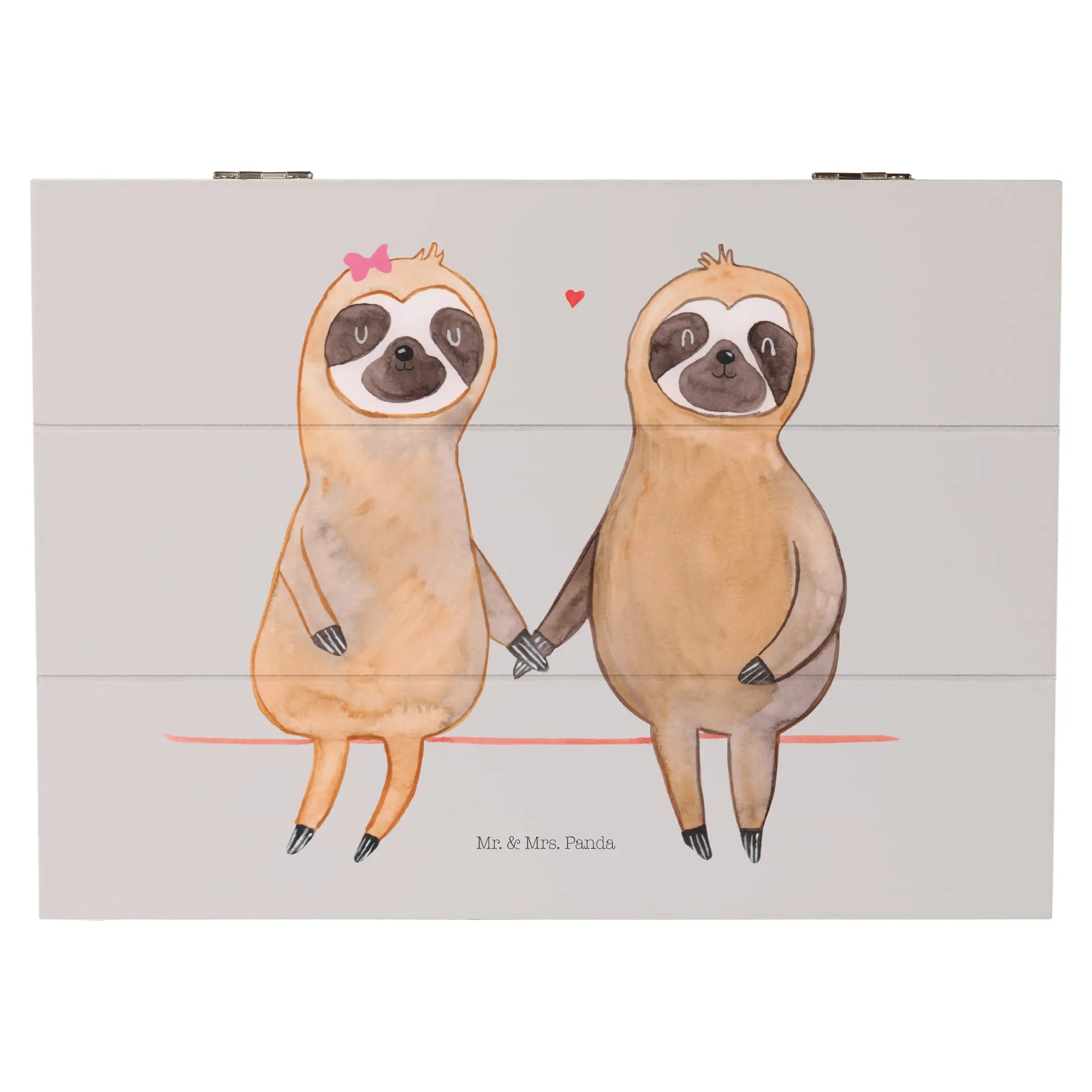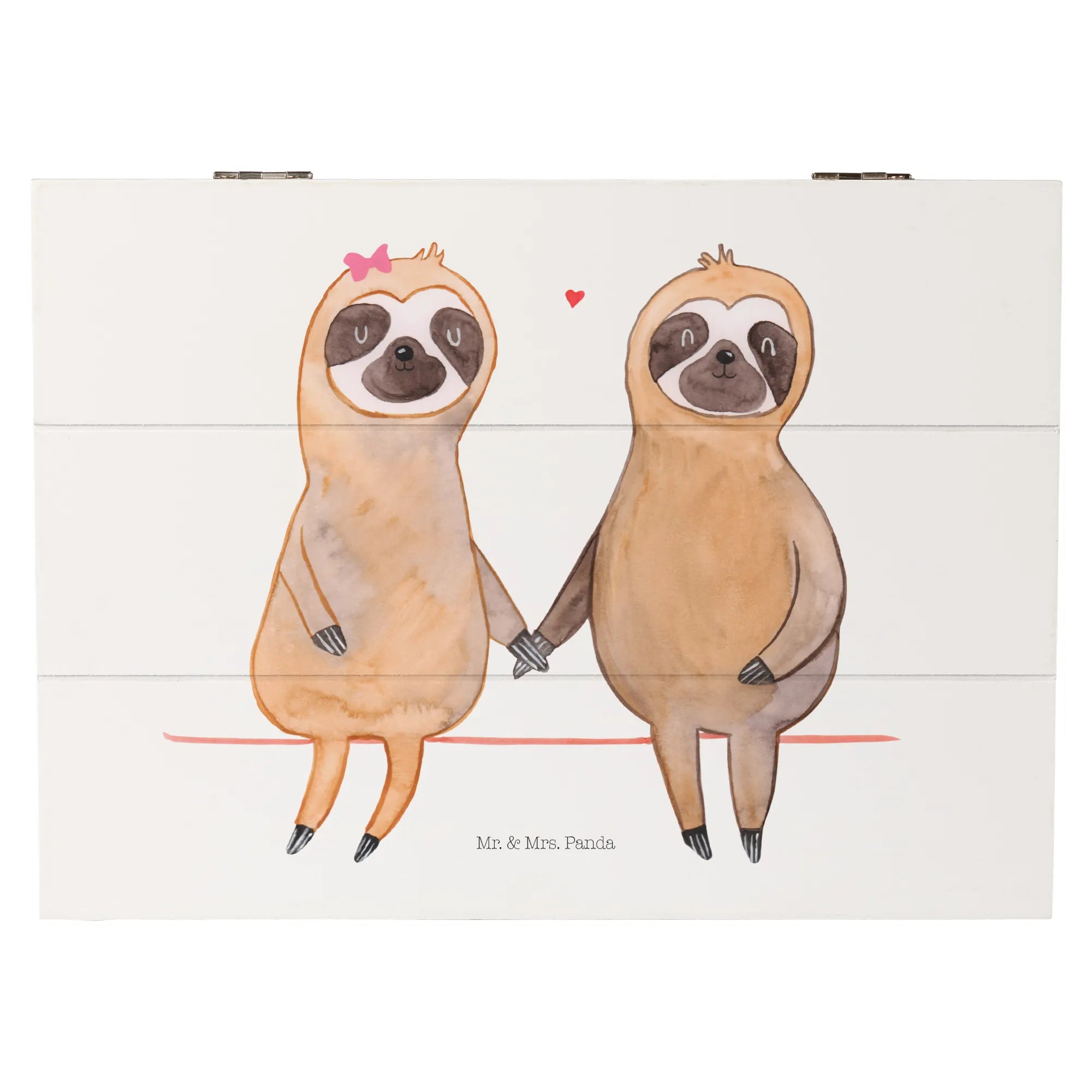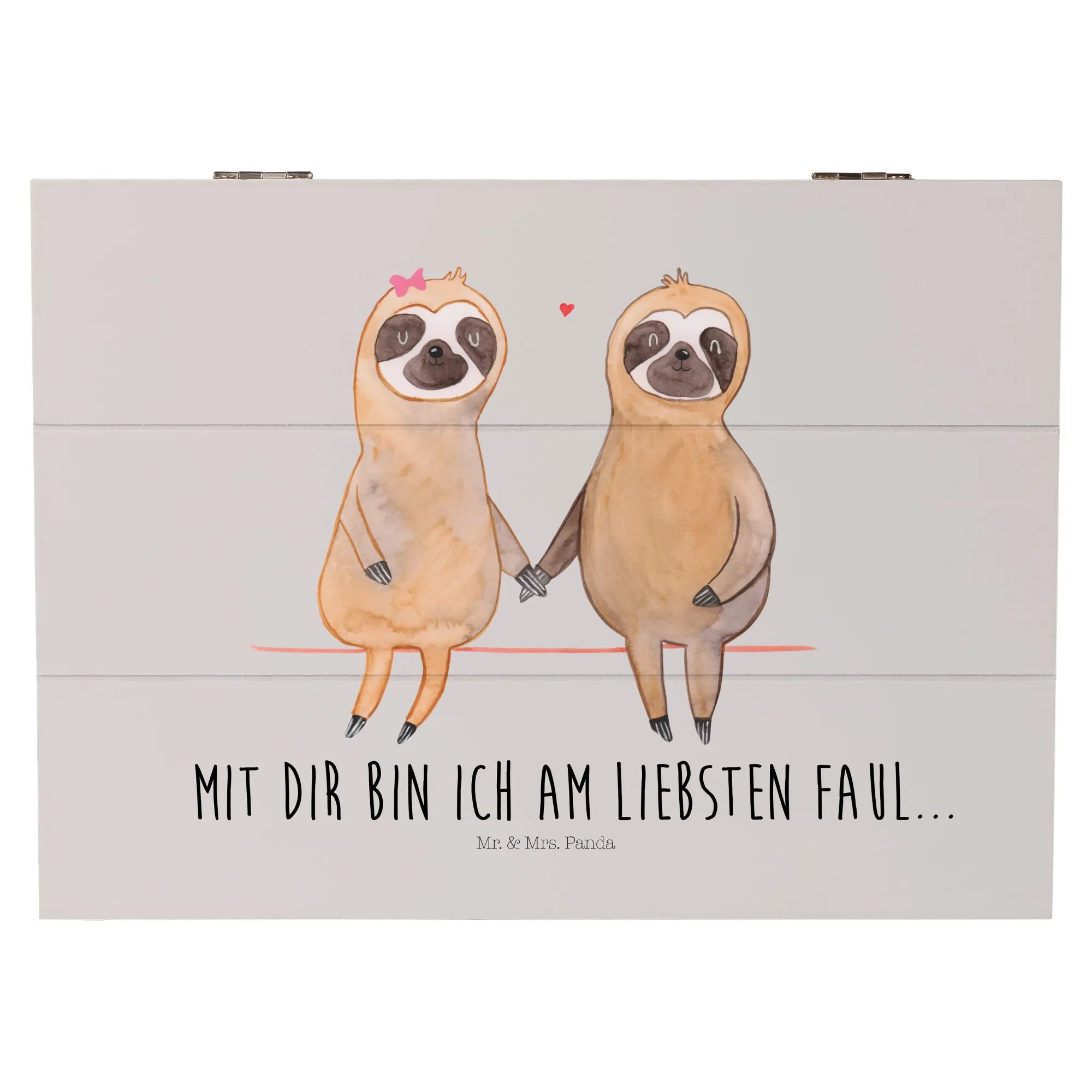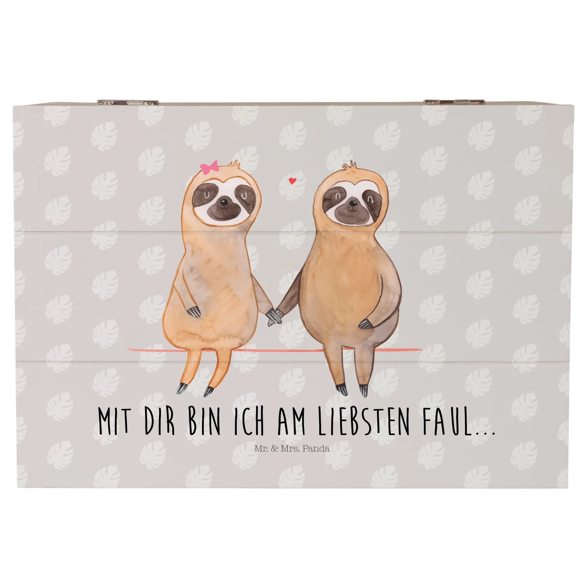 Entdecke die zauberhafte Holzkiste mit dem süßen Faultier Pärchen von Mr. & Mrs. Panda! Diese wunderschöne Erinnerungskiste ist der perfekte Aufbewahrungsort für all deine wertvollen Schätze und besonderen Erinnerungen. Ob zur Kommunion, Konfirmation oder einfach nur als romantisches Geschenk für deinen Schatz – diese Kiste ist ein wahrer Alleskönner!
