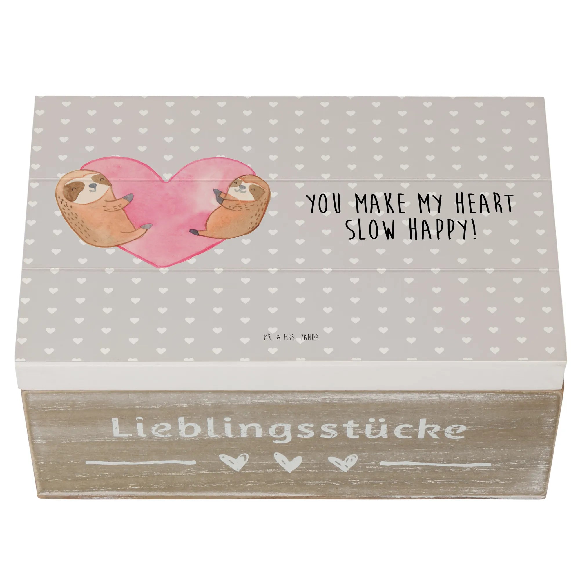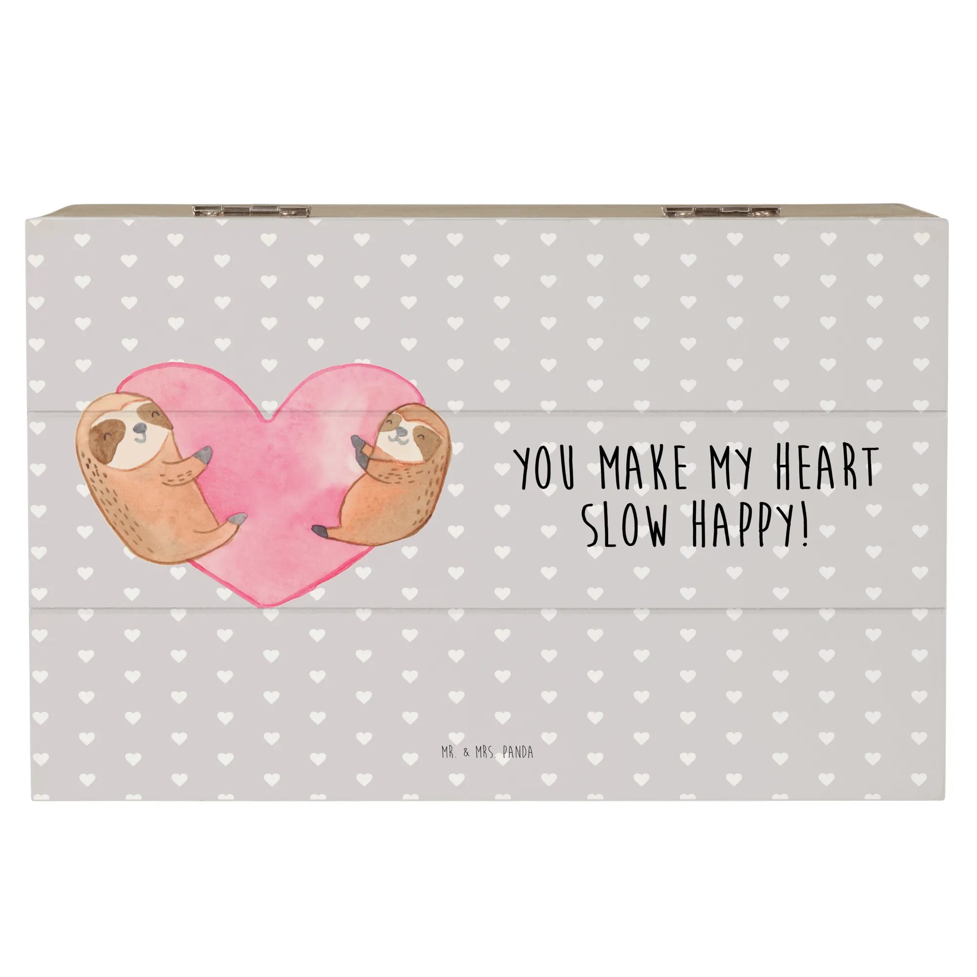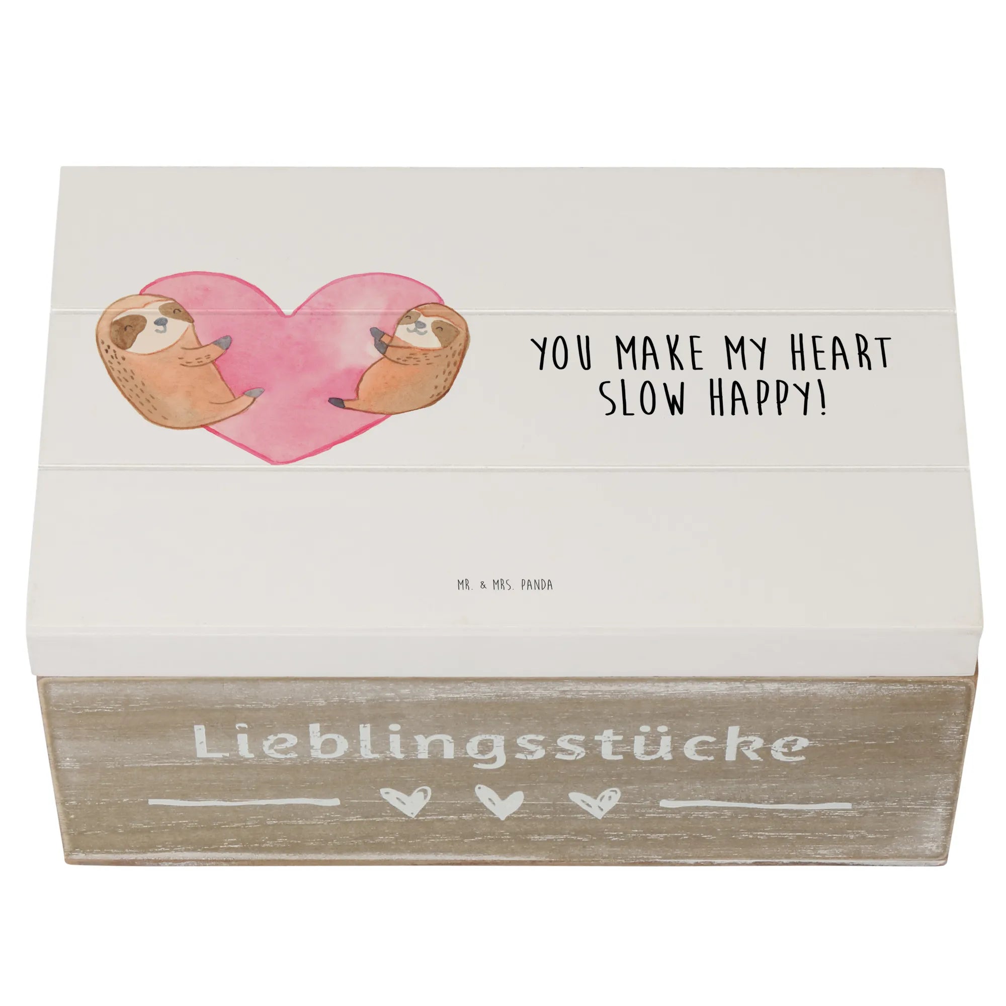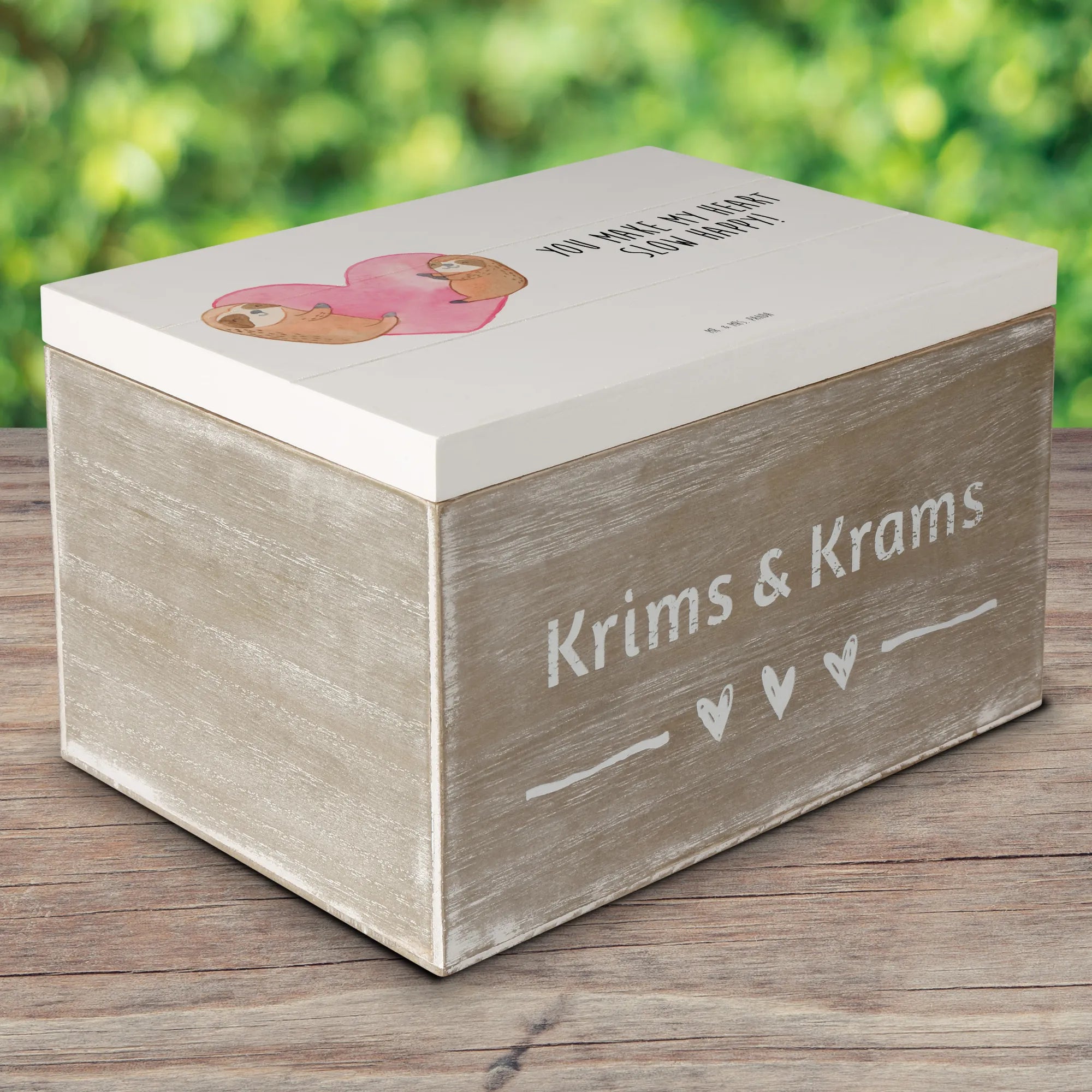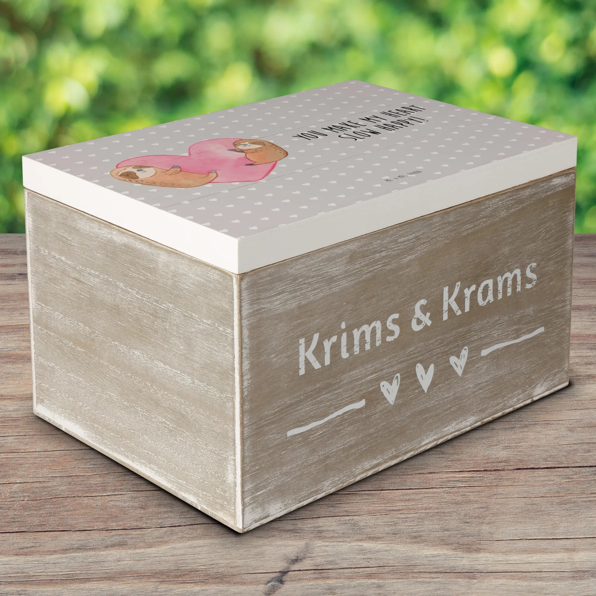 Die Holzkiste 'Faultiere Herz' von Mr. & Mrs. Panda ist das perfekte Geschenk für alle Verliebten, die eine besondere Erinnerung oder einen Schatz aufbewahren möchten. Mit dem niedlichen Motiv von kuschelnden Faultieren und dem liebevollen Spruch 'You make my heart slow happy!' wird diese Kiste zum absoluten Hingucker. Ob als Erinnerungskiste für den Jahrestag, Hochzeitstag oder einfach als Liebesbeweis zum Valentinstag – diese Kiste bringt Herzen zum Schmelzen!