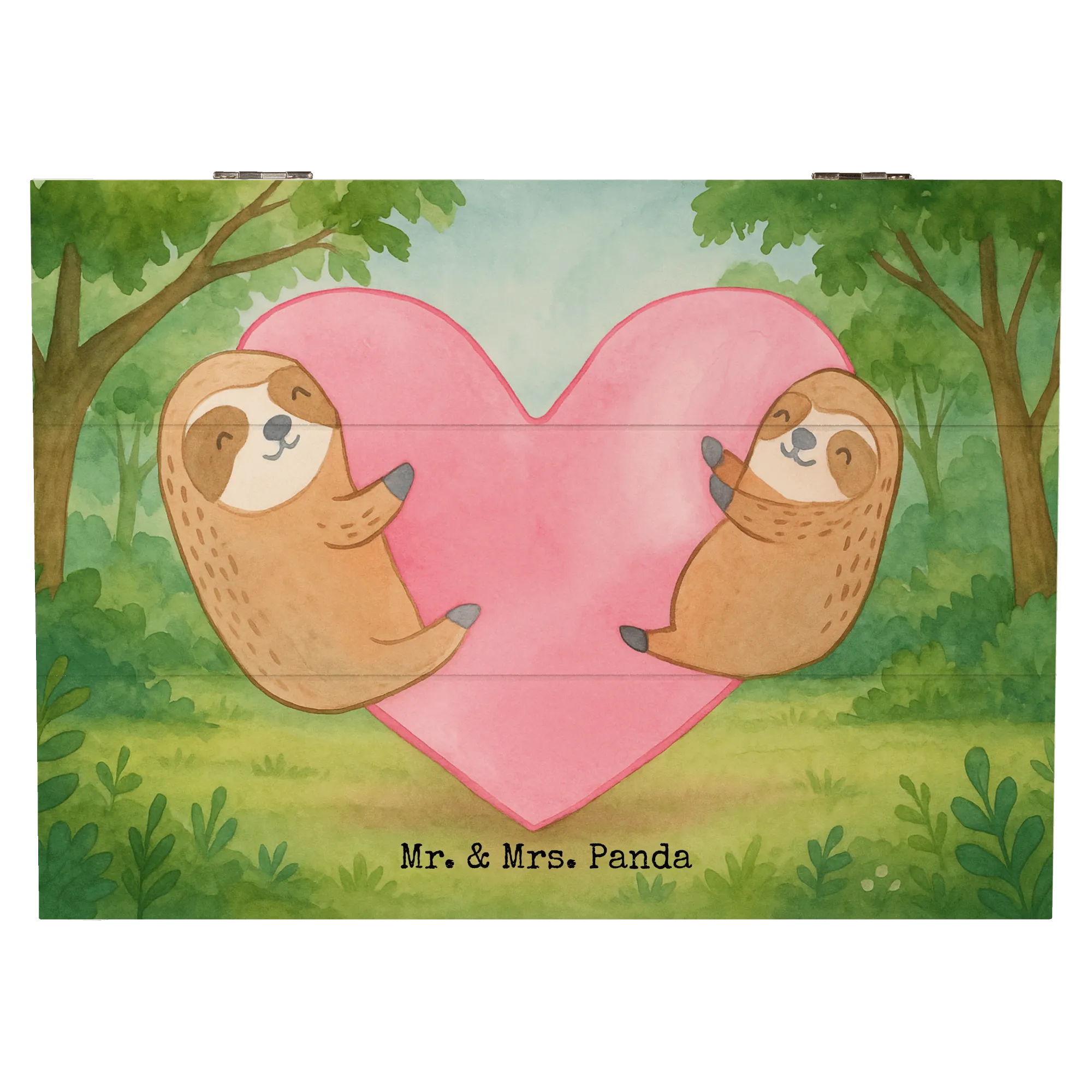 Holzkiste Faultiere Herz Design - 22 x 15 cm - mit Spruch