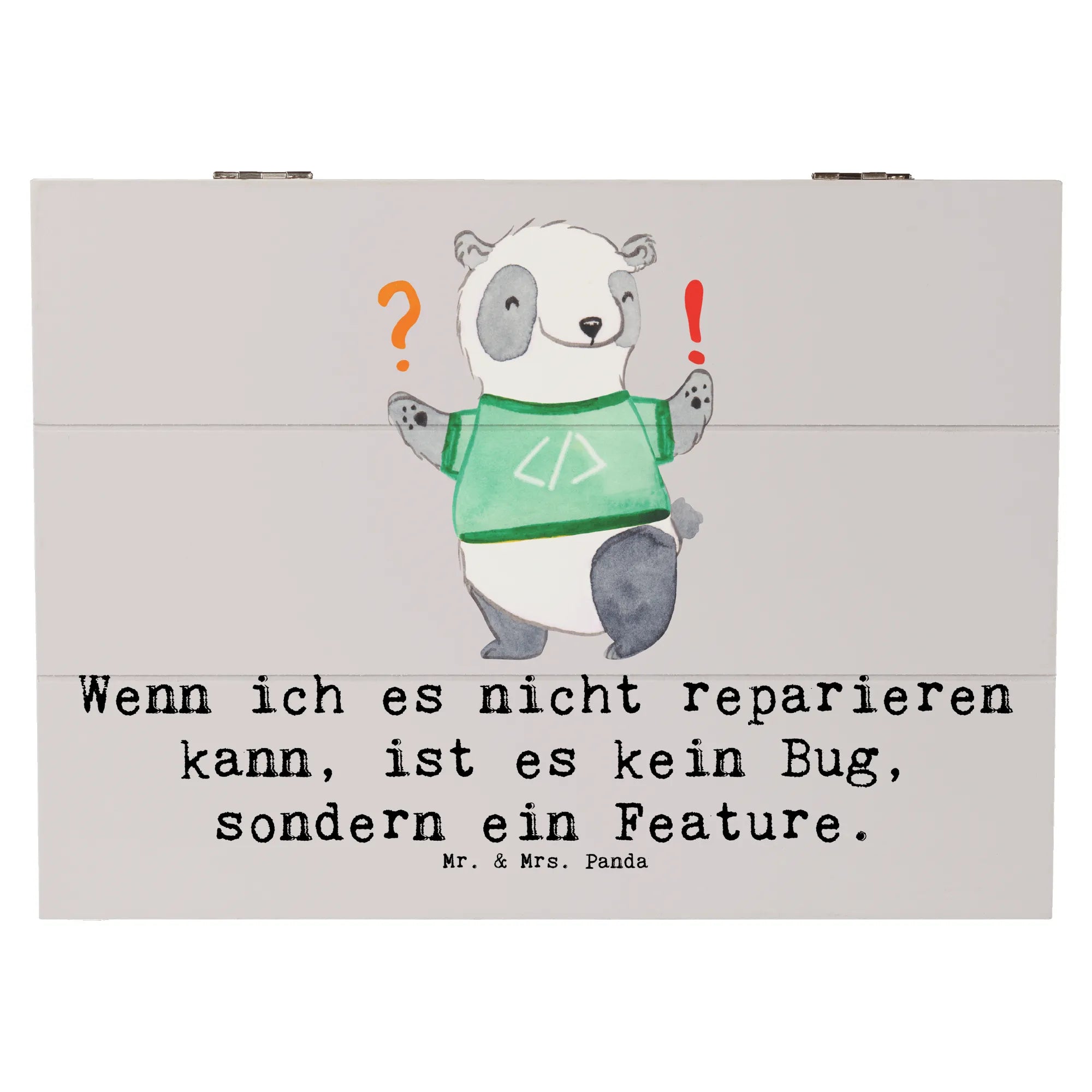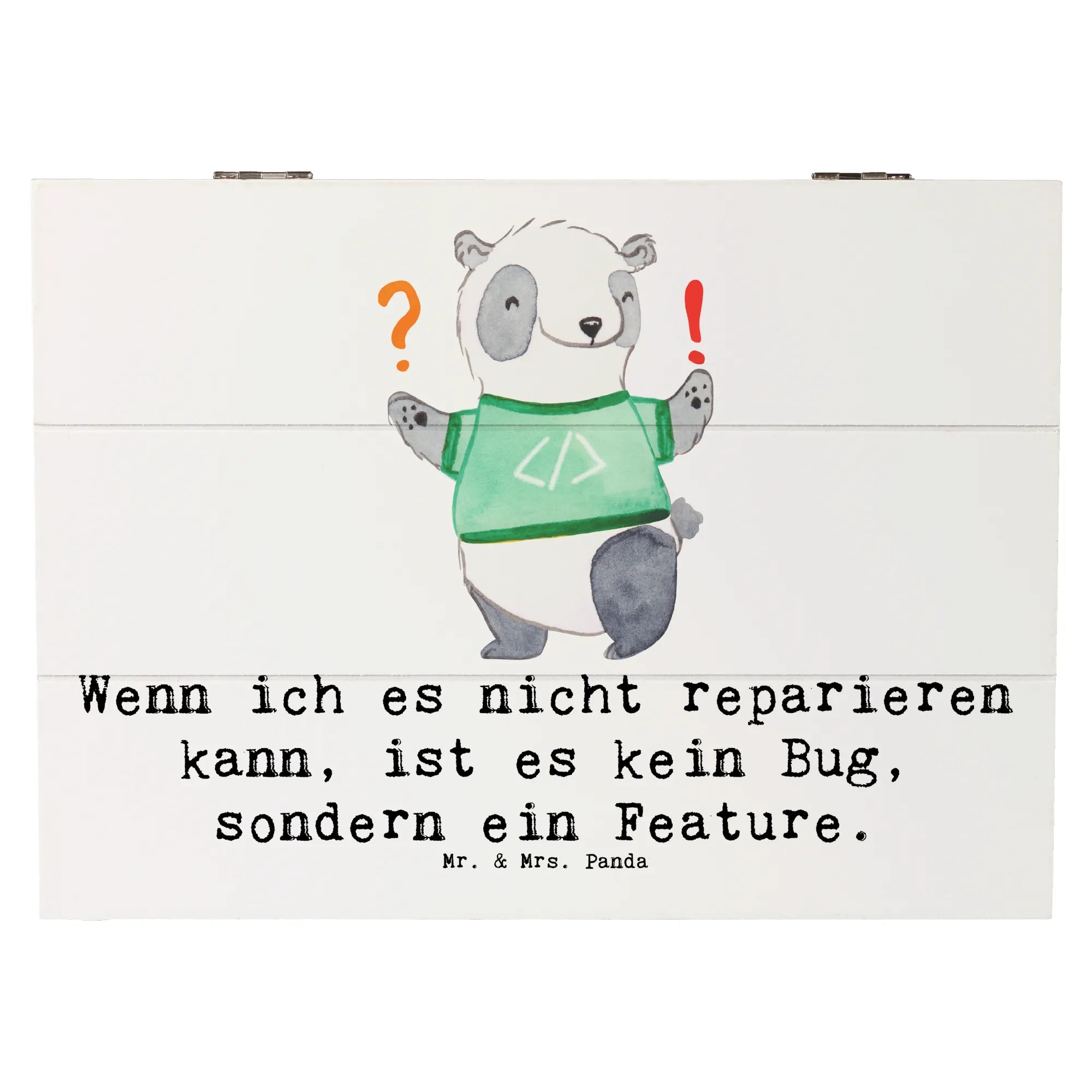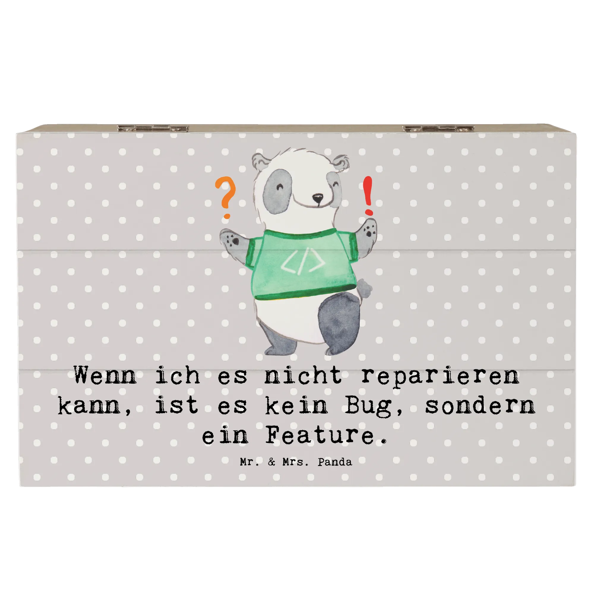 Die bezaubernde Holzkiste von Mr. & Mrs. Panda ist das perfekte Geschenk für alle Softwareentwickler und IT-Entwickler! Ob zum Geburtstag, zu Weihnachten oder einfach als kleine Aufmerksamkeit zwischendurch, diese wunderschöne Kiste mit dem liebevollen Slogan "Wenn ich es nicht reparieren kann, ist es kein Bug, sondern ein Feature" ist einfach ein Muss für jeden Programmierer.