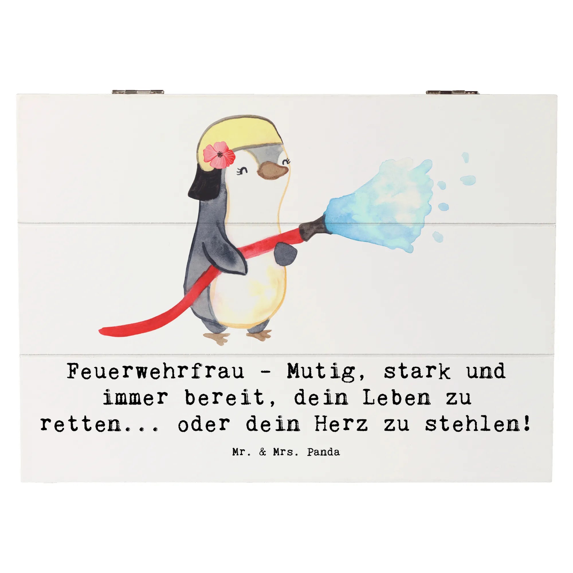 Die wunderschöne Holzkiste Feuerwehrfrau von Mr. & Mrs. Panda ist der perfekte Begleiter für alle, die mit Leidenschaft und Mut ihren Beruf ausüben. Mit dem liebevollen Slogan "Feuerwehrfrau - Mutig, stark und immer bereit, dein Leben zu retten... oder dein Herz zu stehlen!" zollt diese Kiste den heldenhaften Heldinnen des Alltags Respekt und Anerkennung.