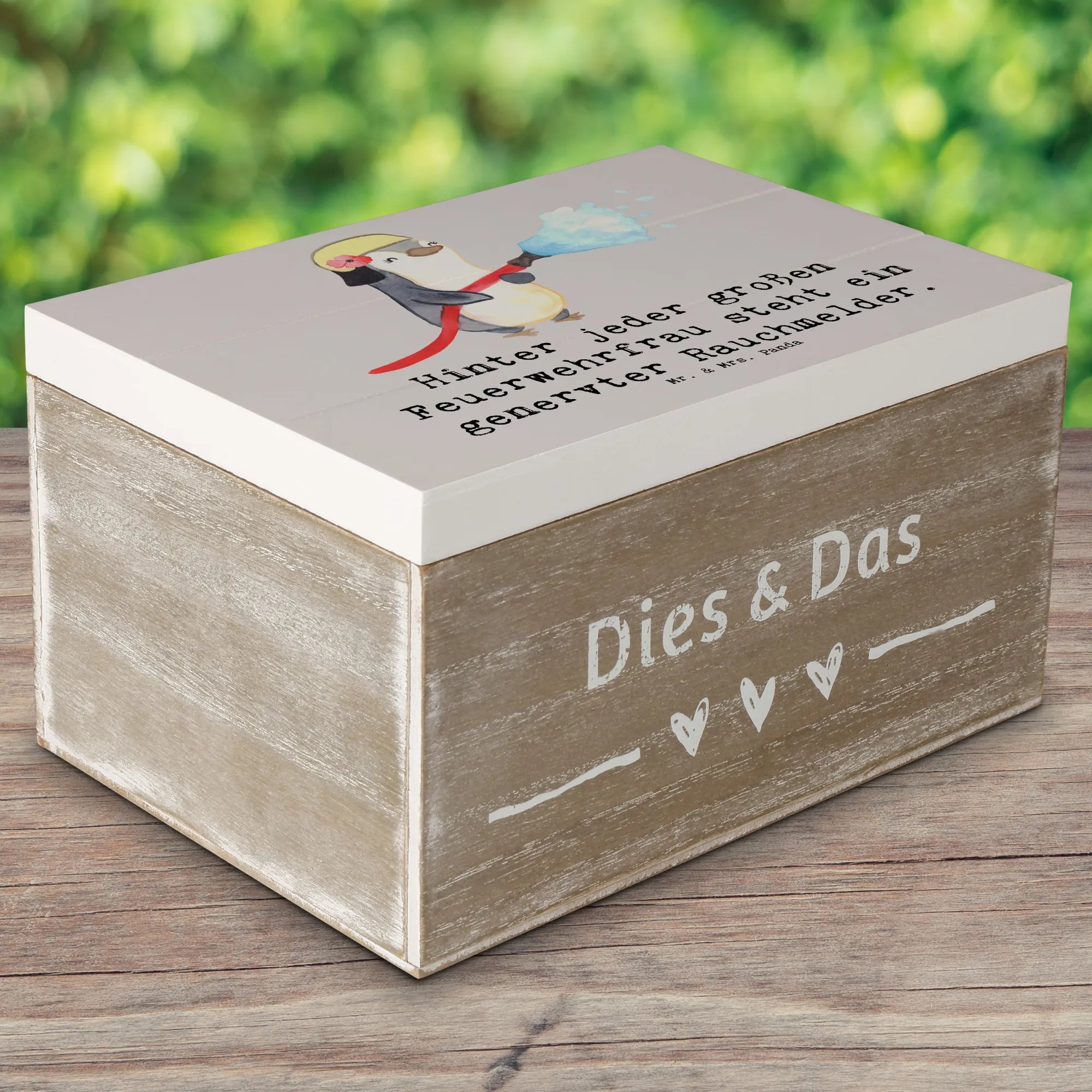 Schenke Wertschätzung, Humor und ein schönes Zuhause für Erinnerungen: die Holzkiste Feuerwehrfrau von Mr. & Mrs. Panda – ein kleines Kunstwerk für große Gesten.