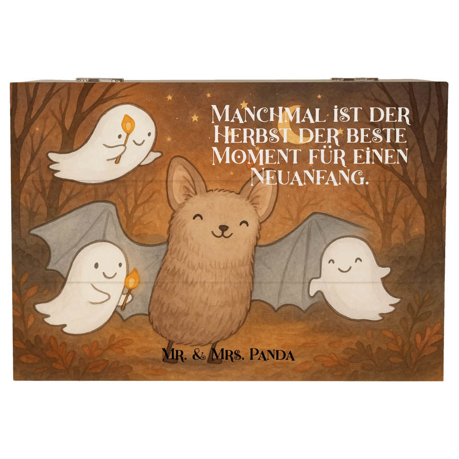Holzkiste Fledermaus Gespenster Design - 22 x 15 cm - mit Spruch