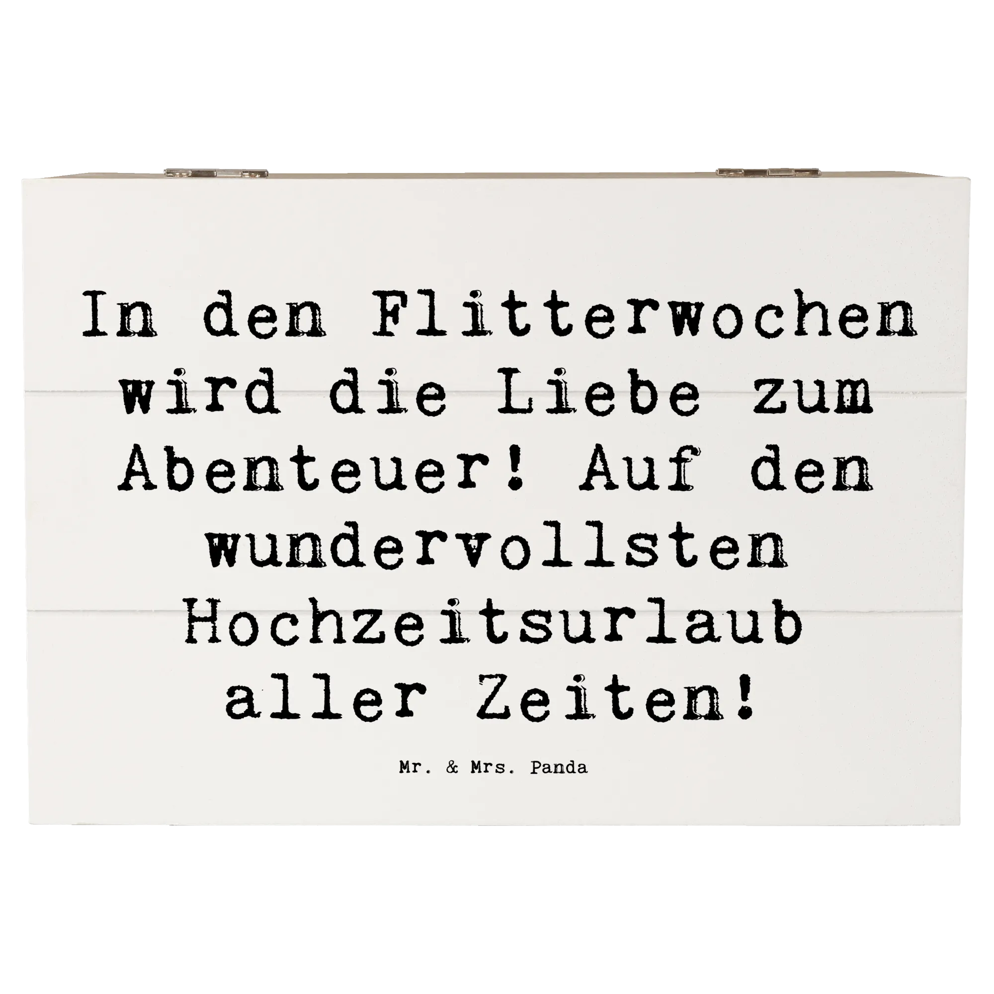 Entdecke die wundervolle Holzkiste mit dem zauberhaften Motiv "Flitterwochen" von Mr. & Mrs. Panda! Diese wunderschöne Holzkiste ist der perfekte Begleiter für alle frischvermählten Paare, die ihre schönsten Erinnerungen an den Hochzeitsurlaub aufbewahren möchten. Mit dem inspirierenden Spruch "In den Flitterwochen wird die Liebe zum Abenteuer! Auf den wundervollsten Hochzeitsurlaub aller Zeiten!" wird jede Öffnung der Kiste zu einem besonderen Moment.