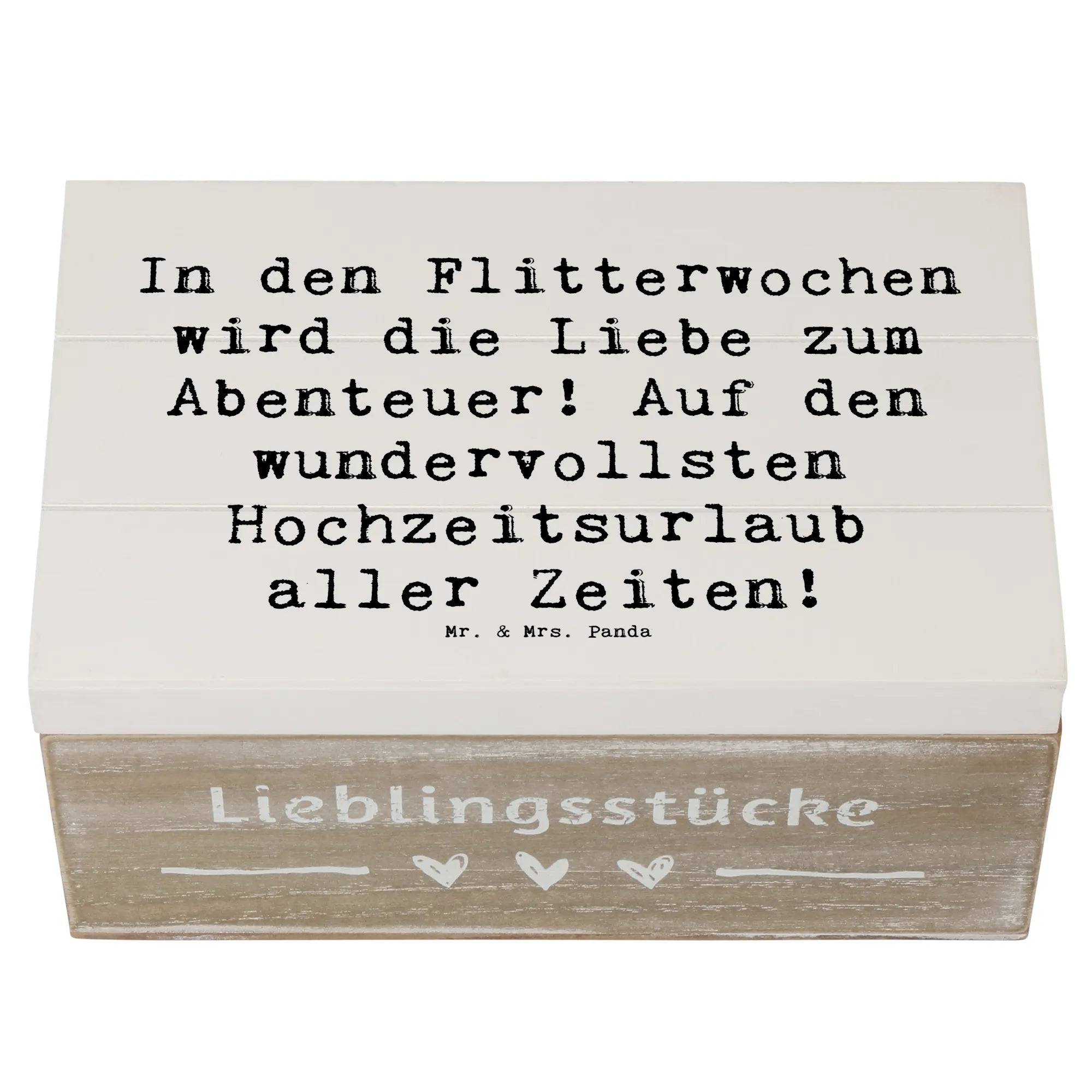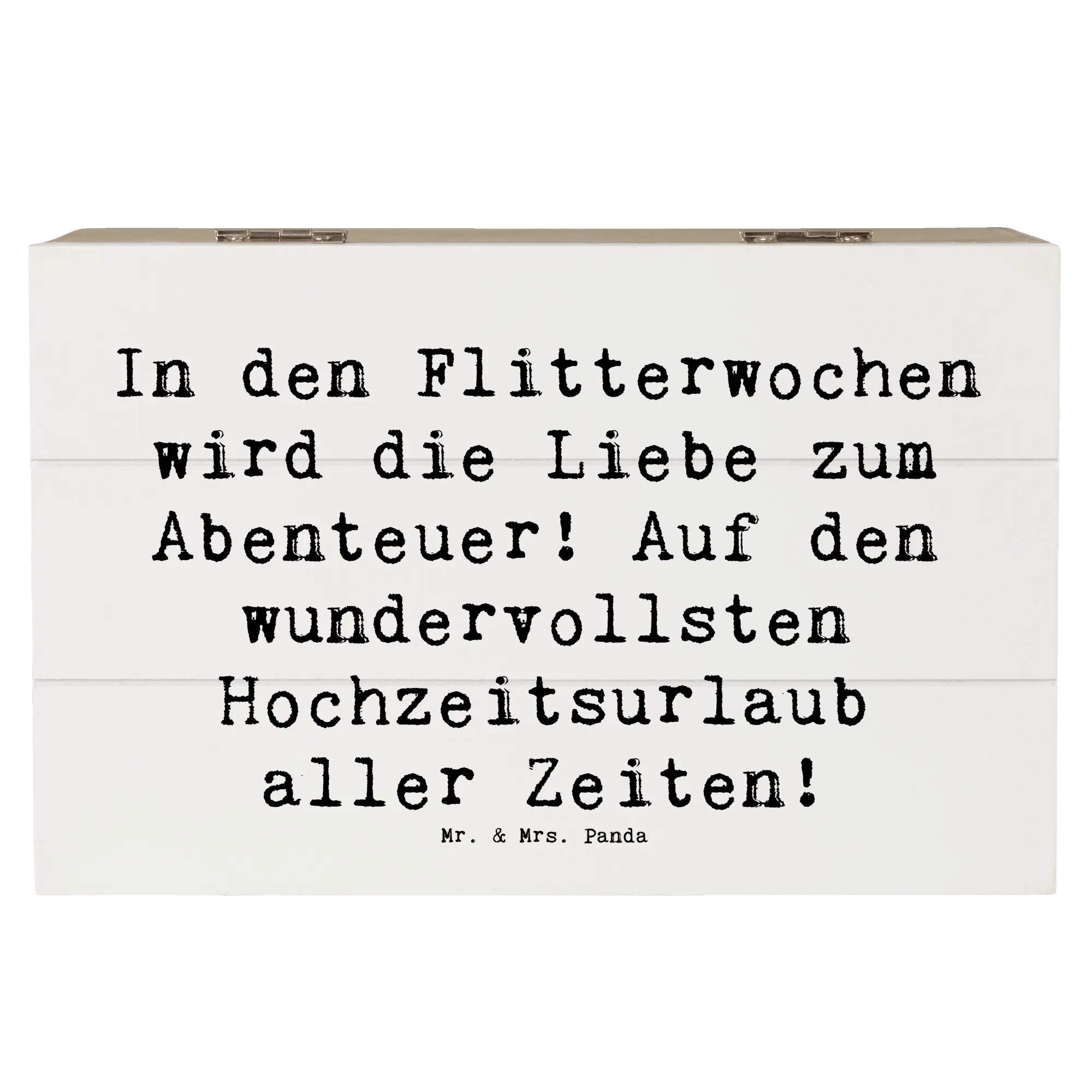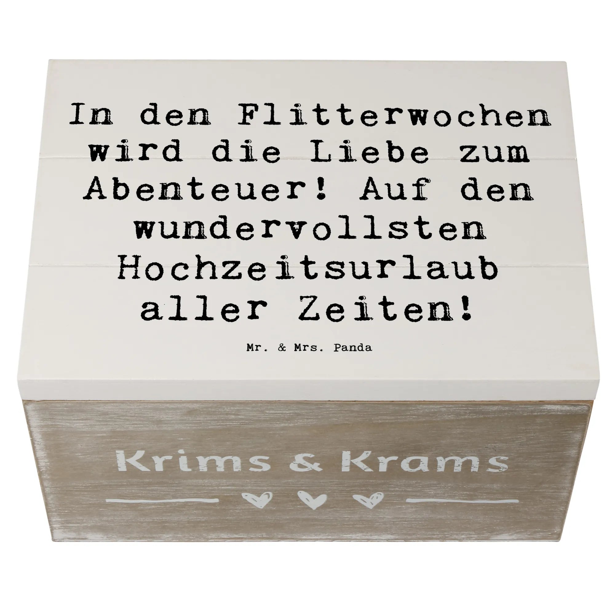 Die wunderschöne Holzkiste von Mr. & Mrs. Panda ist das perfekte Geschenk für frisch verheiratete Paare und solche, die es bald werden! Diese zauberhafte Erinnerungskiste mit dem Motto "In den Flitterwochen wird die Liebe zum Abenteuer! Auf den wundervollsten Hochzeitsurlaub aller Zeiten!" lässt sich hervorragend nutzen, um die schönsten Momente der Hochzeitsreise zu bewahren.