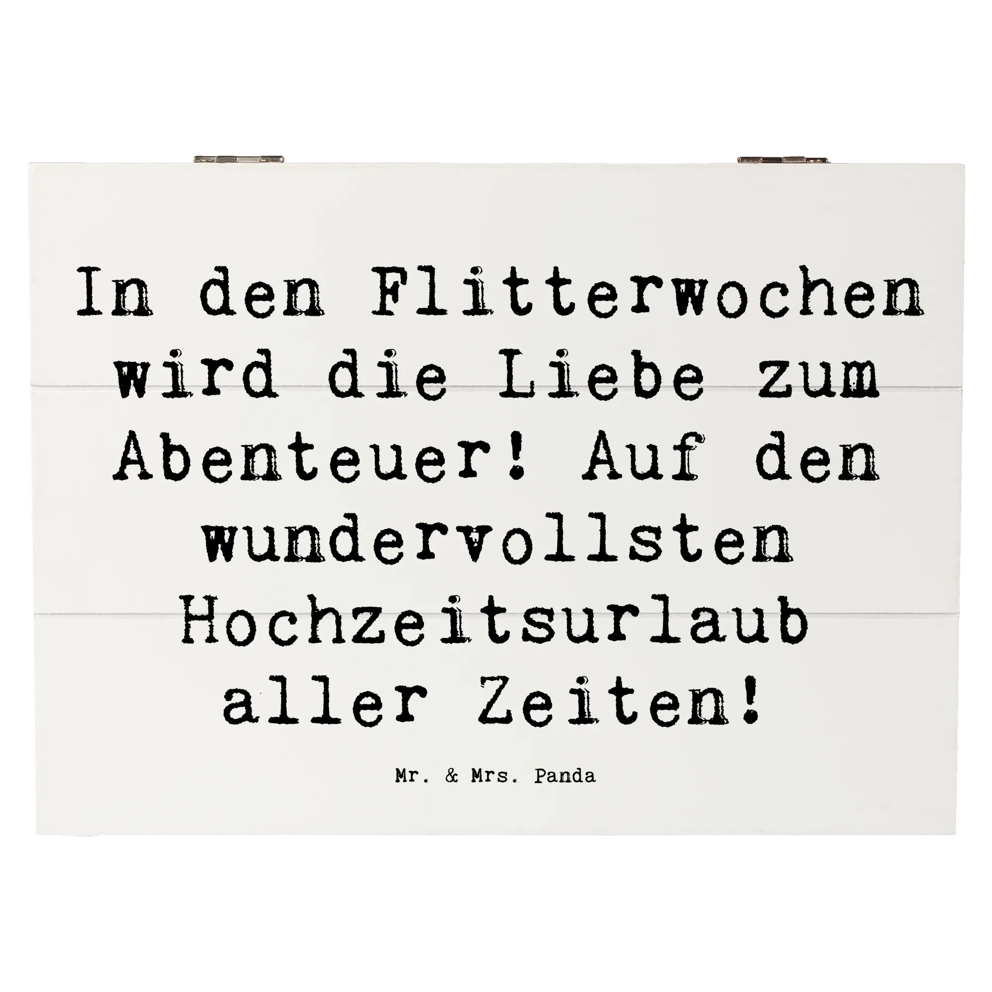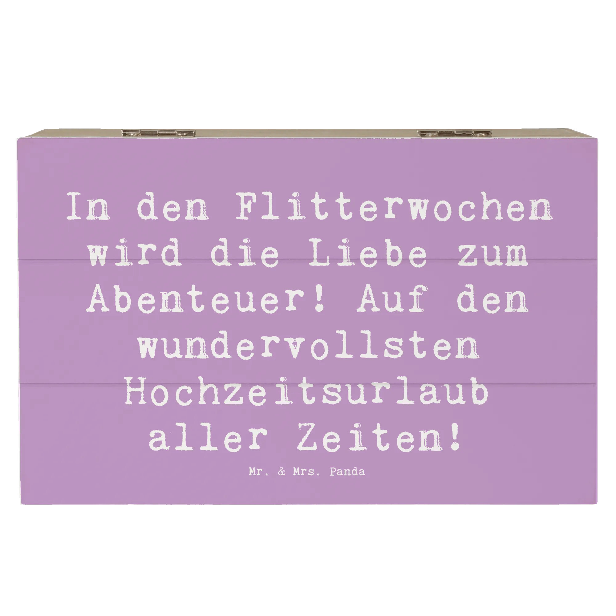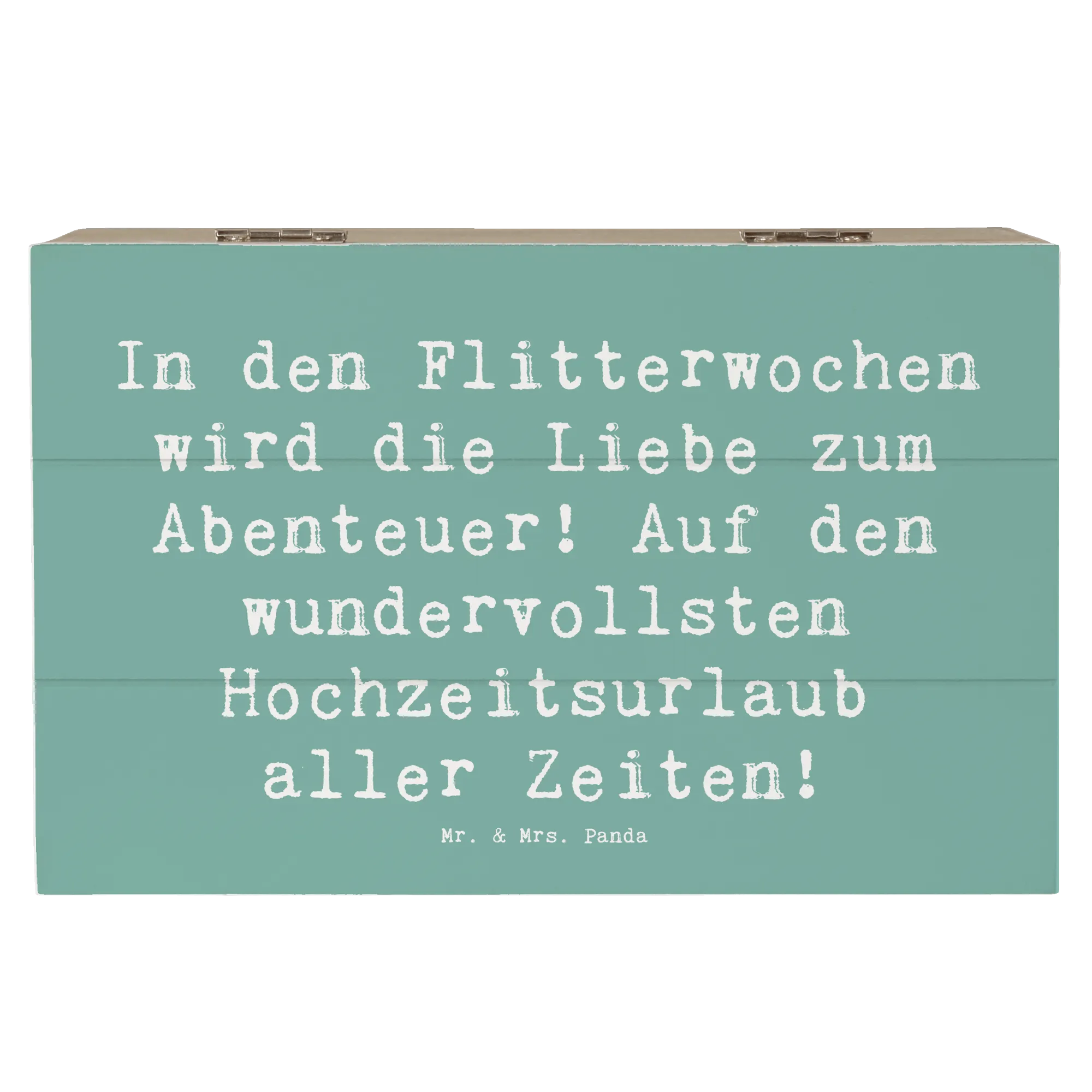 Die wunderschöne Holzkiste von Mr. & Mrs. Panda ist das perfekte Geschenk für frisch verheiratete Paare und solche, die es bald werden! Diese zauberhafte Erinnerungskiste mit dem Motto "In den Flitterwochen wird die Liebe zum Abenteuer! Auf den wundervollsten Hochzeitsurlaub aller Zeiten!" lässt sich hervorragend nutzen, um die schönsten Momente der Hochzeitsreise zu bewahren.