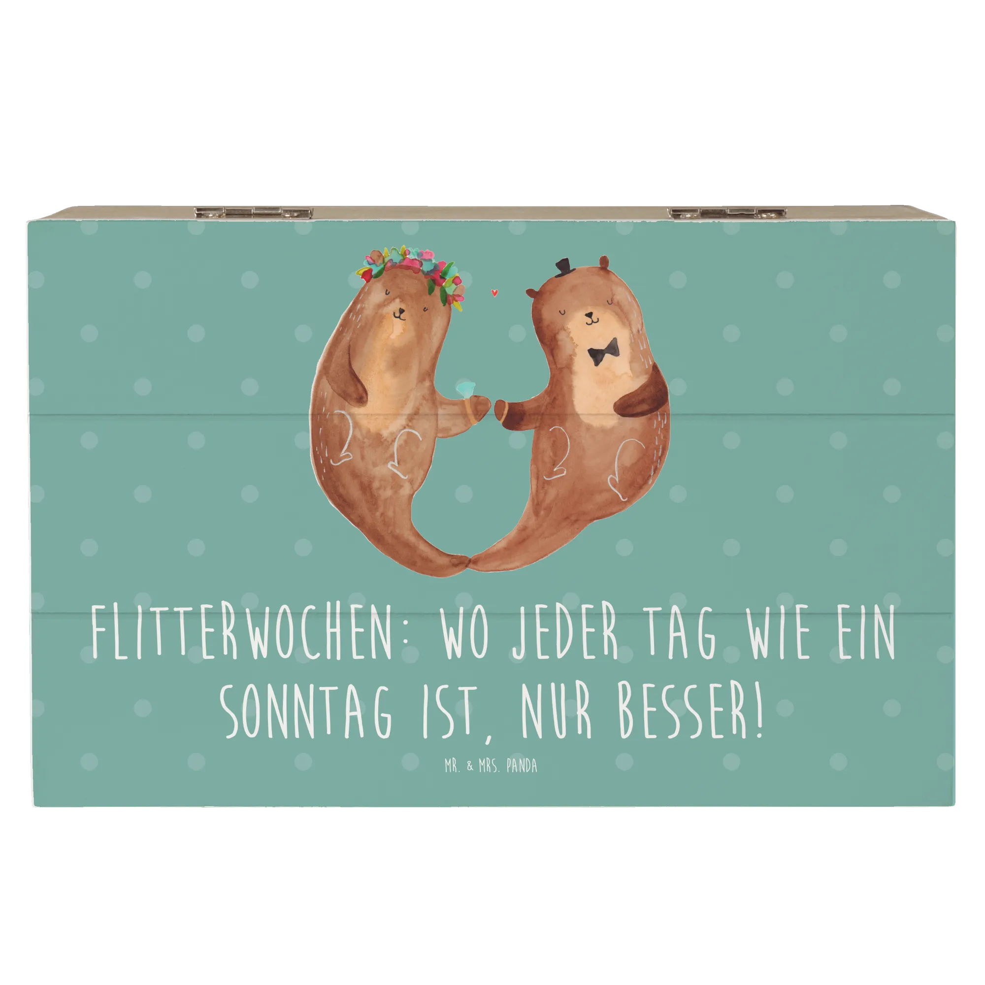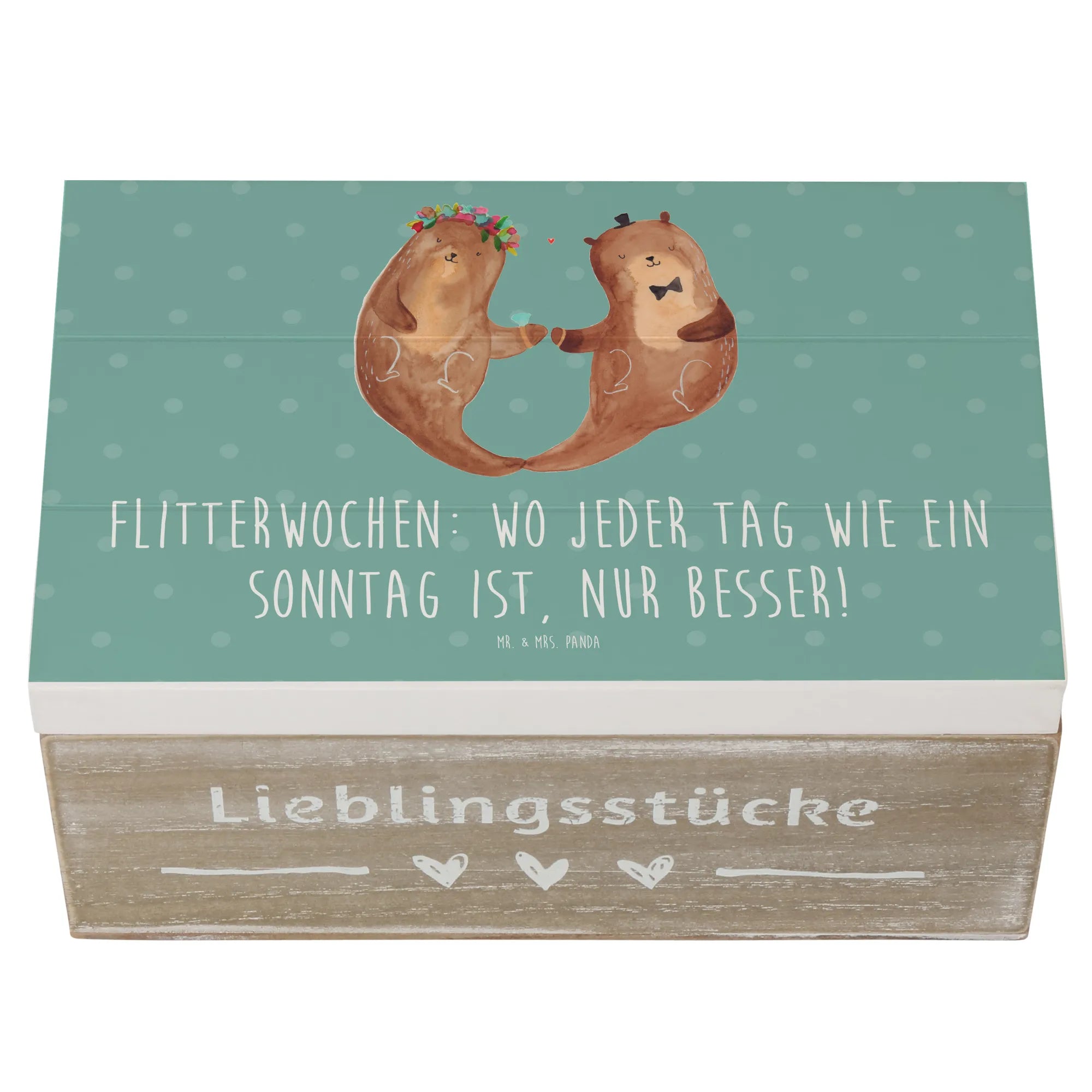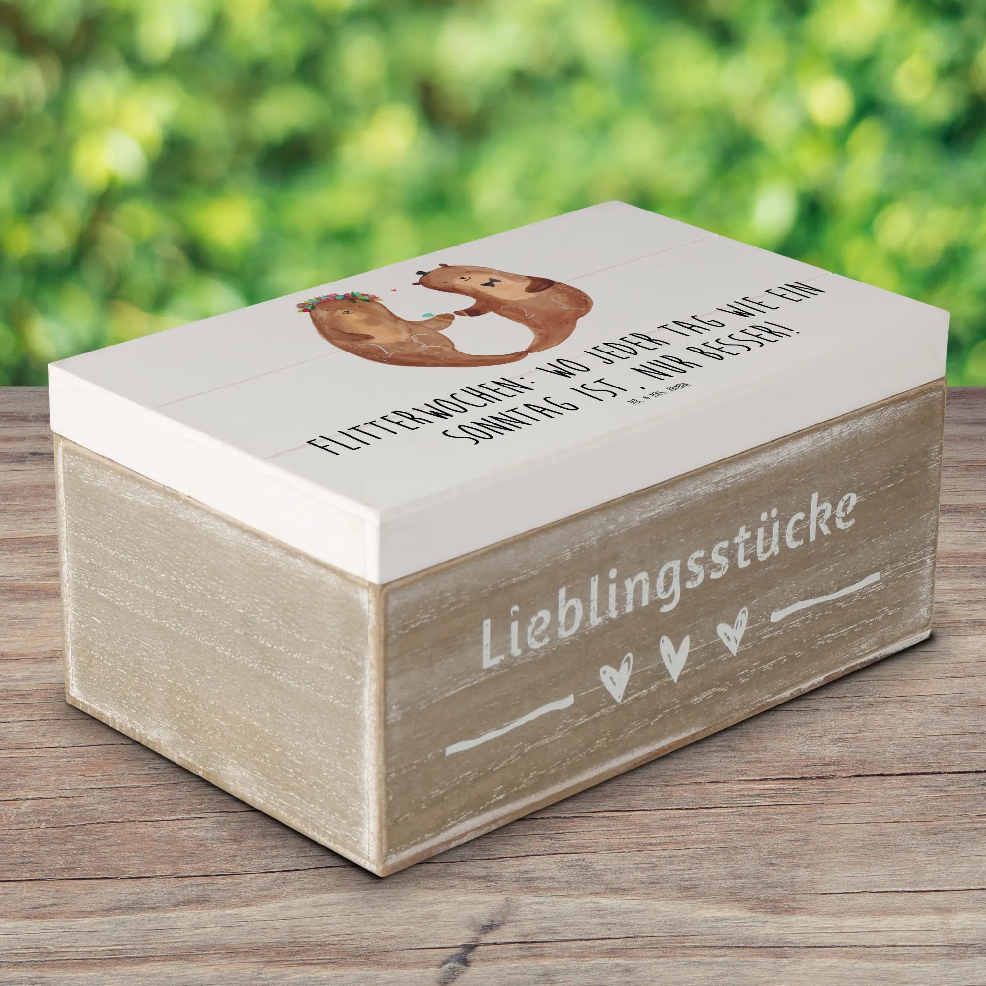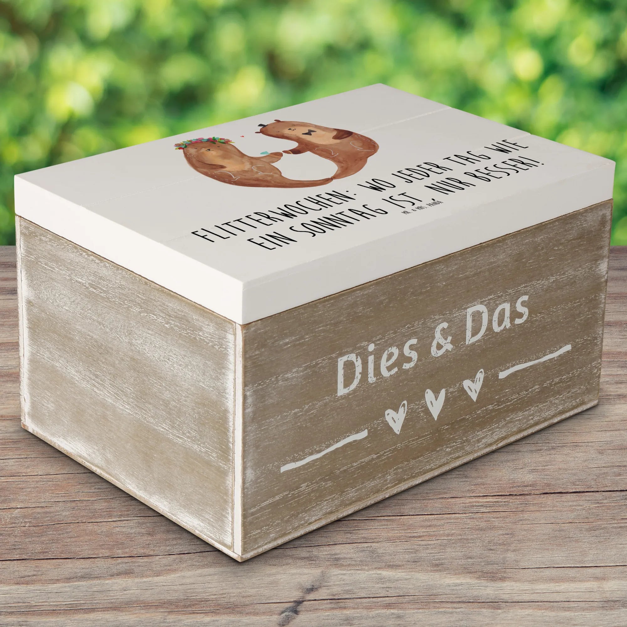 Entdecke die wunderschöne Holzkiste von Mr. & Mrs. Panda mit dem romantischen Motiv "Flitterwochen: Wo jeder Tag wie ein Sonntag ist, nur besser!" Diese charmante Erinnerungskiste ist der perfekte Begleiter für all deine wertvollen Schätze und Erinnerungen rund um den schönsten Tag deines Lebens.